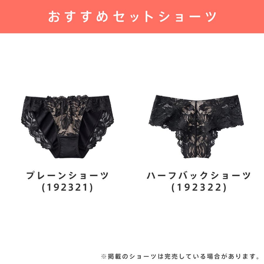 キャミやチューブトップをインナーに着た時、3/4カップだとはみ出してしまうので、ハーフカップのブラが欲しかったので、取り扱いしてくださり有難いです。しかも、ハーフバックのショーツ(品番:192322)もある!速攻で3色買いました。