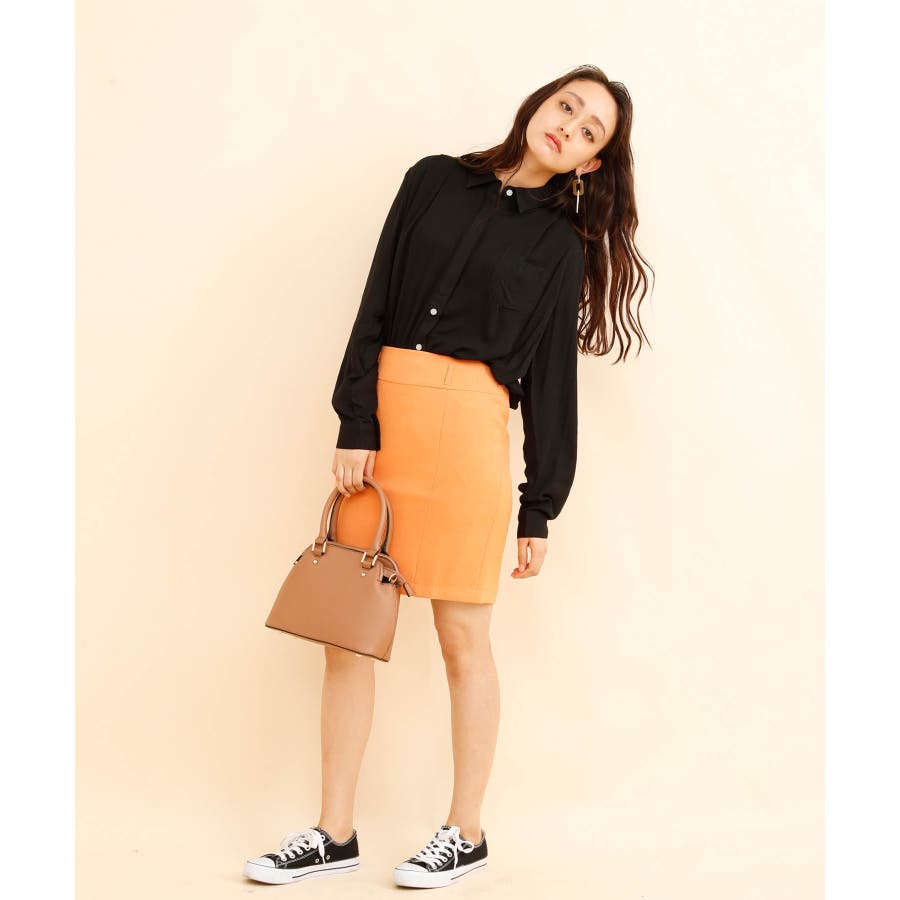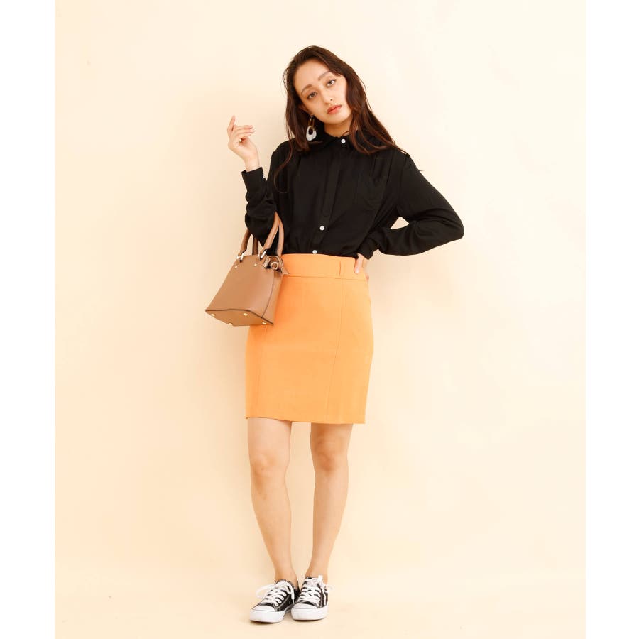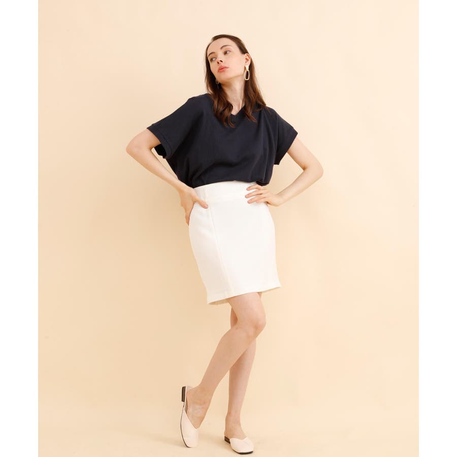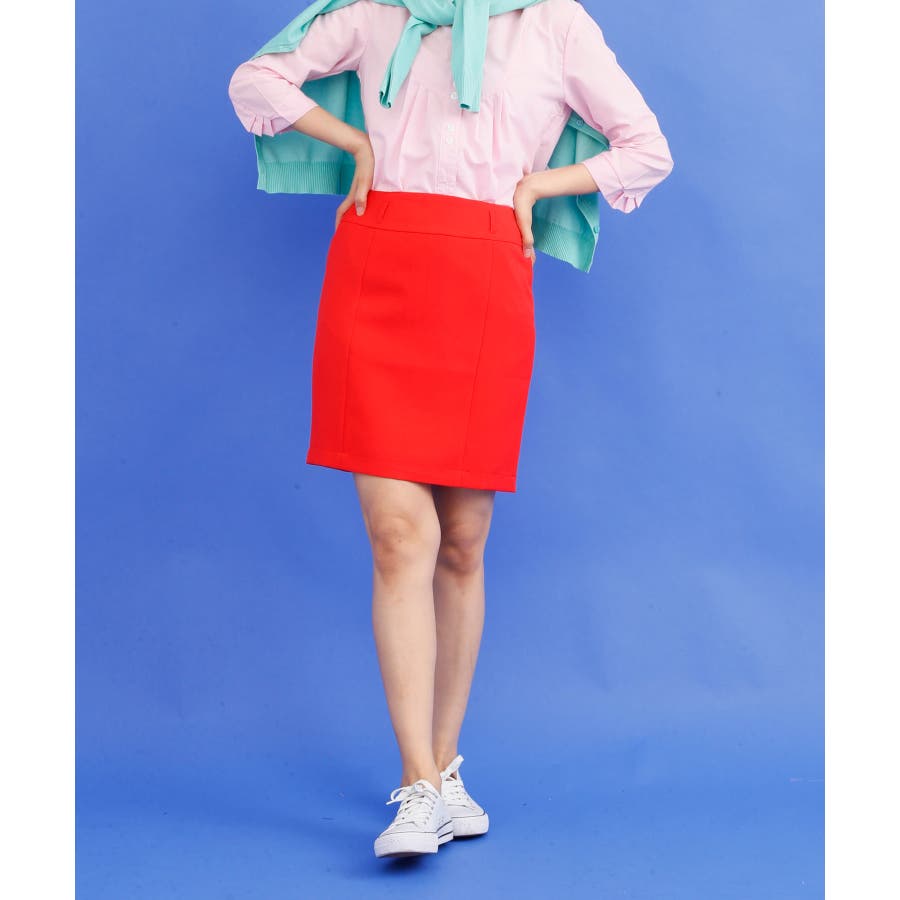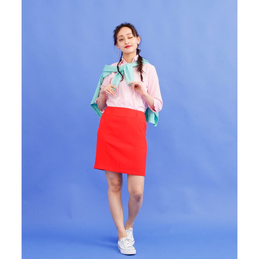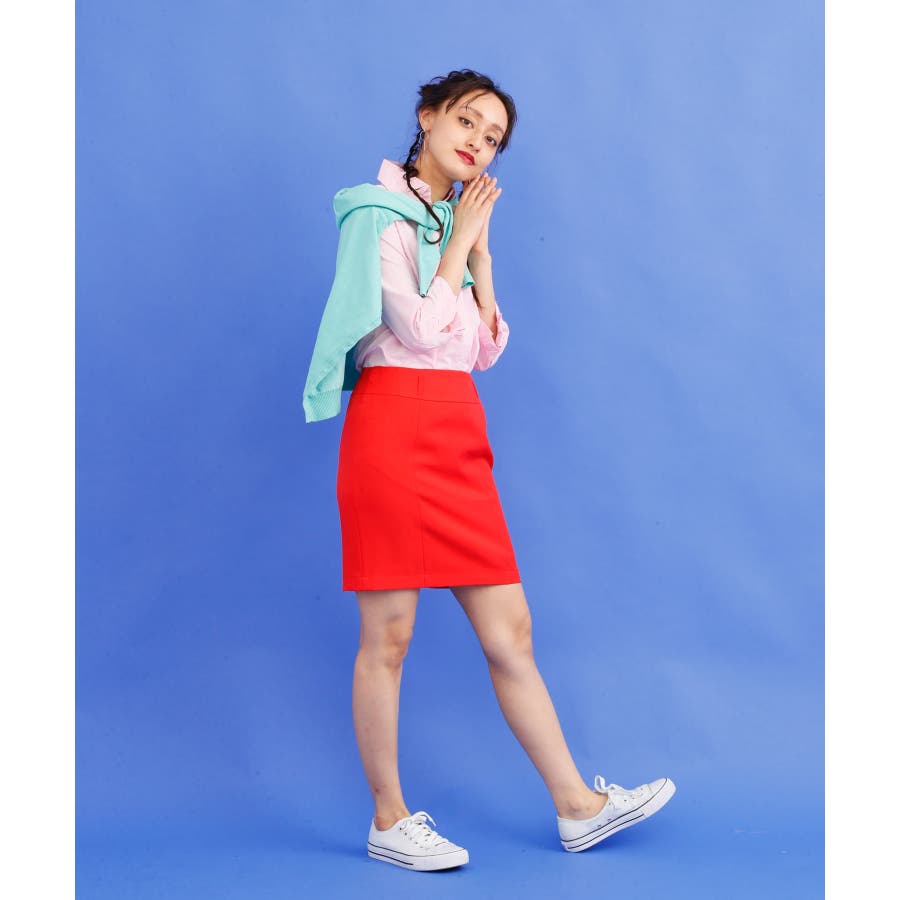 カジュアルに着こなしても可愛い膝上タイトスカート。