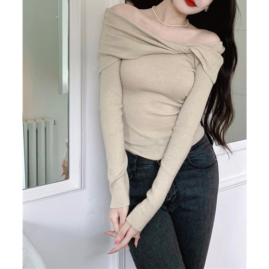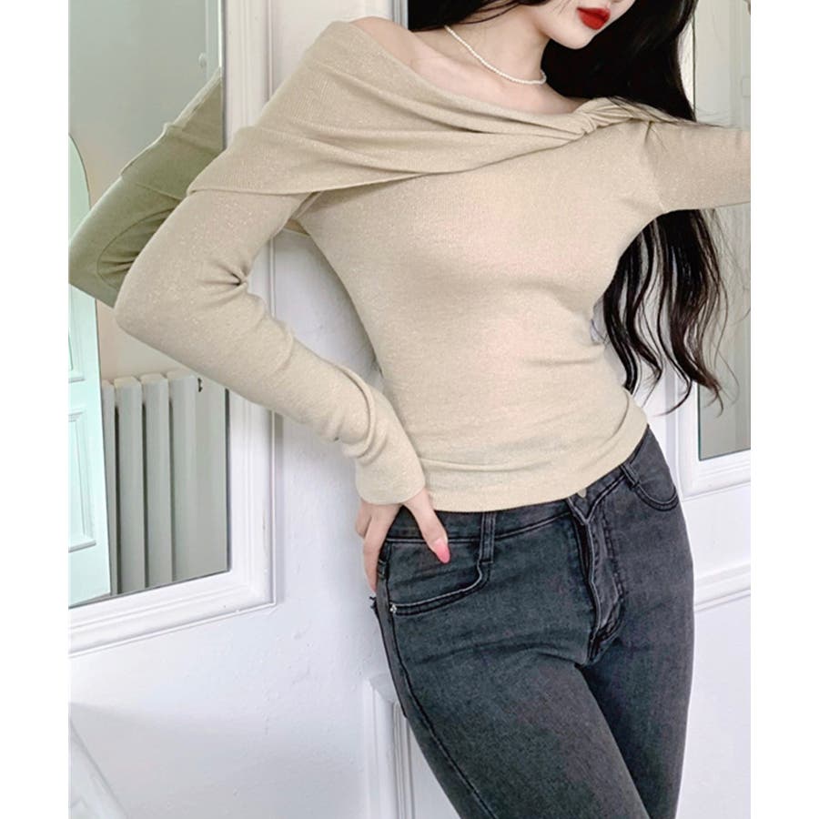 【Jasmine】オフショルダーリボンプルオーバー トップス Jasmine