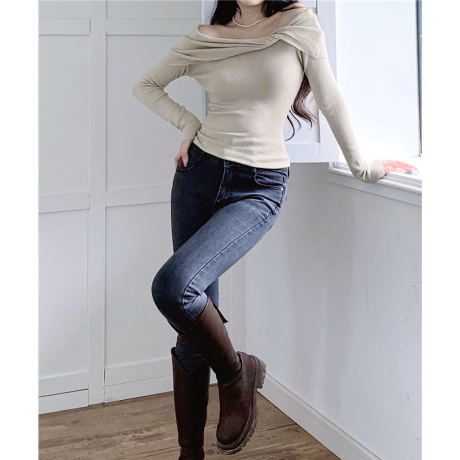 ・女性らしいオフショルデザインは肌見せの分量が調整可能◎