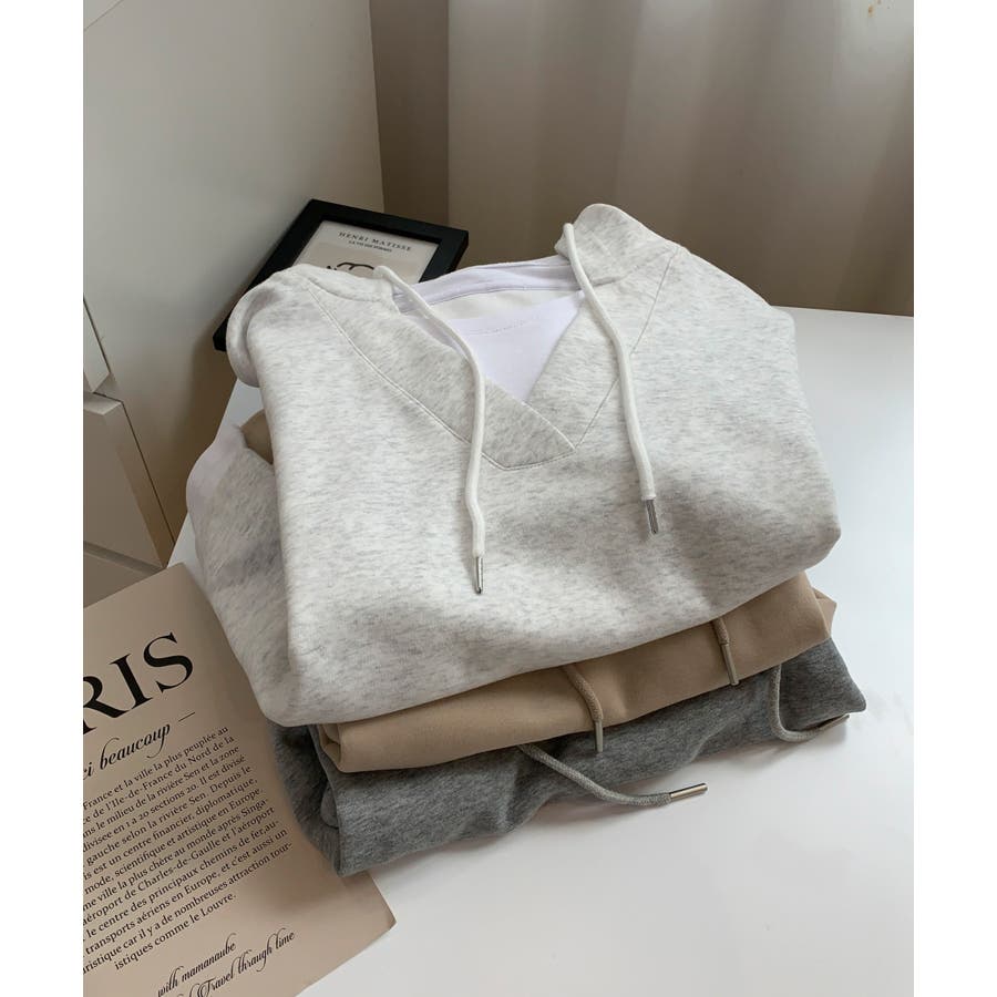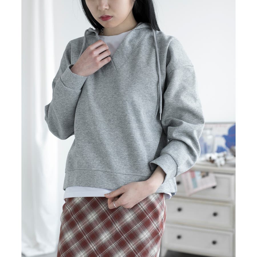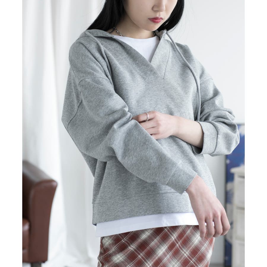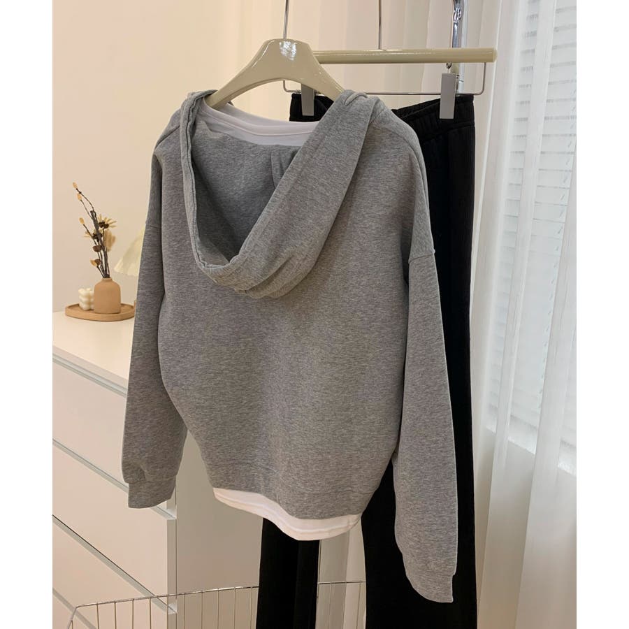 Tシャツとスウェットを重ね着したようなレイヤード風パーカーの登場です!深めのVネックスウェットにTシャツがついたデザインで、わざわざ重ね着しなくても1枚でサラッと着れるデザインです。また中でTシャツがズレてしまう心配もなく、裾から見えるレイヤー感がさりげなくておしゃれです。ベーシックカラーなのでボトムスはなんでも合わせやすく、着回しができるので1枚あるとコーディネートに困りません!洗濯の手間も省け、急なお出かけにもサッと着替えられるので1枚あると便利です!