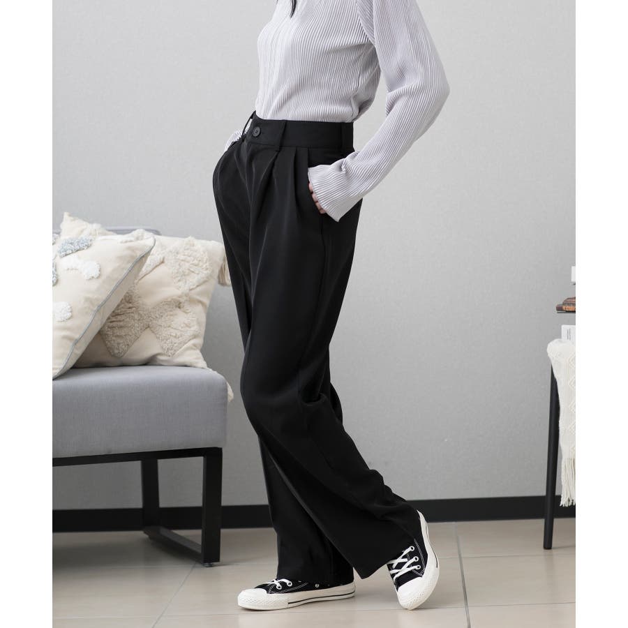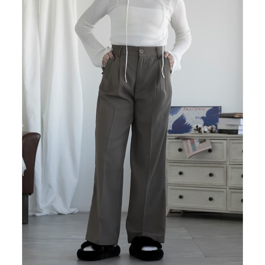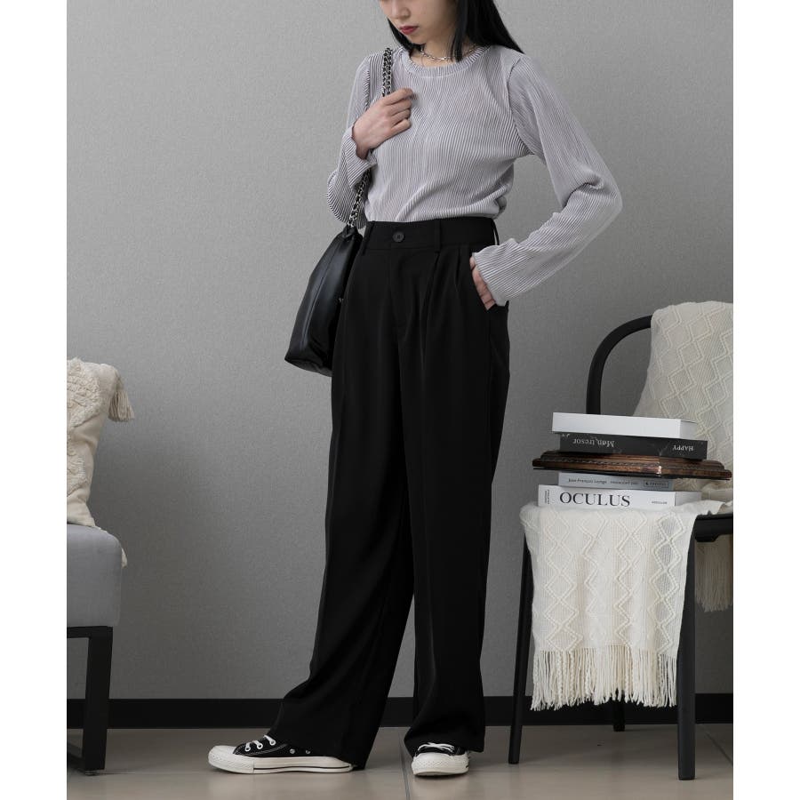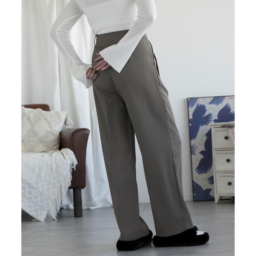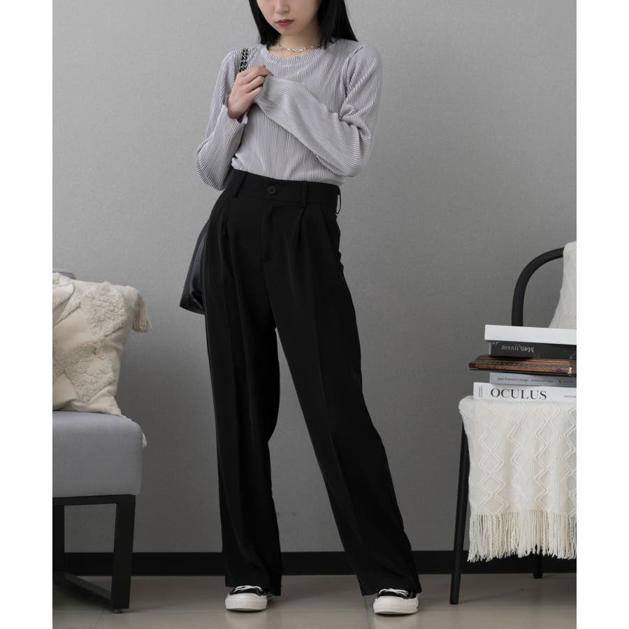 ハイウエスト タックワイドパンツ