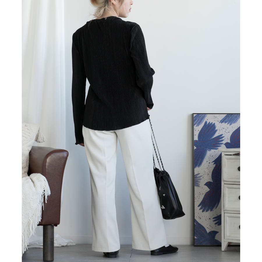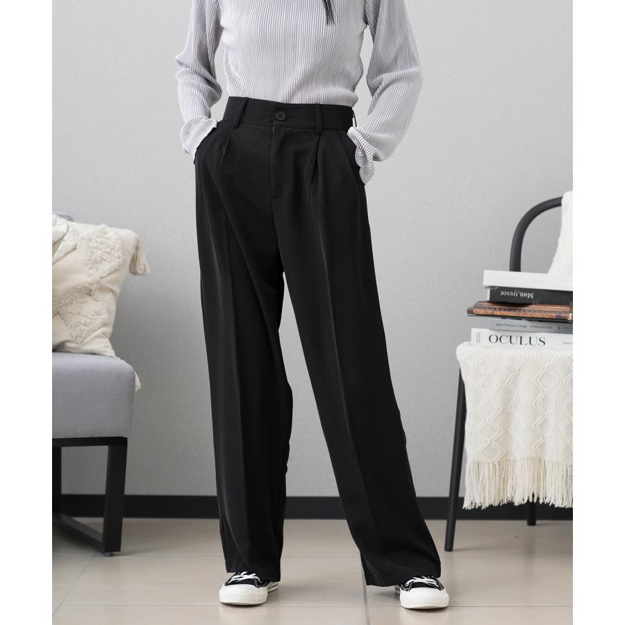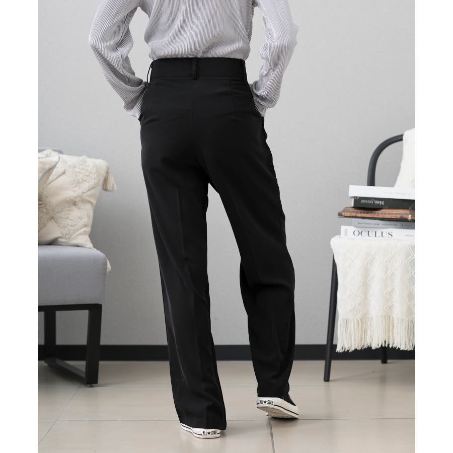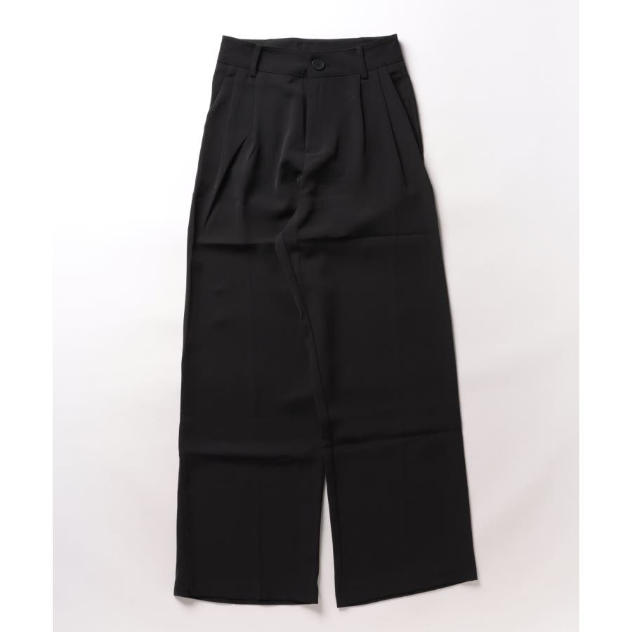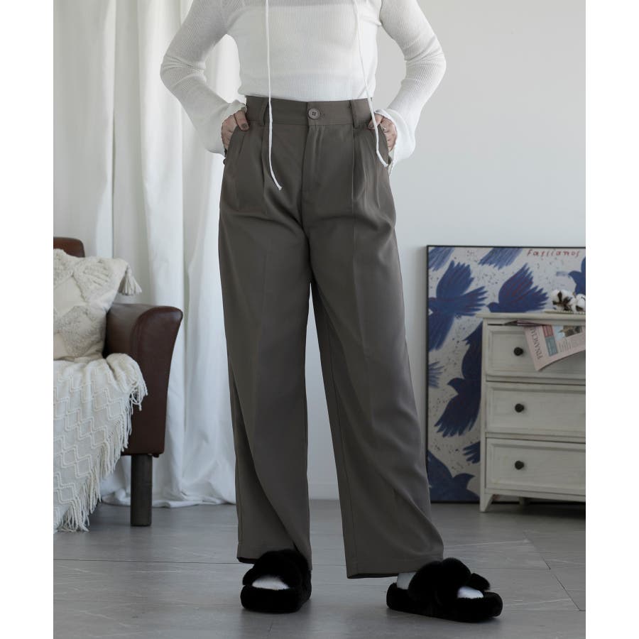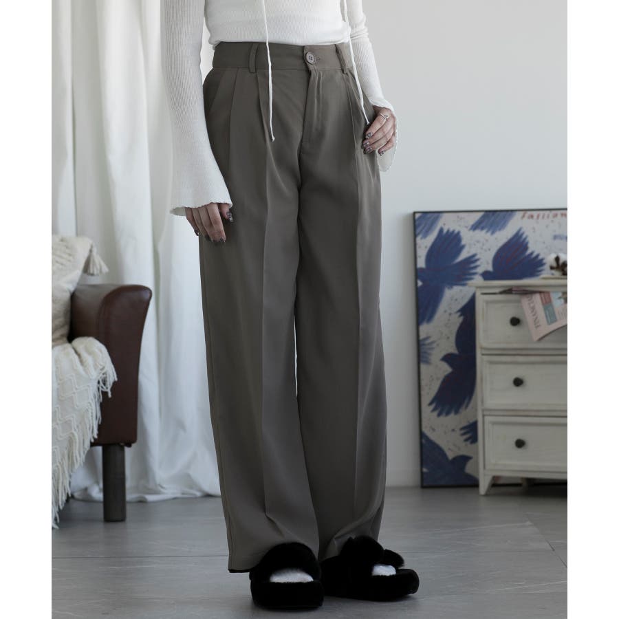 ハイウエスト タックワイドパンツ