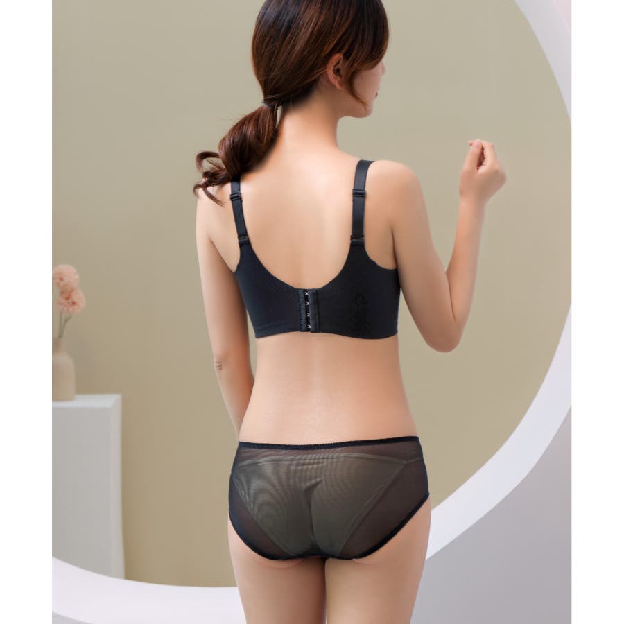 前側は大柄のレースで女性らしく、後ろはストレッチ性のある素材で背中をカバーしてくれます。