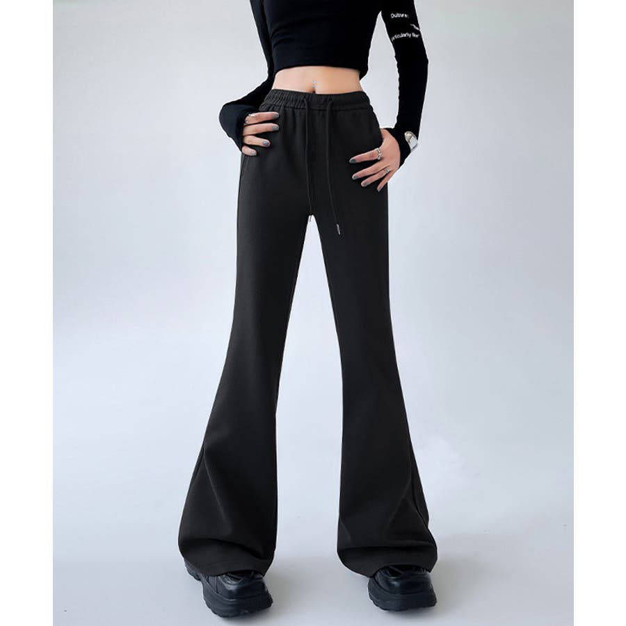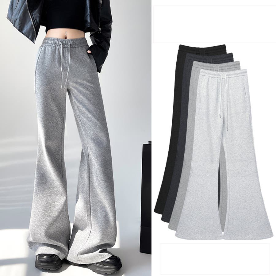 セミフレアスウェットパンツ 韓国ファッション ワイドパンツ