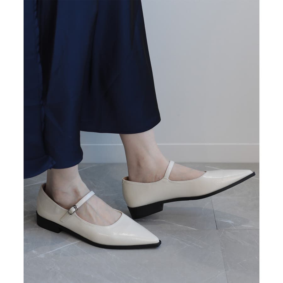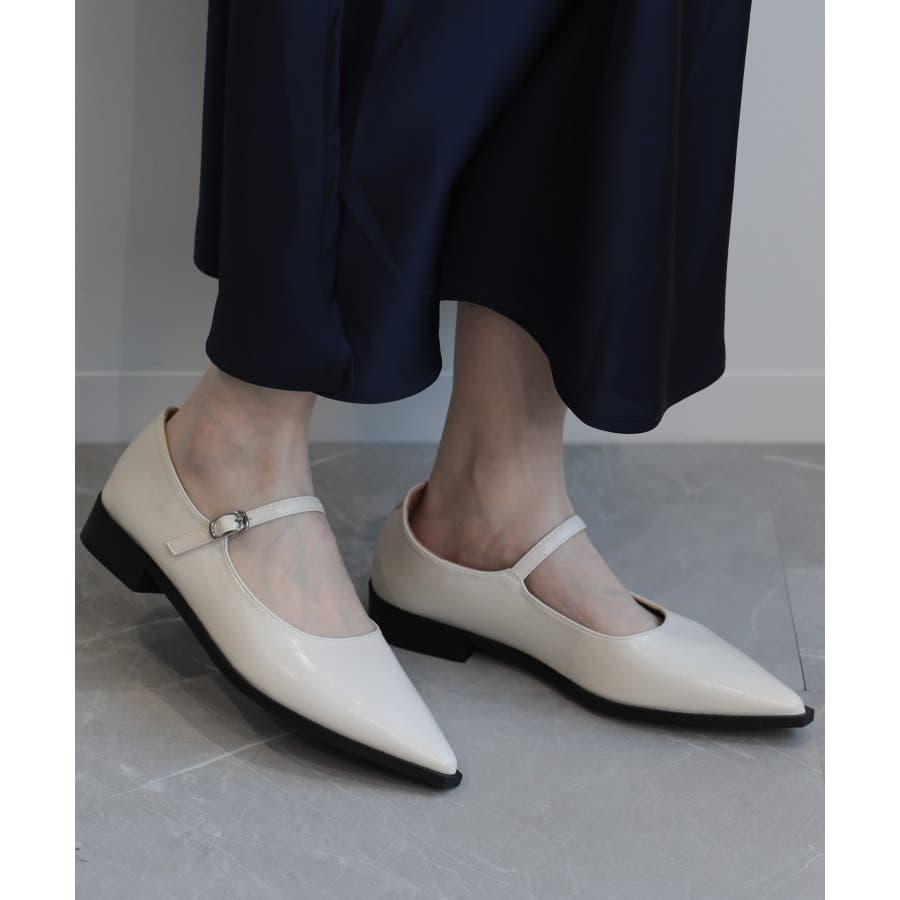 【shoes365】ポインテッド トゥ ローヒール メリージェーン シューズ