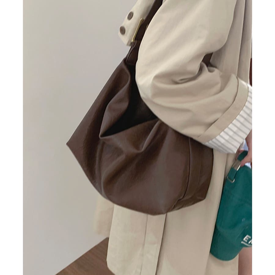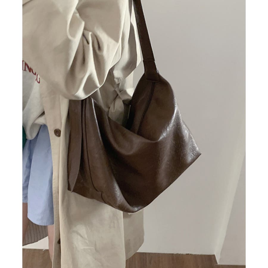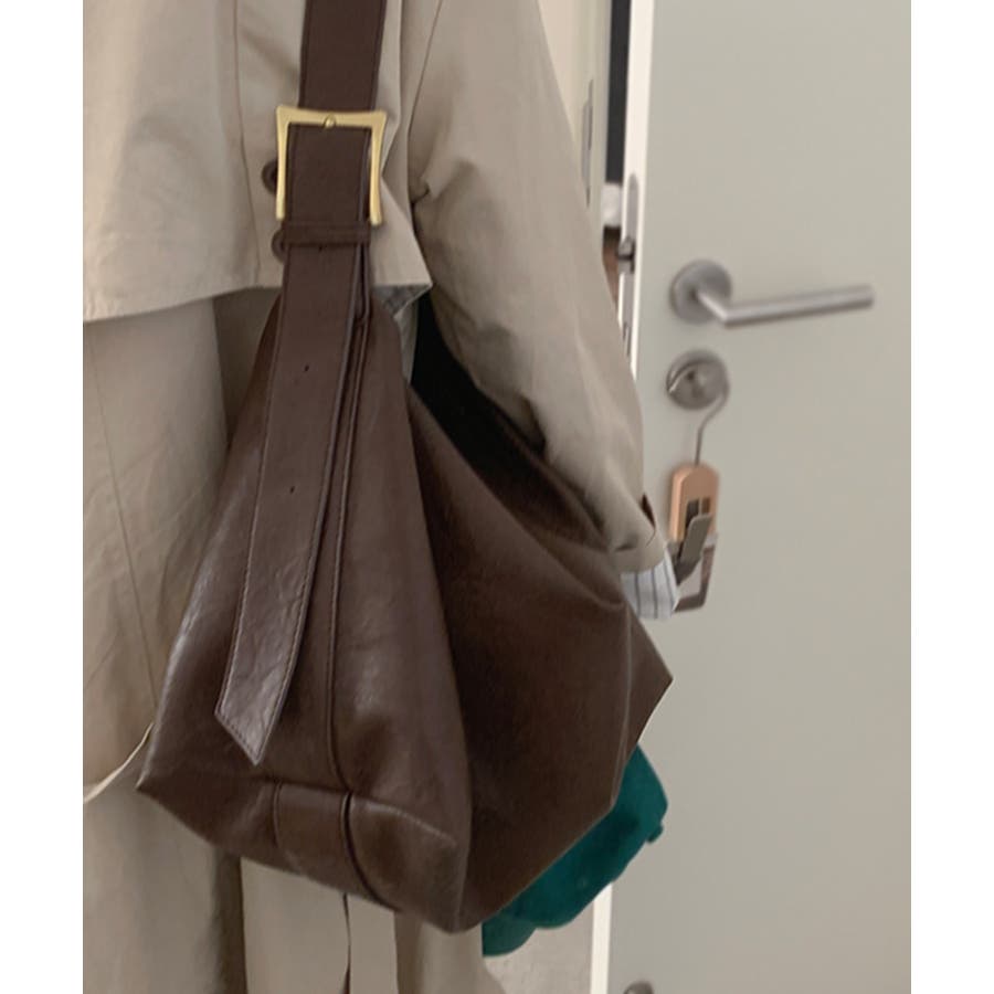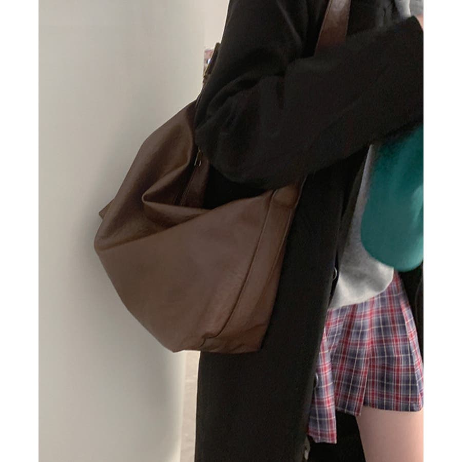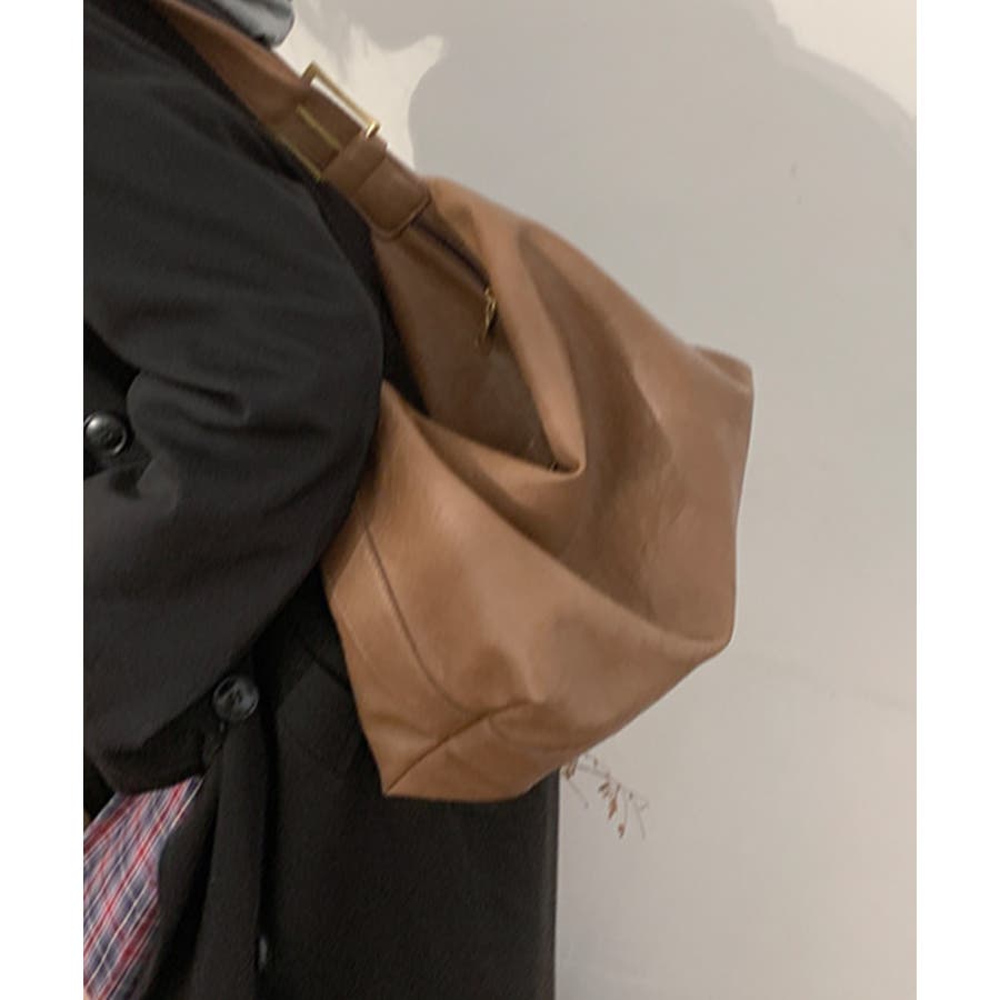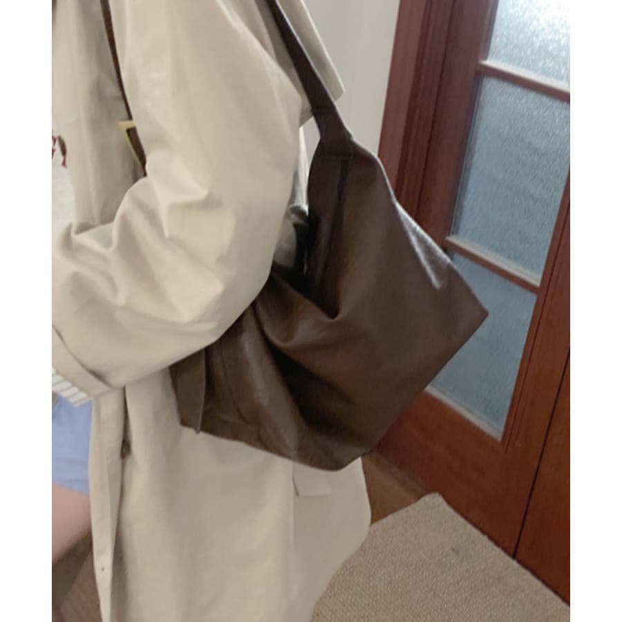 PUレザー大きめショルダーバッグ