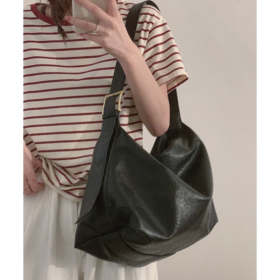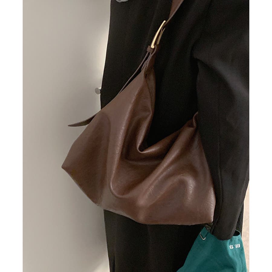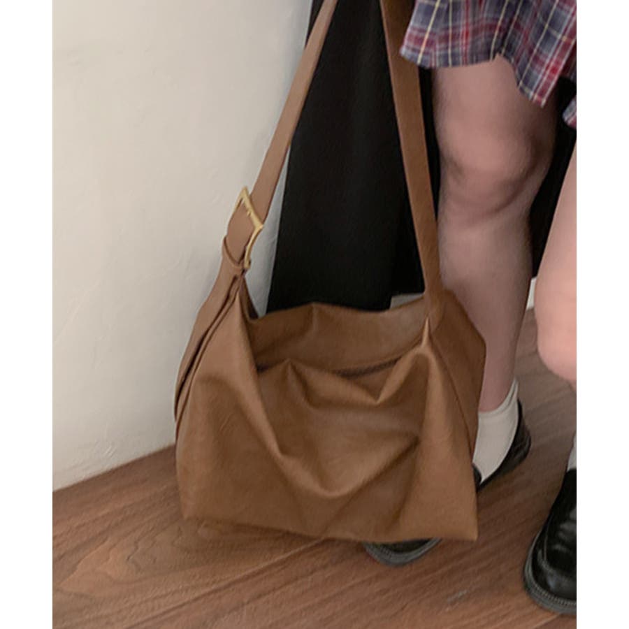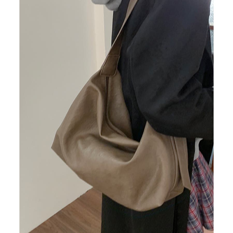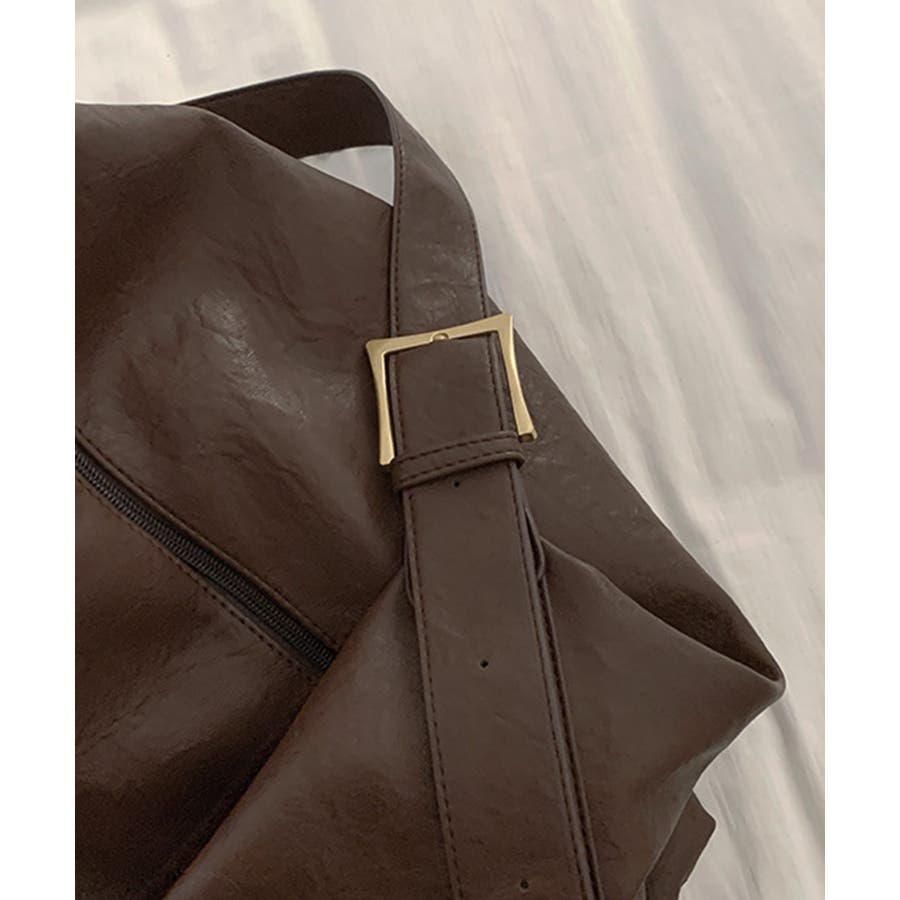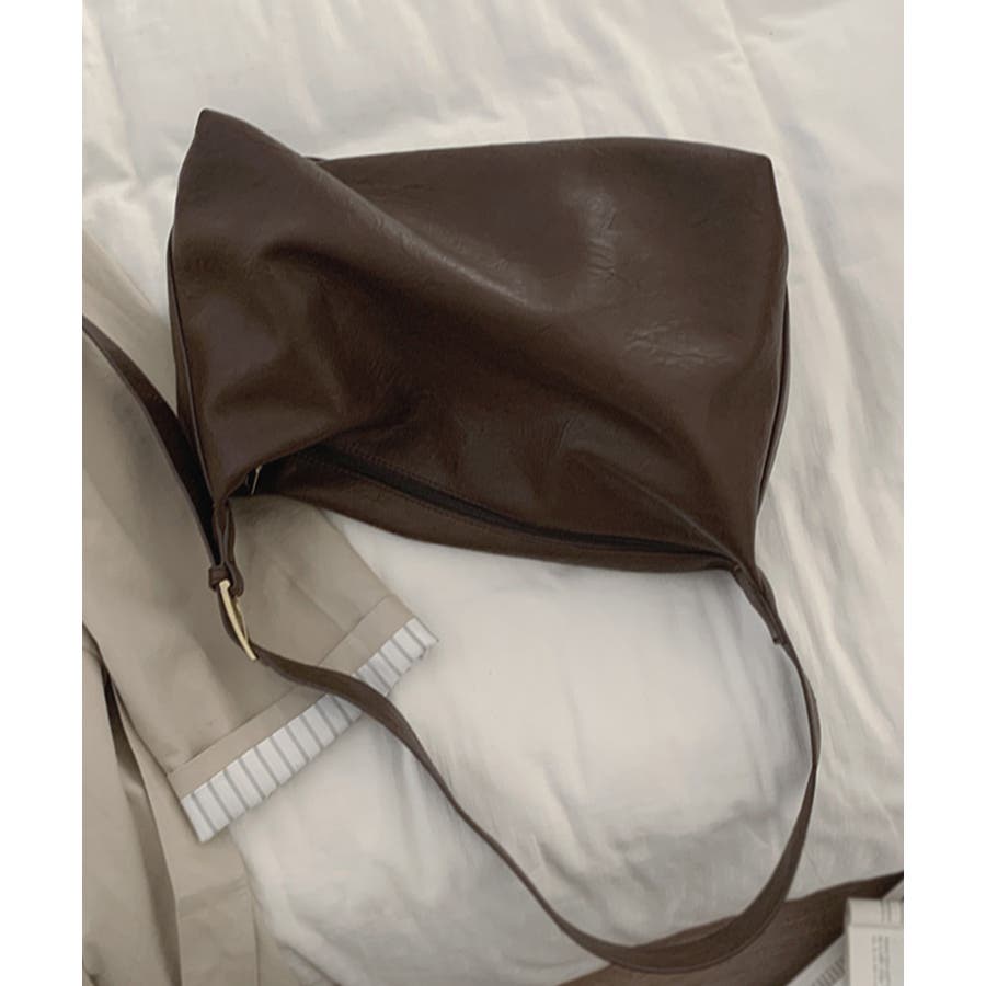 PUレザー大きめショルダーバッグ