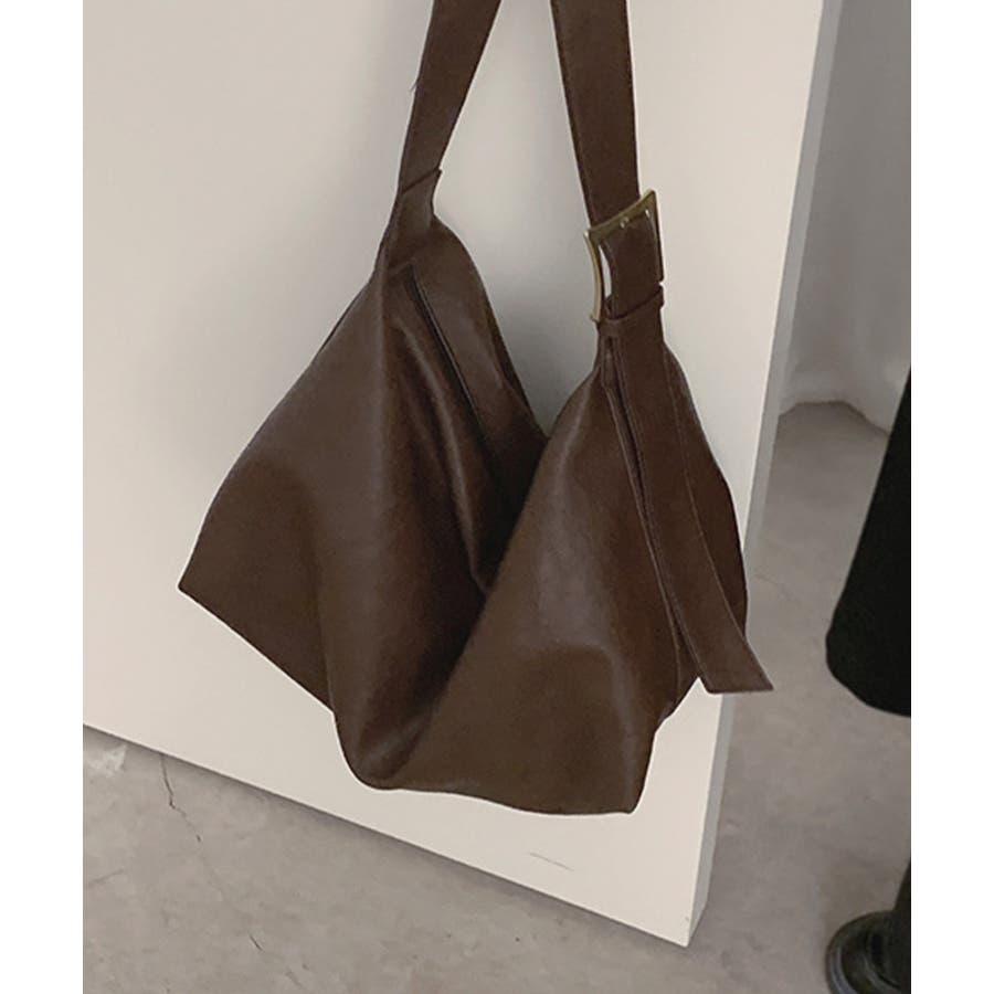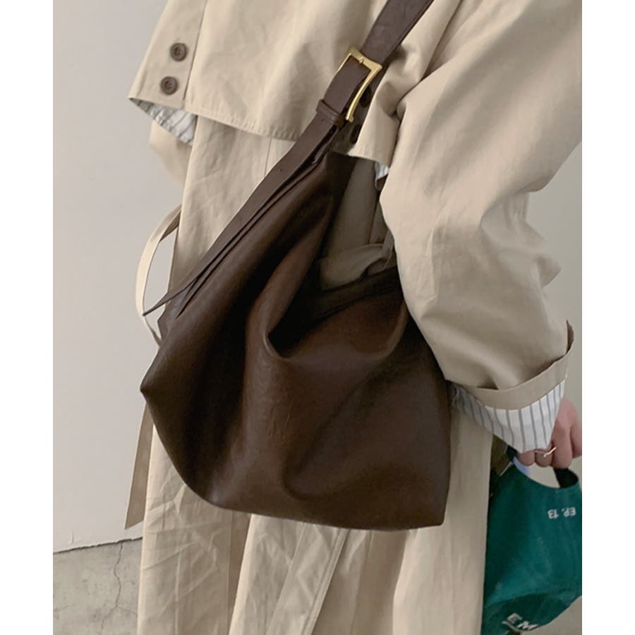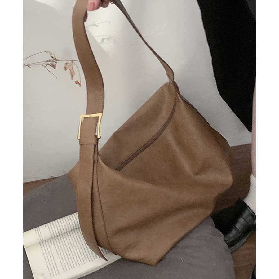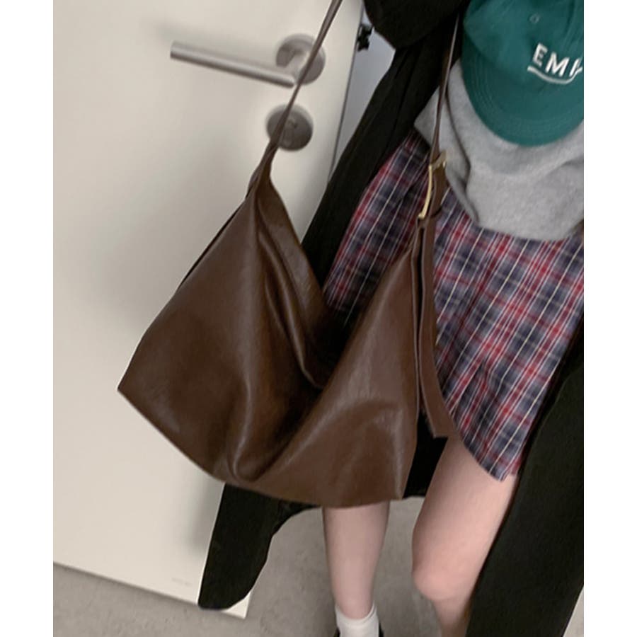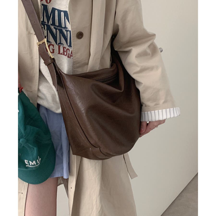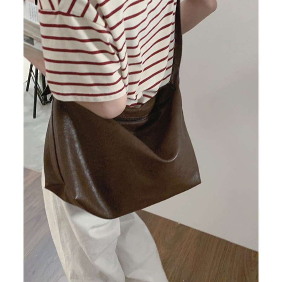 PUレザー大きめショルダーバッグ