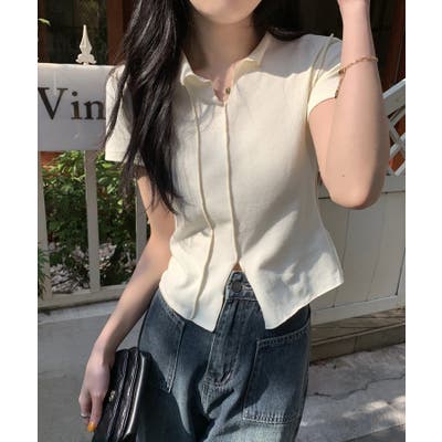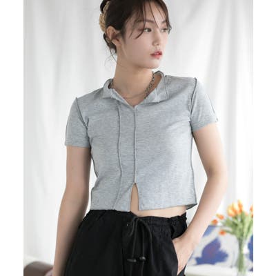 衿と裾が開いたデザイントップスです!衿周りのクシュっと感がかわいいトップス!胸元にはアシンメトリーでプリーツが入っています!デザイントップスですが無地なのでボトムスを選ばず、春夏のコーディネートに迷いません。ミニ丈で、裾が開いているのでヘルシーな肌見せができ、ハイウエストパンツなどと合わせると脚長効果も期待できます。