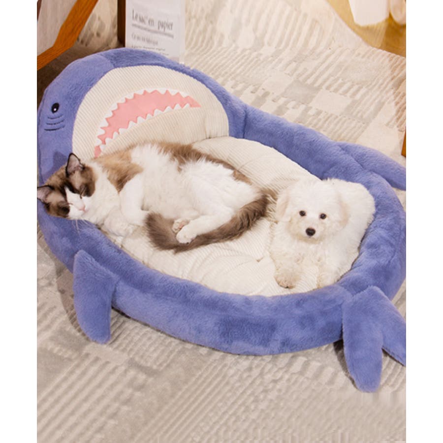 かわいいサメ型のクッションベッドの登場です!柔らかい素材を使っており、起毛素材なので秋冬は温かく床の冷気を感じにくいです。猫や小型犬でしたらゆったり手足を伸ばしてくつろげるサイズ感で、窓際の日光浴用やおもちゃで遊ぶ時などにもオススメです。裏面には滑り止めも付いているのでフローリングのお家でも安心してご使用いただけます。かわいいペットアイテムでお部屋のインテリアに遊び心もプラスできちゃいます!