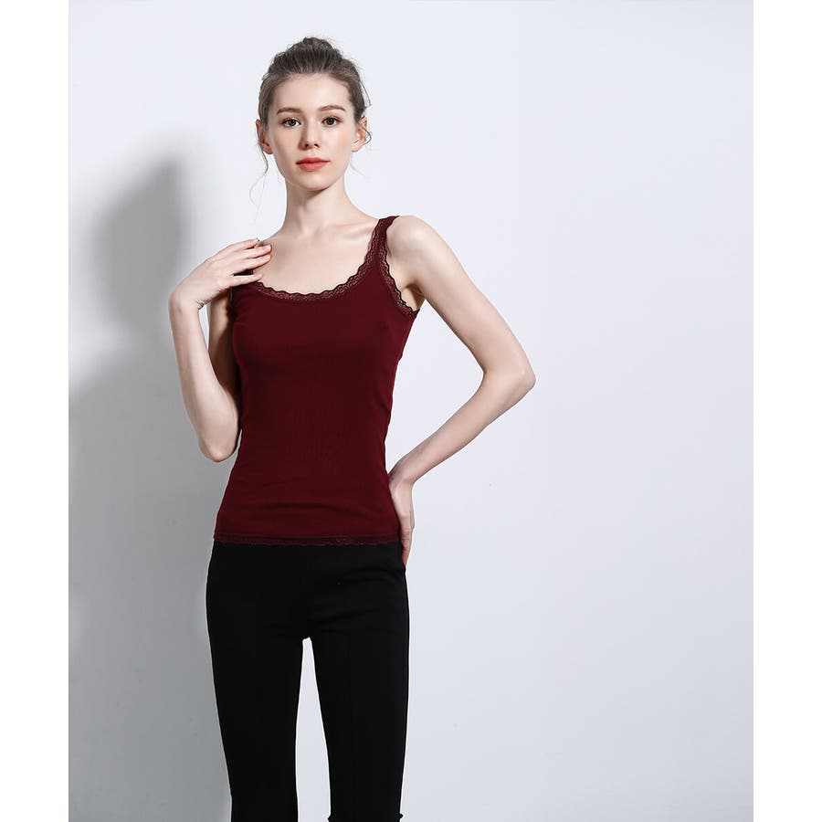 レース柄であしらった100%コットン綿素材のタンクトップ!