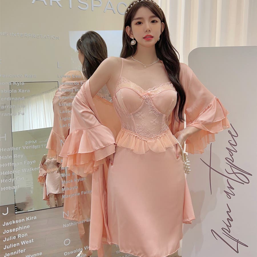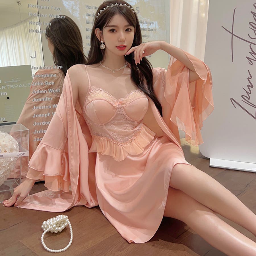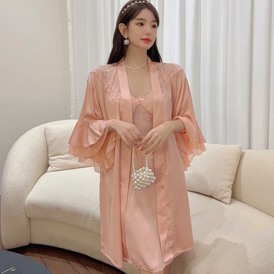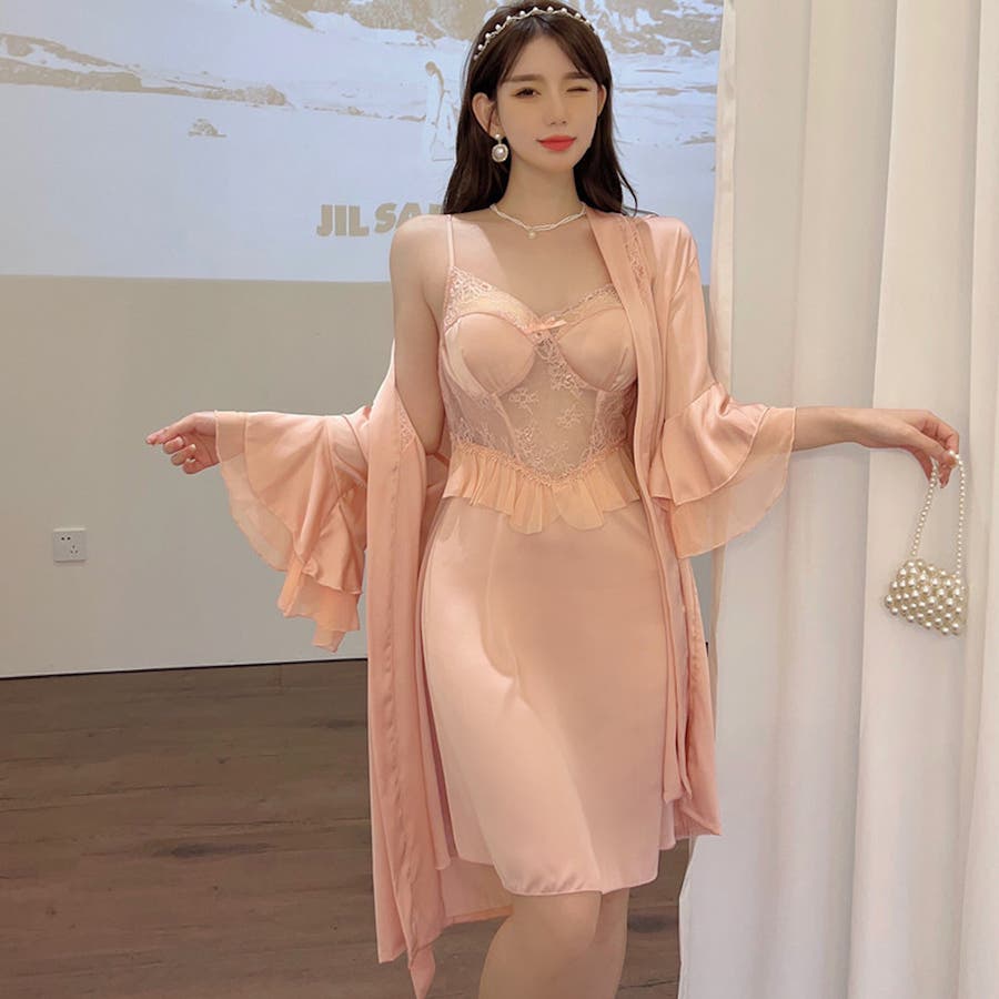 パット付きのランジェリーキャミソールワンピースとナイトガウンのセット 2点セット…