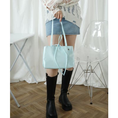 【HOOK】for girls リボン無地シルク風トートバッグ Y2K