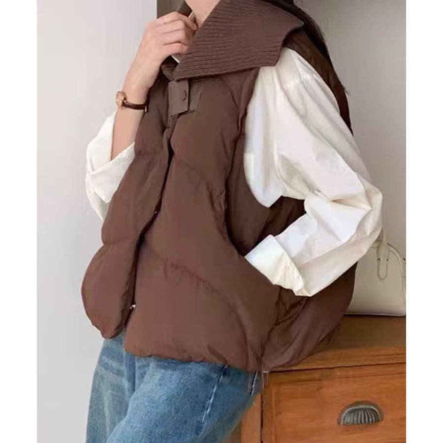 ニット衿ショートダウンベスト