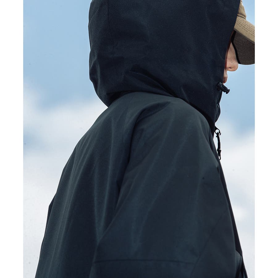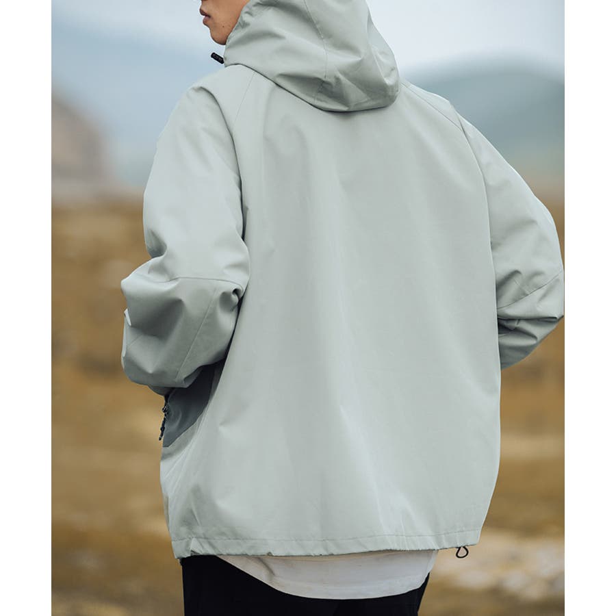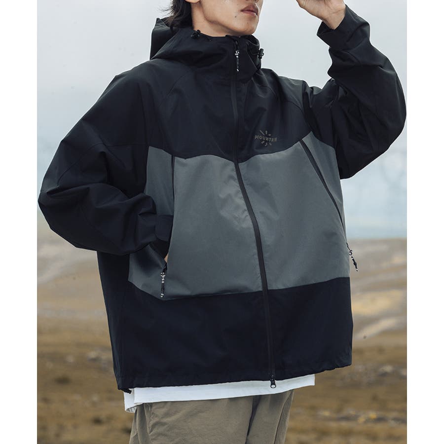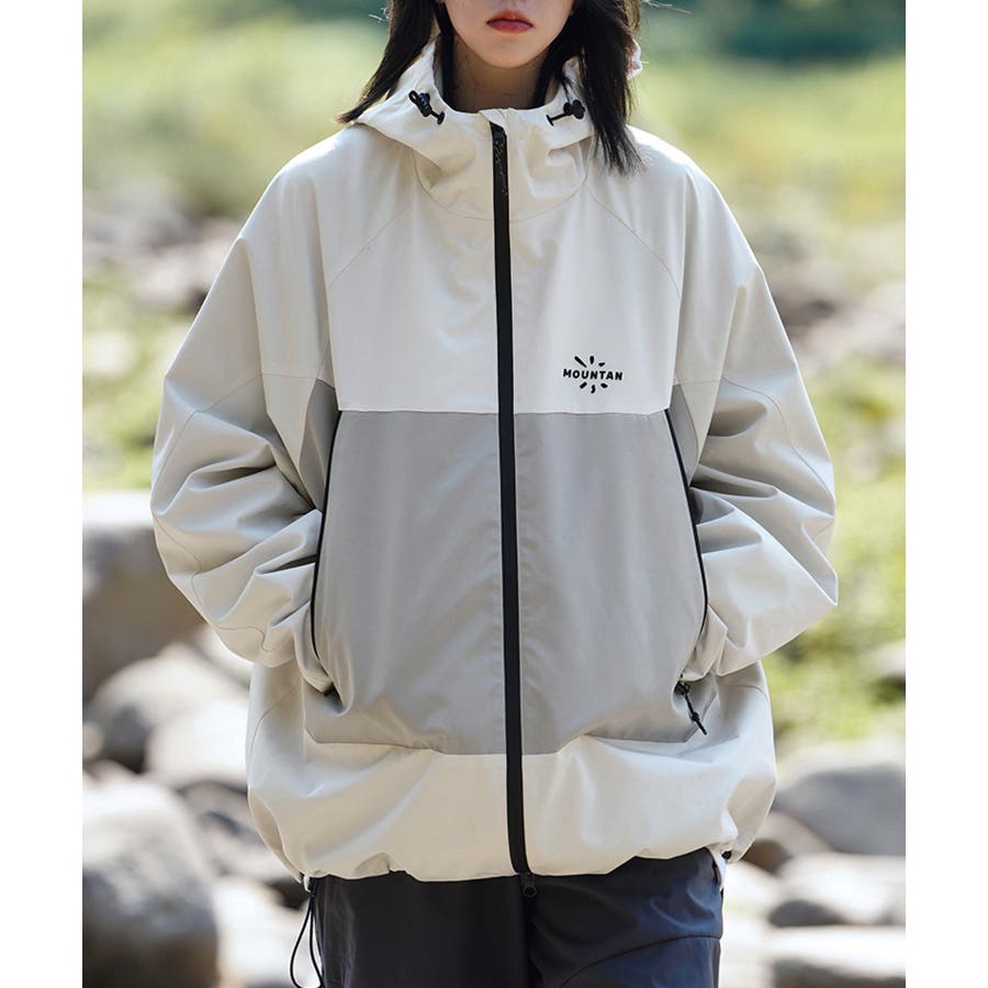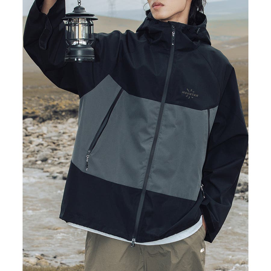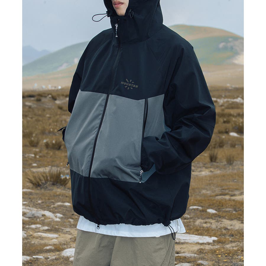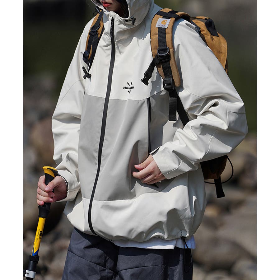 撥水、撥油素材を使用しているので、雨の日や汚れやすいアウトドアでの使用に最適!前には水が入りにくい加工のされたファスナーを使用しており、ポケットにもファスナー付きなので中のものを濡らさずに持ち運びが可能です。裾とフード周りには絞り調節が可能なゴム紐付きなので、絞って体にフィットさせると服の中の温かい空気を逃しにくいです。袖口の大きさも調節可能なので、中に厚手の服を合わせてもごわつきません。袖の切り替えは腕が動かしやすいように立体構造で、ハイキングやキャンプなどアウトドアにオススメです。胸元にはロゴが入っており、バイカラーのデザインなのでシンプルになりすぎず、デニムやカーゴパンツなどシンプルなアイテムと合わせてもコーディネートが決まります。