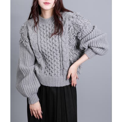 柔らかい肌触りのフリンジが目を惹くニットセーター。身頃のケーブル編みや袖のリブ編みなど様々な編み地が目に楽しい一着。モヘアタッチの手触りの良さと高級感のある素材を使用。型崩れしにくくシワになりにくいのがモヘアにはない魅力。デニムパンツと合わせるだけでコーデが決まる主役級ニットトップスです。