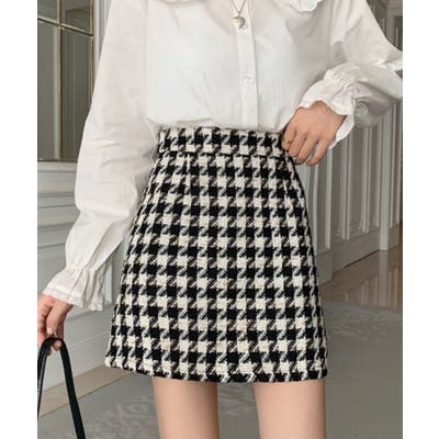 【Jasmine】千鳥柄ミニスカート 韓国ファッション ツイードジャケット