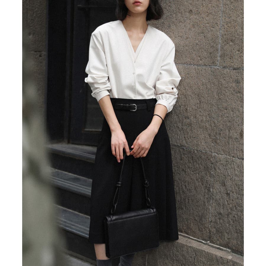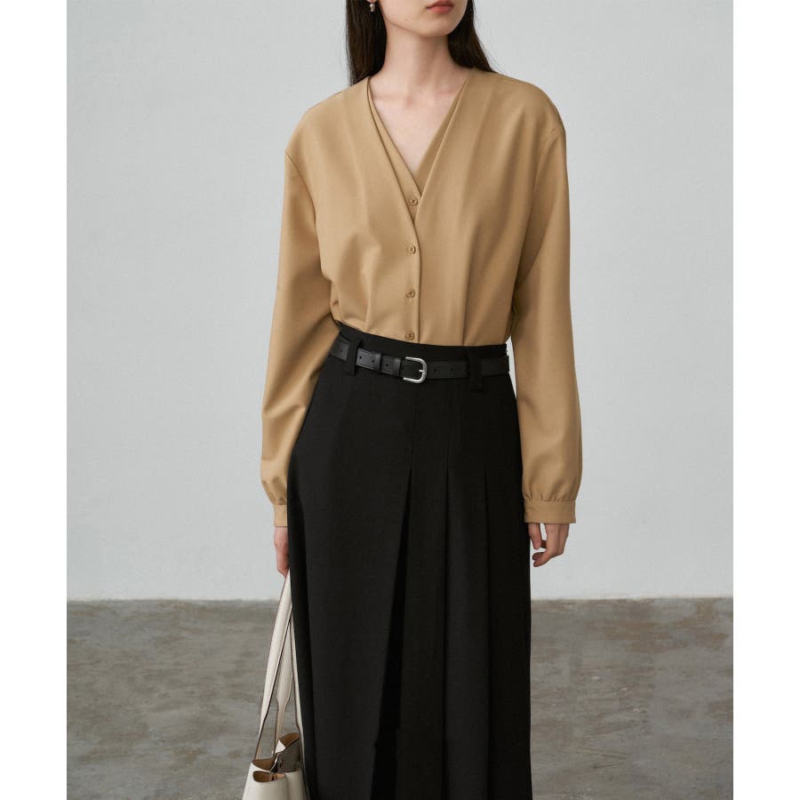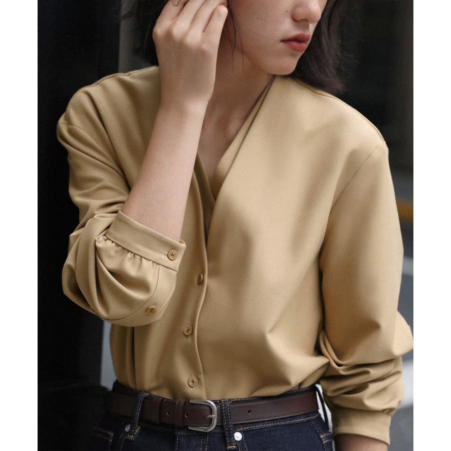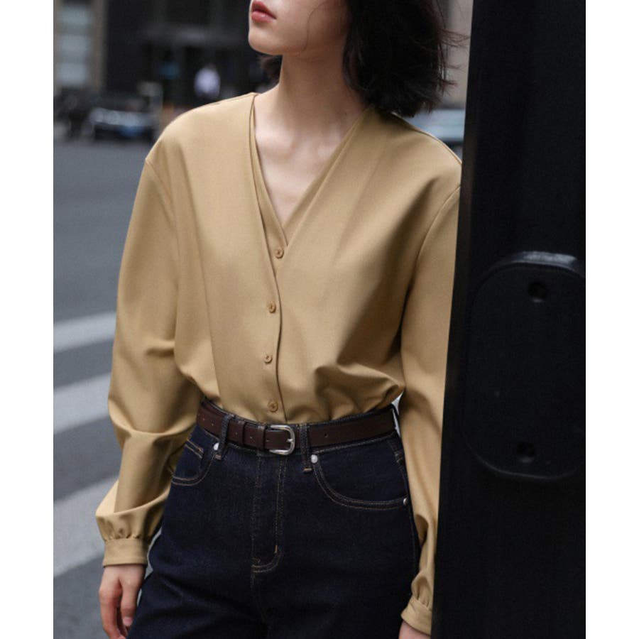 ベーシックな形で、二重のVネックはオシャレなポイントです。