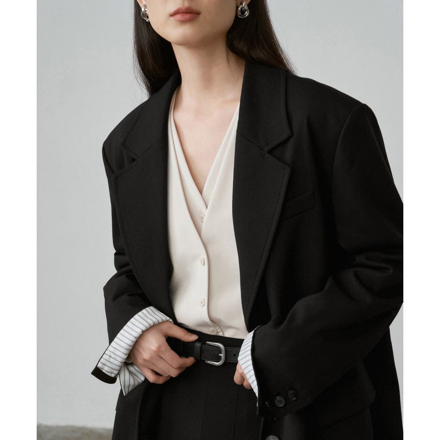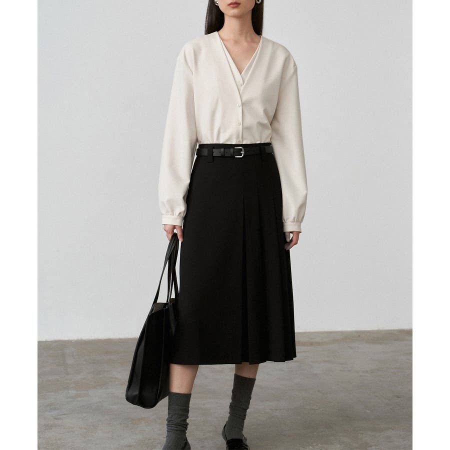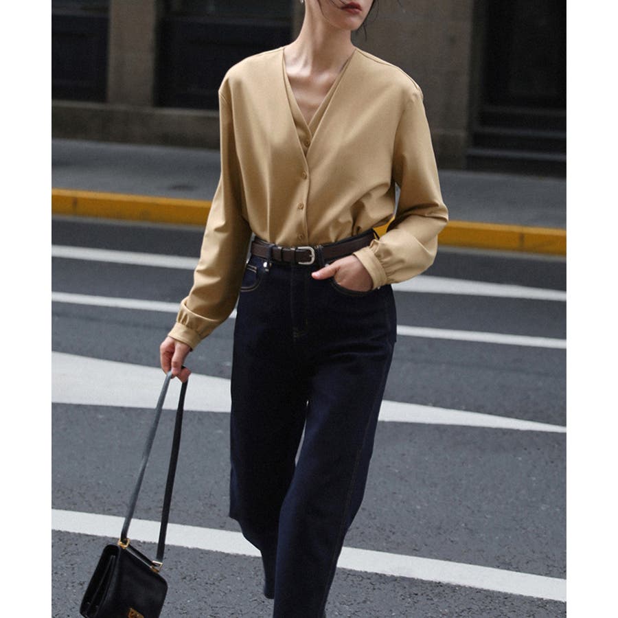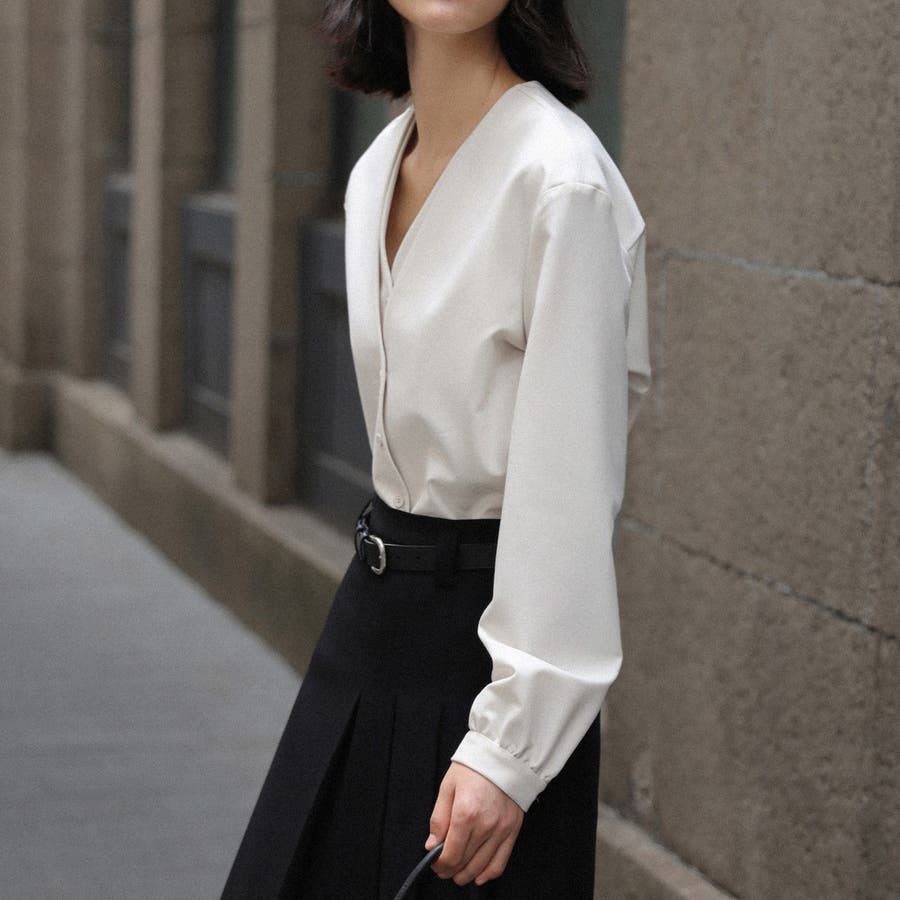 ベーシックな形で、二重のVネックはオシャレなポイントです。