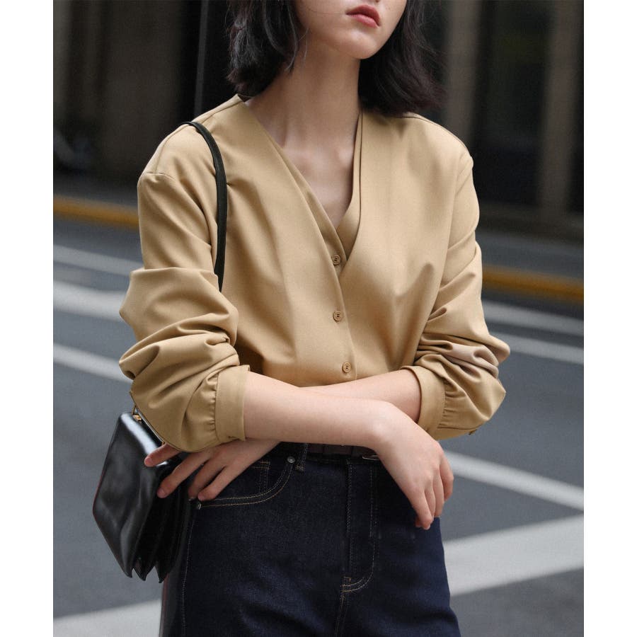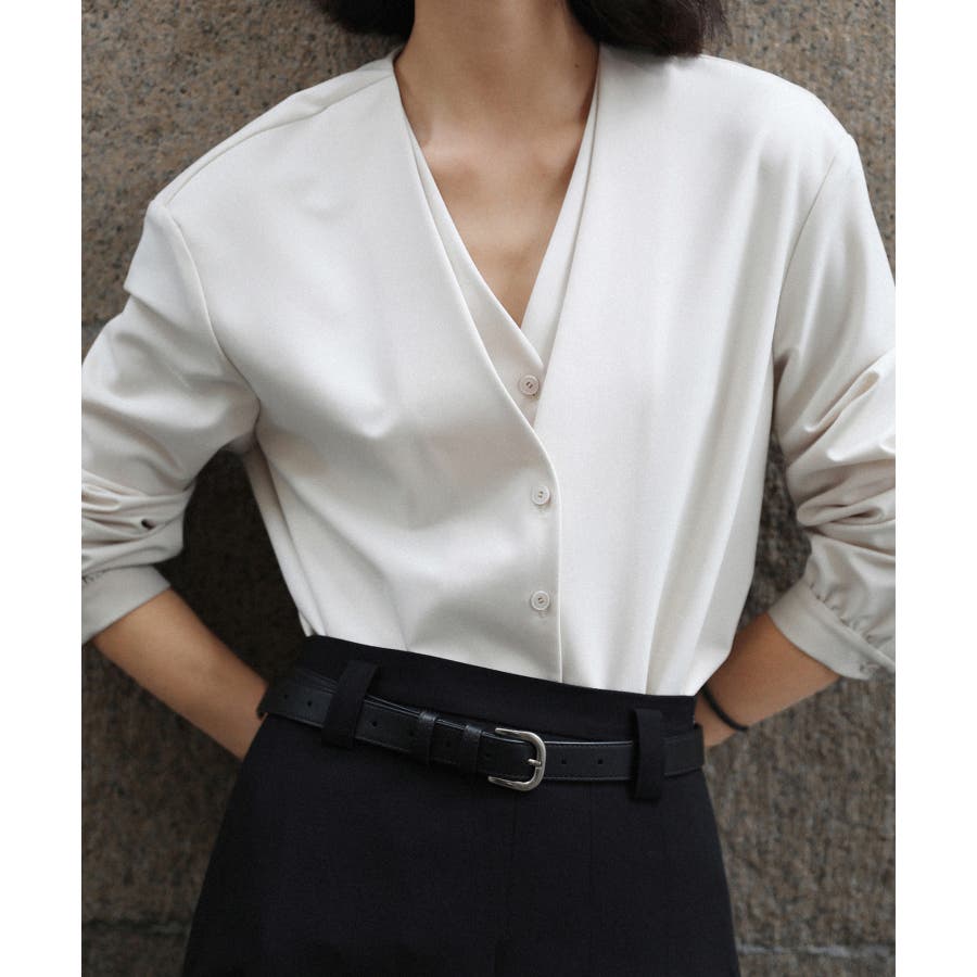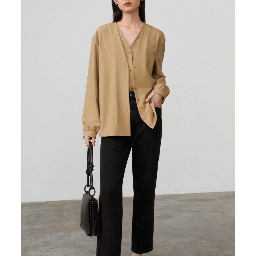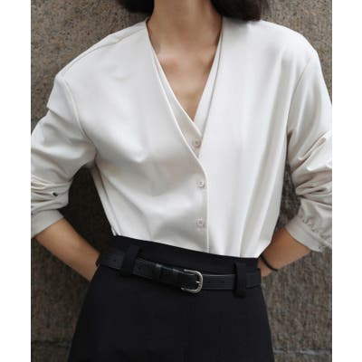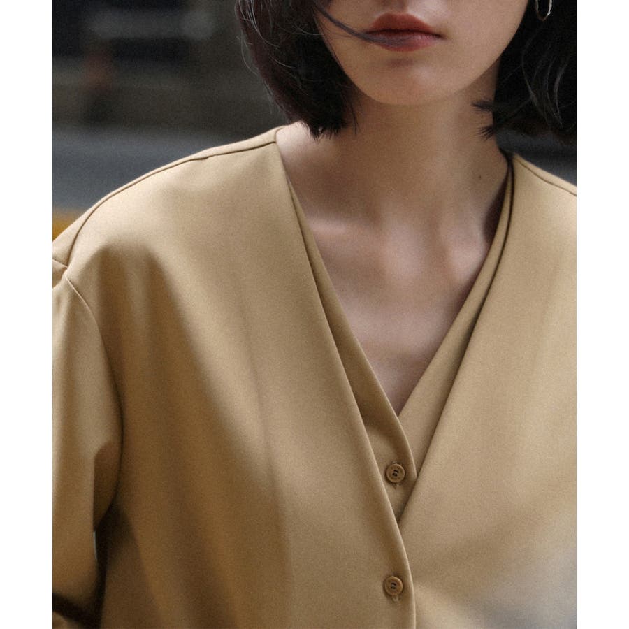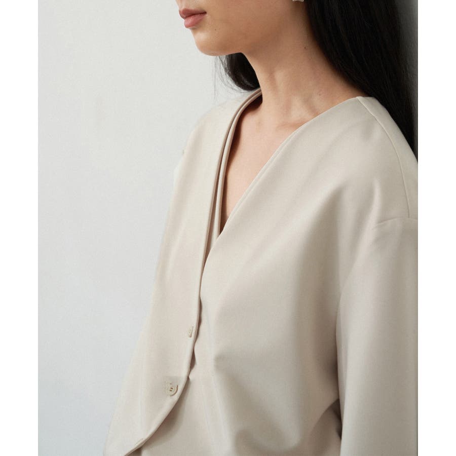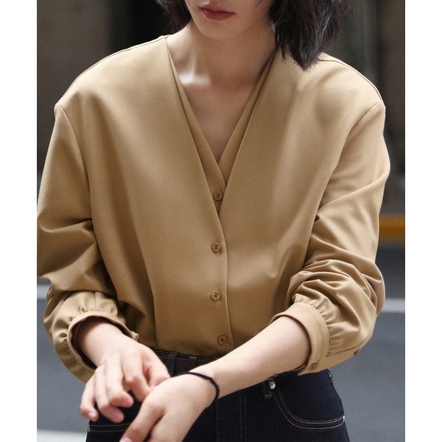 カシュクール風 Vネック フェイクレイヤードシャツ