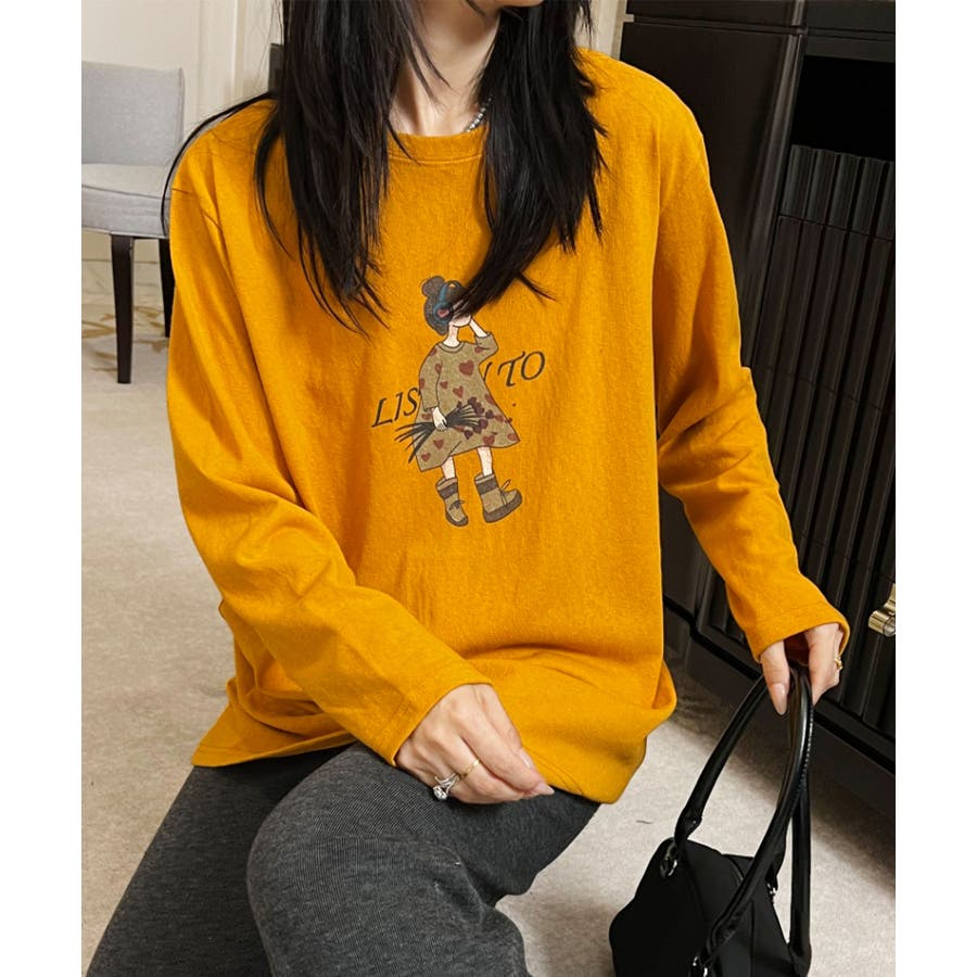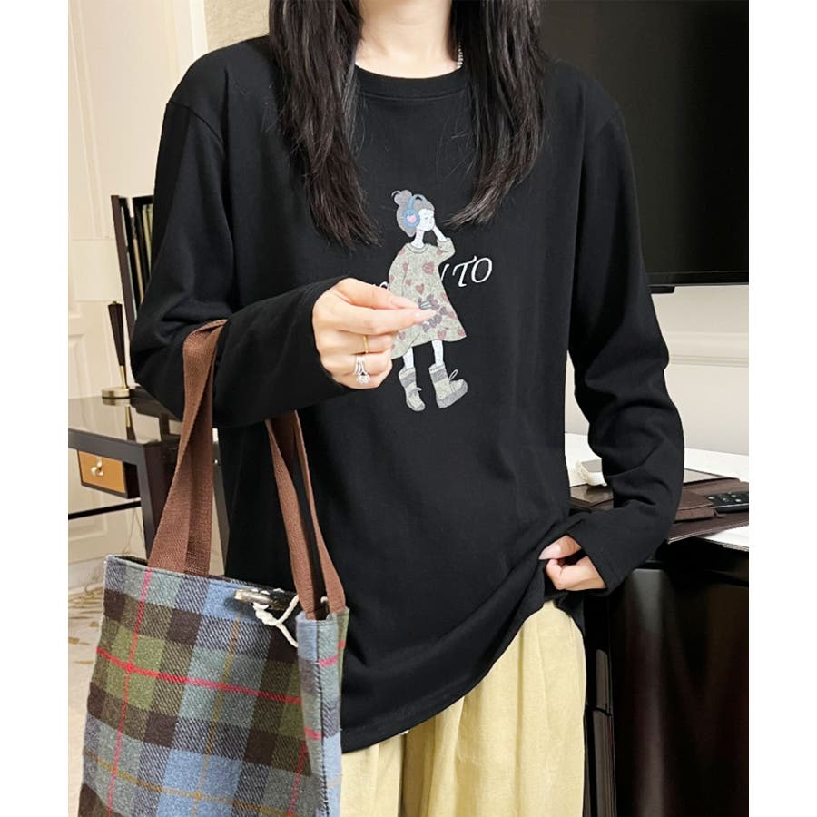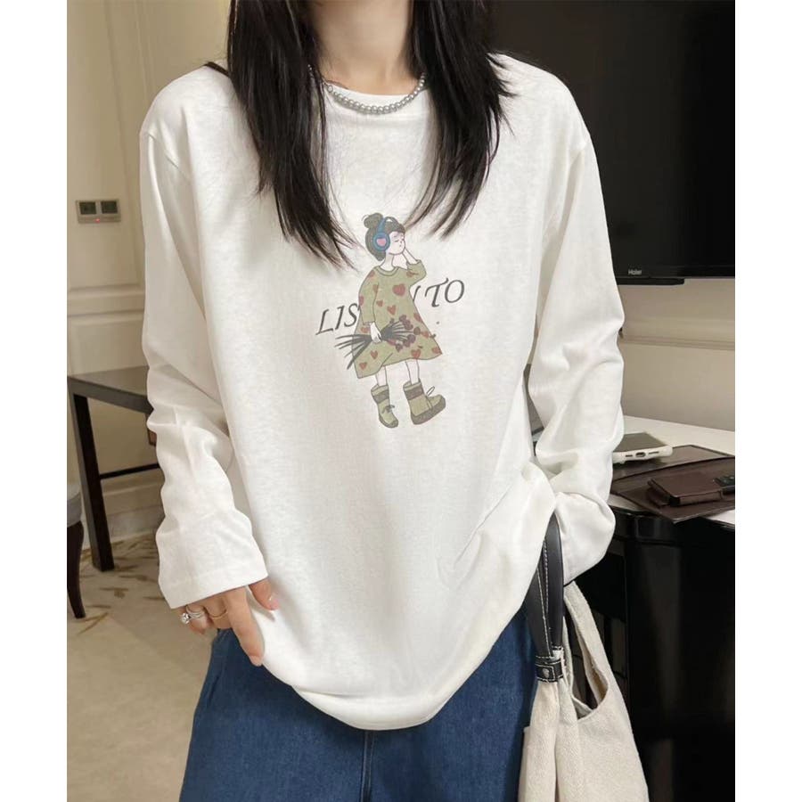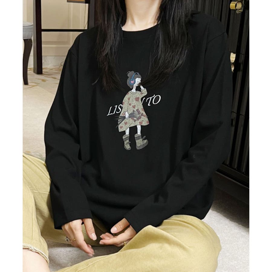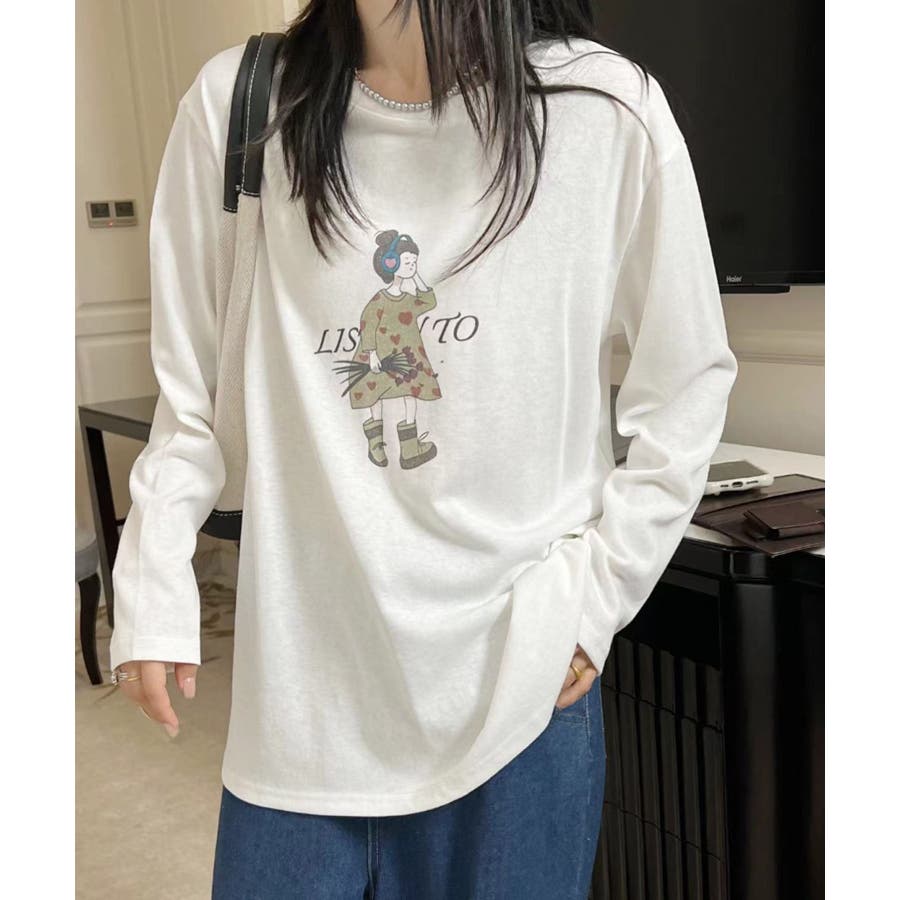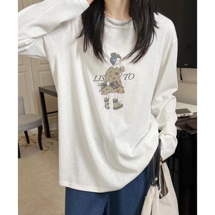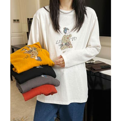 イラストプリントロングスリーブTシャツ