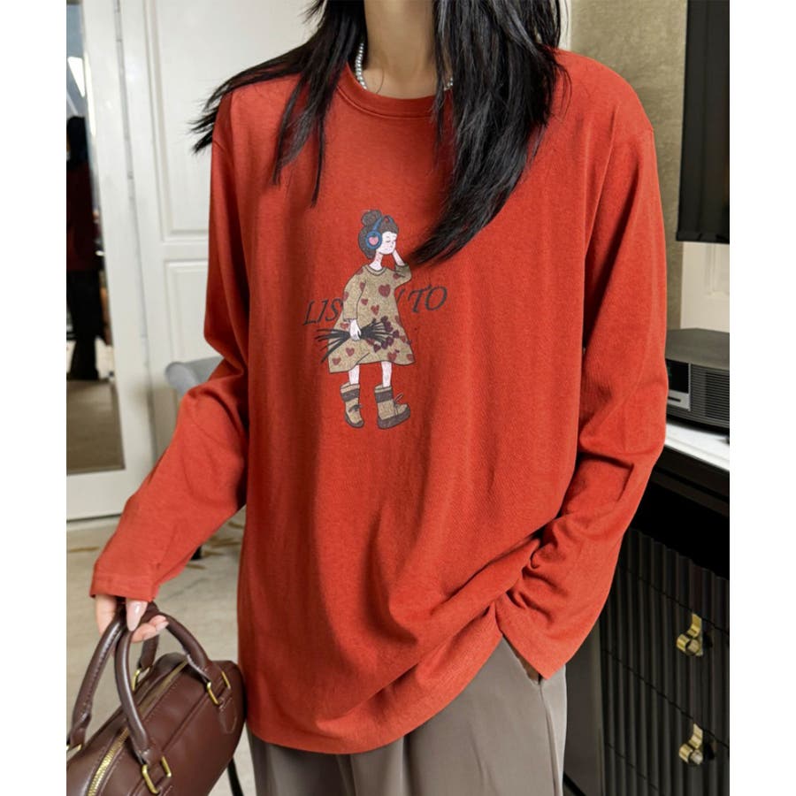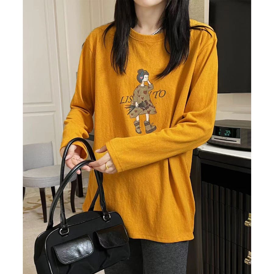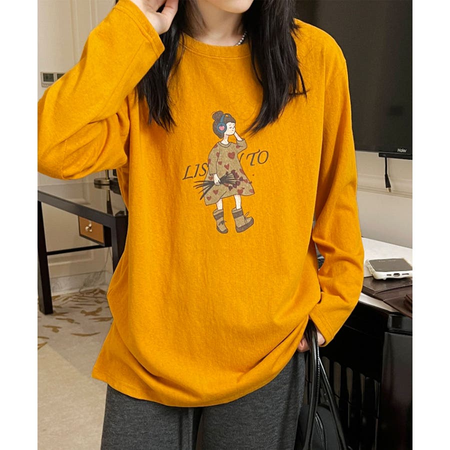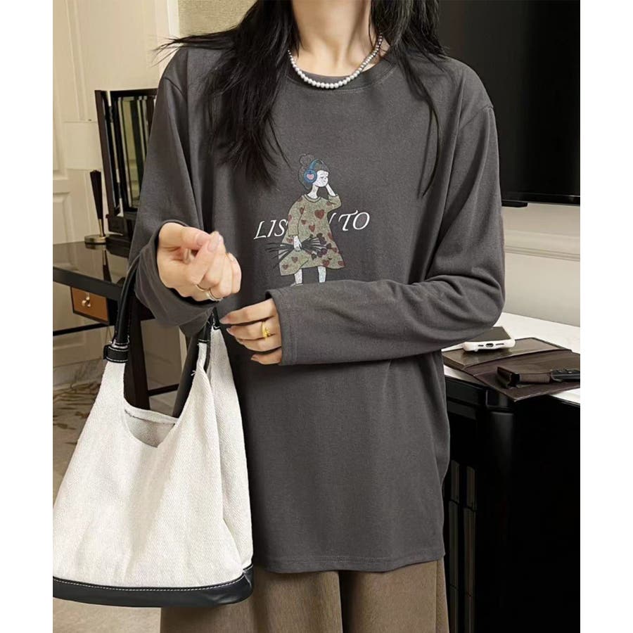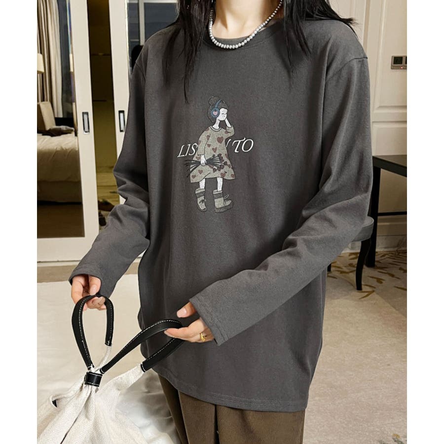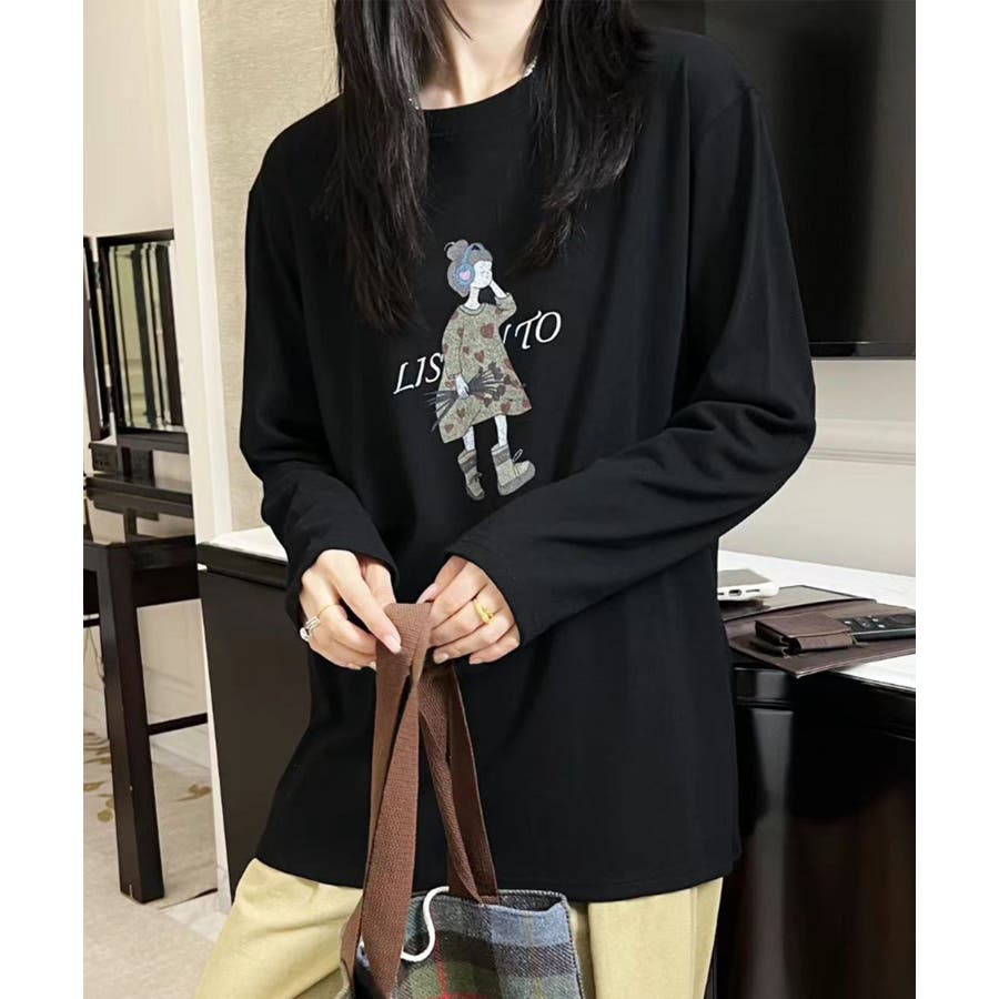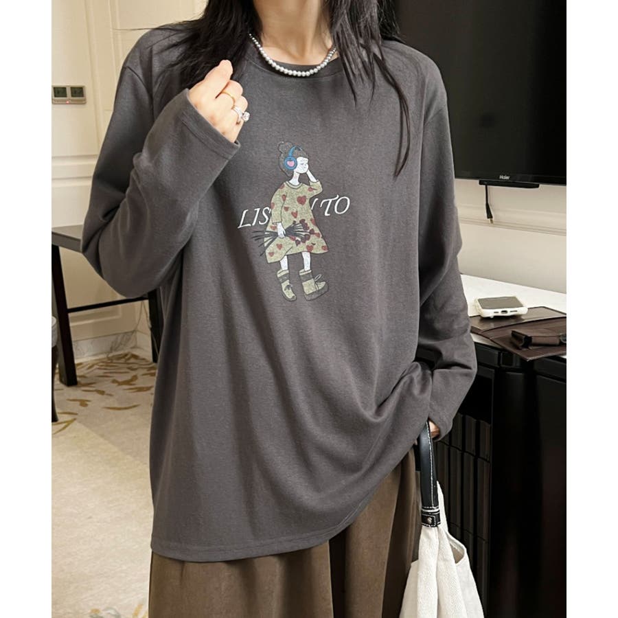 イラストプリントロングスリーブTシャツ