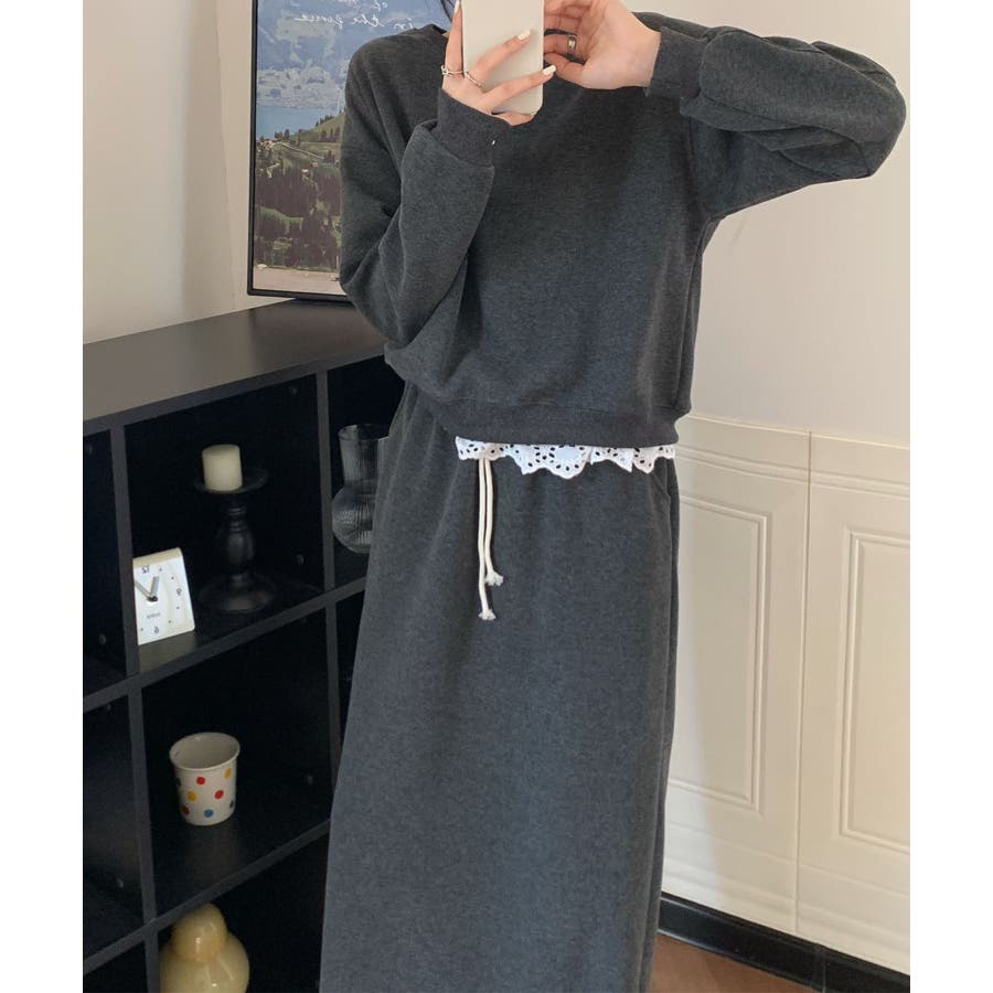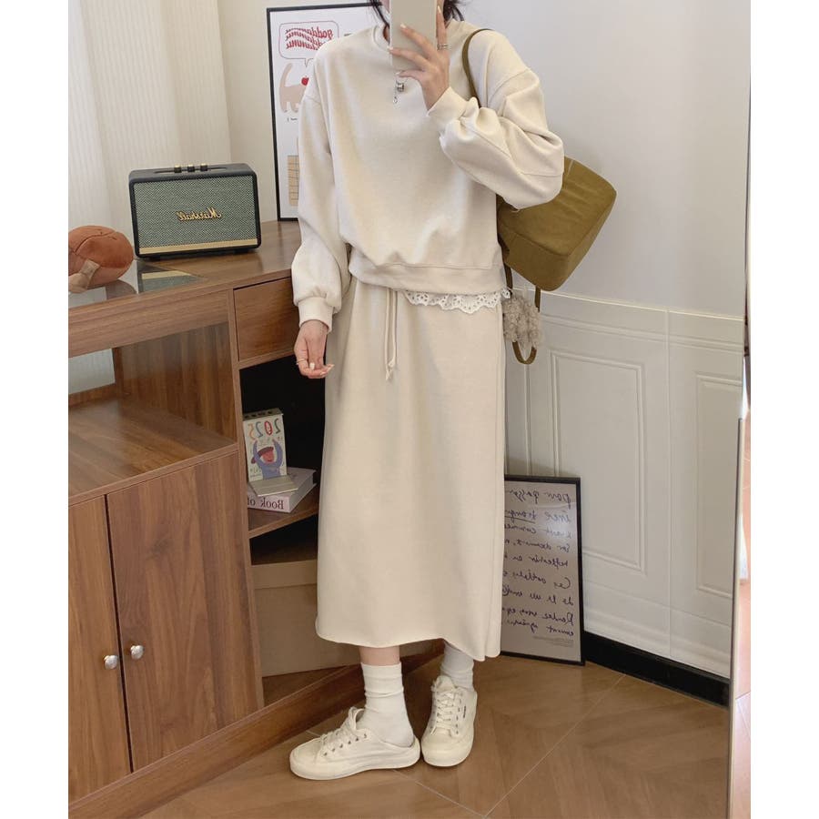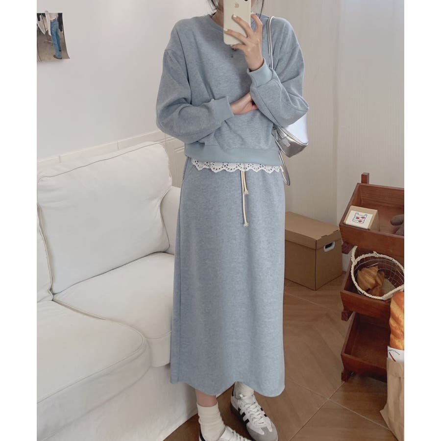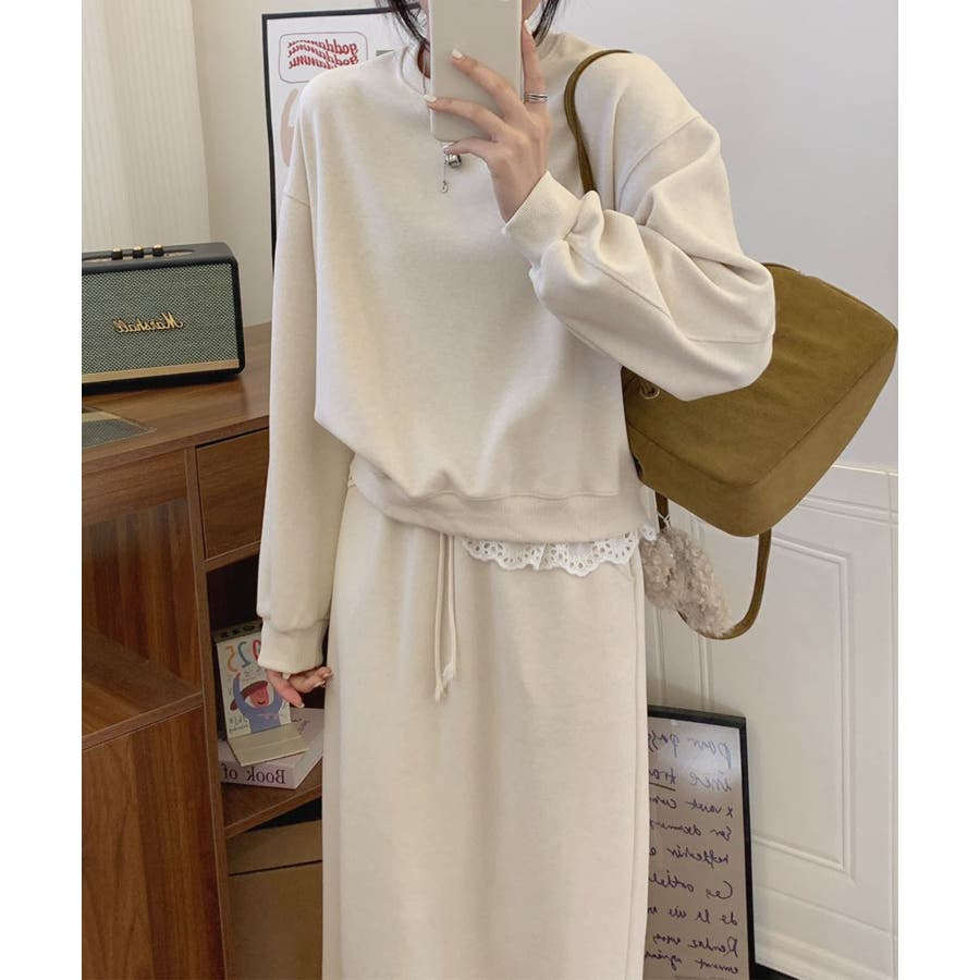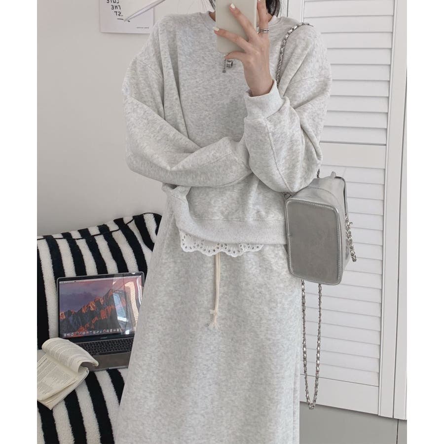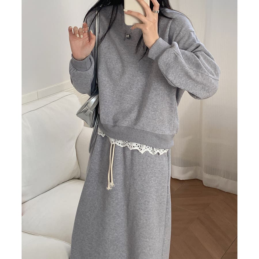 レースデザインセットアップ スウェット+ロングスカート