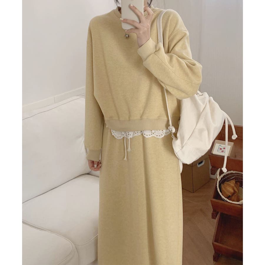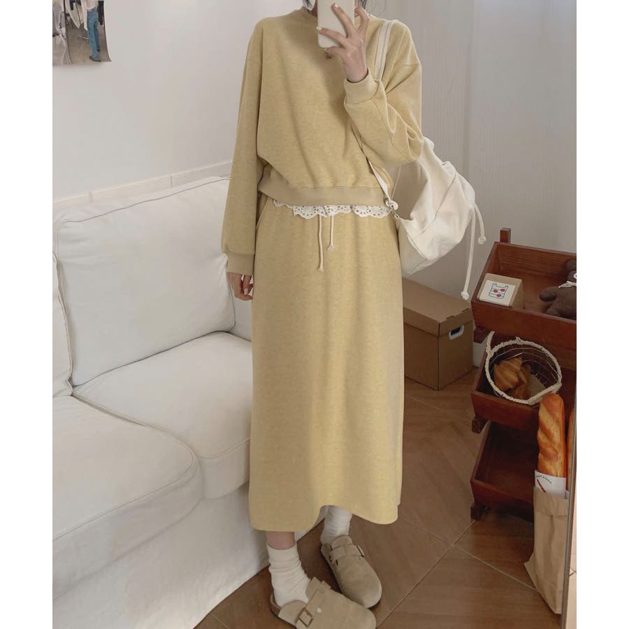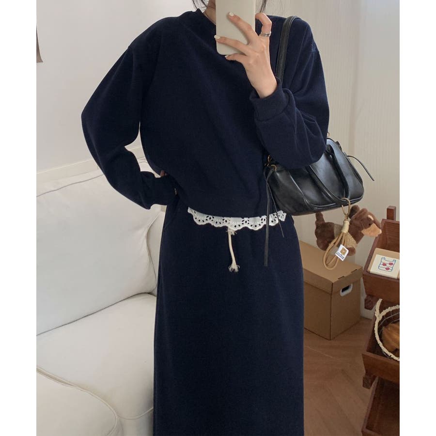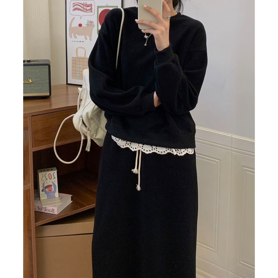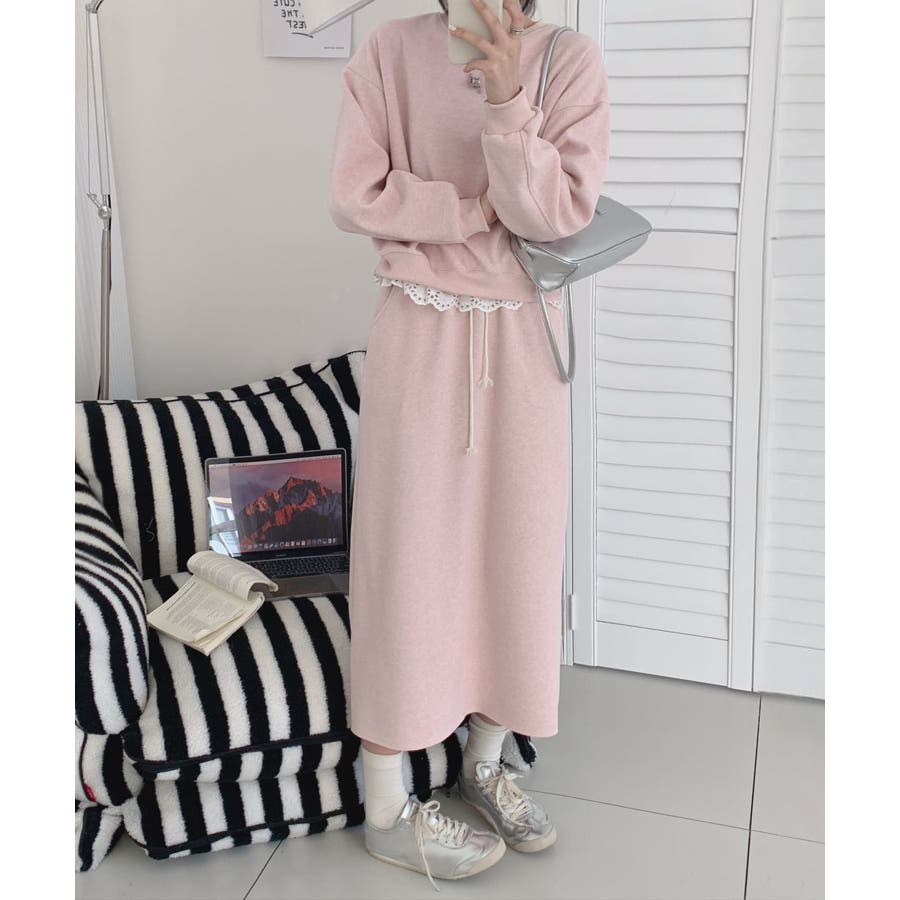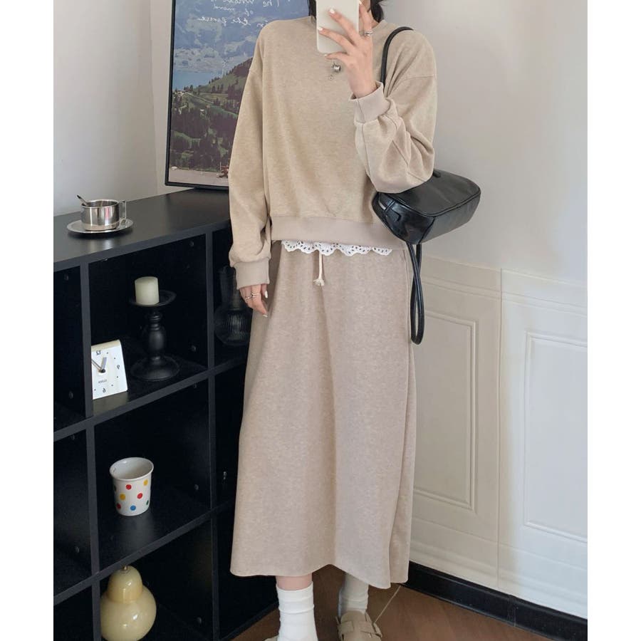 レースデザインセットアップ スウェット+ロングスカート