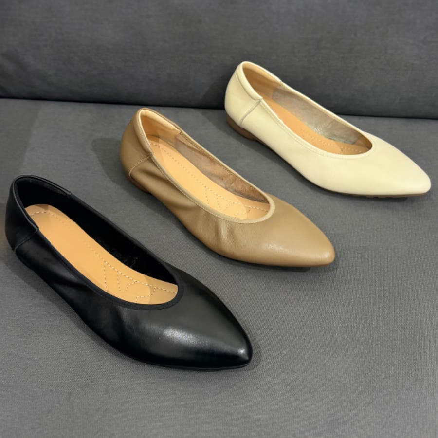 【Decade classic】シンプルポインテッドトゥレザーフラットシューズ