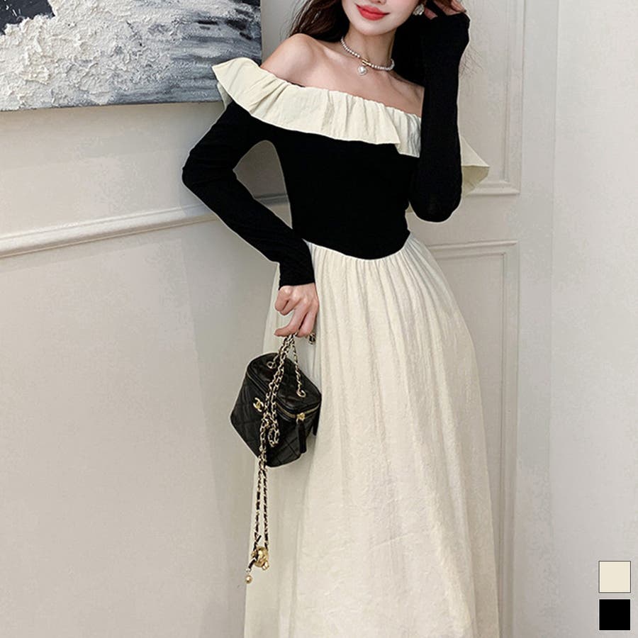 【ホワイト】Jasmine ワンピース フリルロングワンピース