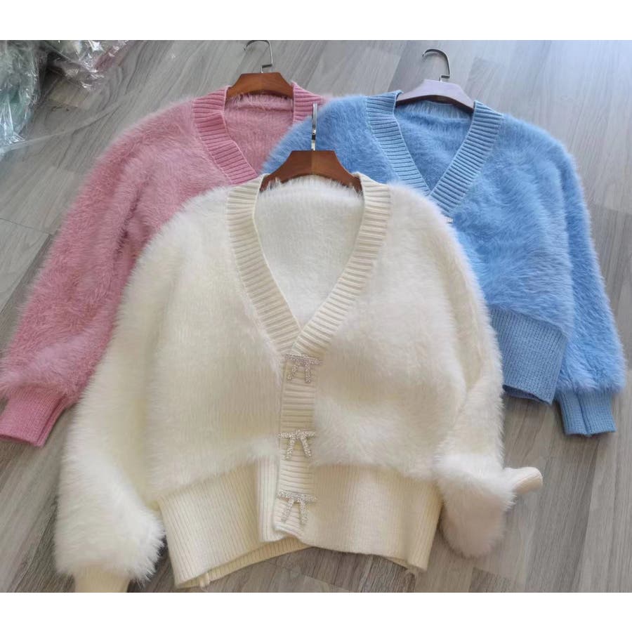 もこもこリボンボタンカーディガン Jasmine Grandiflorum
