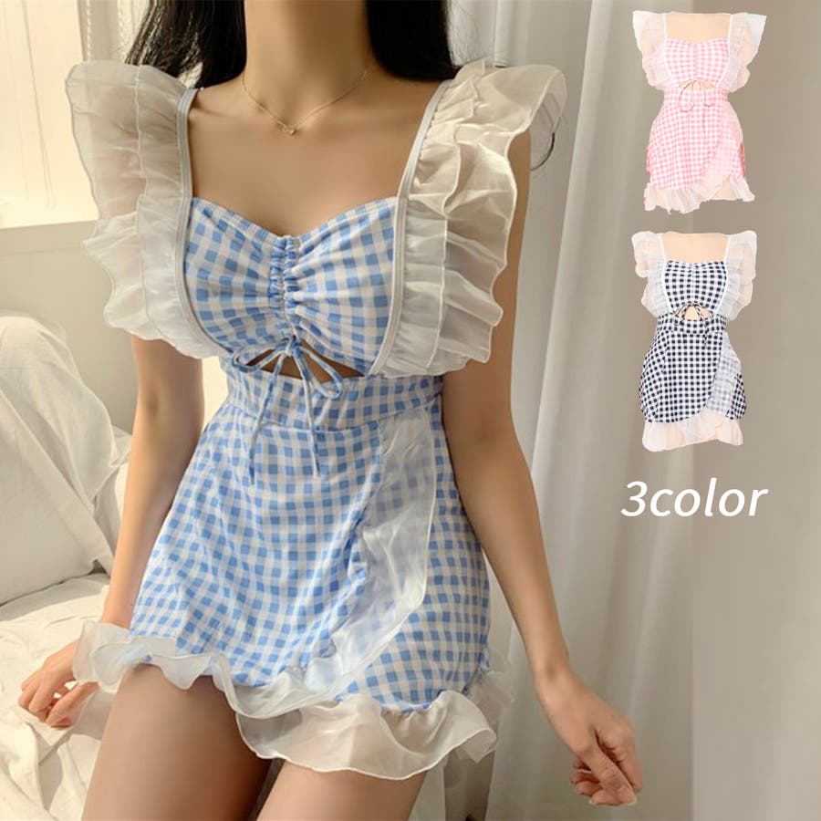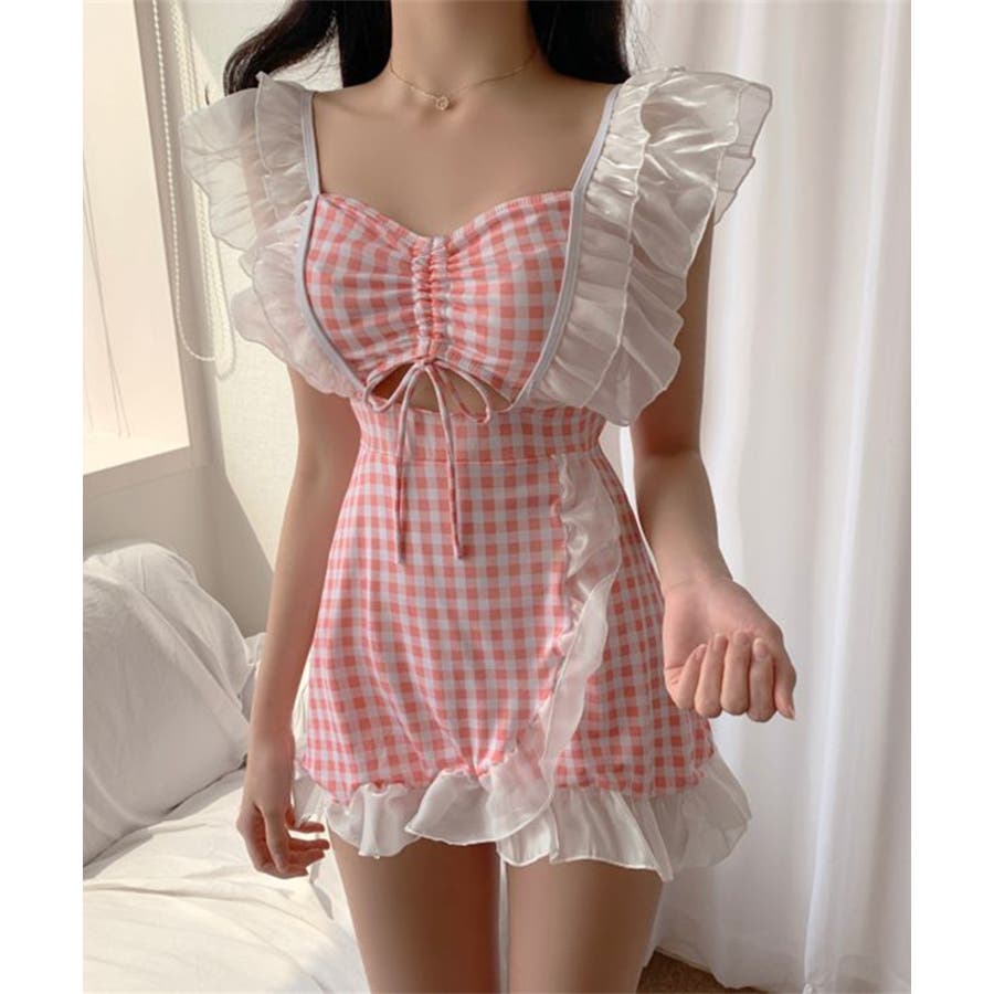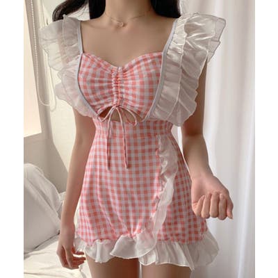 Jasmine Grandiflorumフリルギンガムチェックスイムウェア 水着