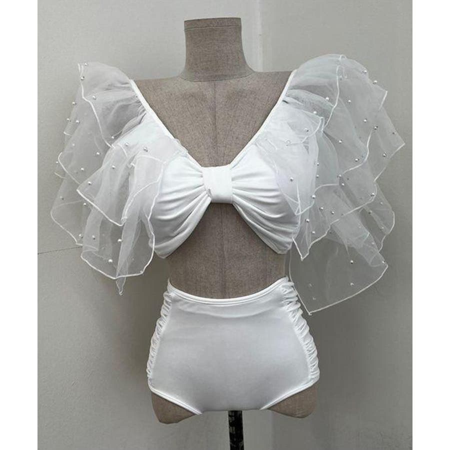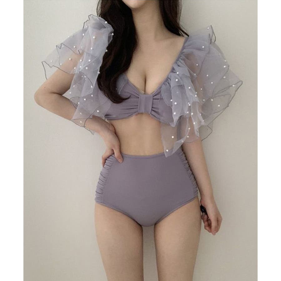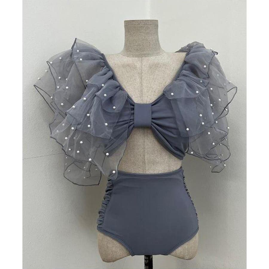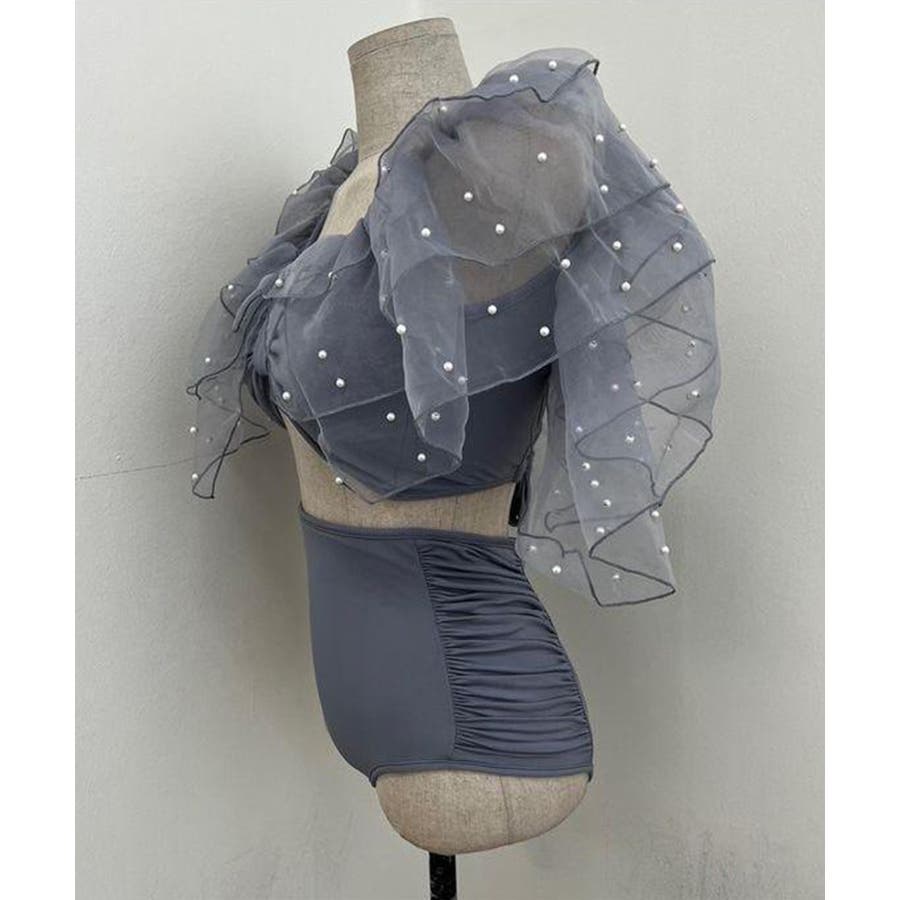 ビーズフリルスリーブスイムウェア 水着 セクシー