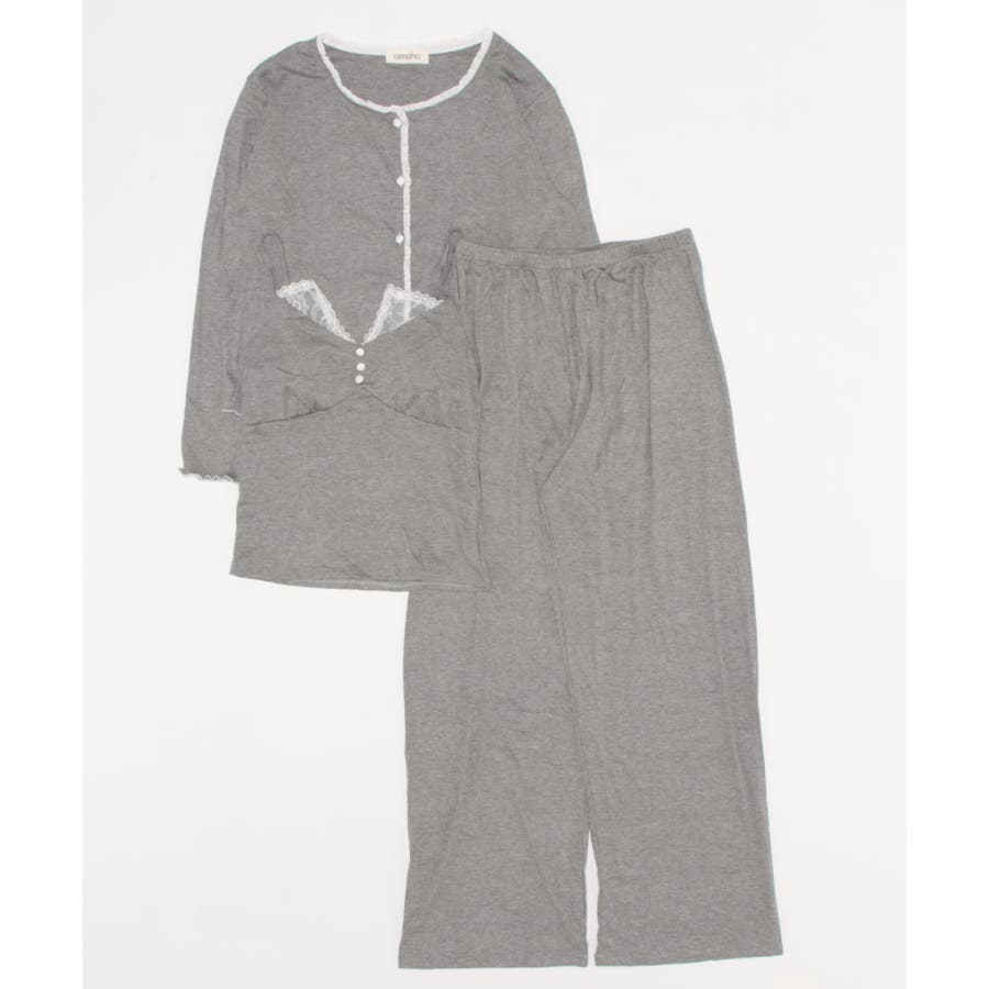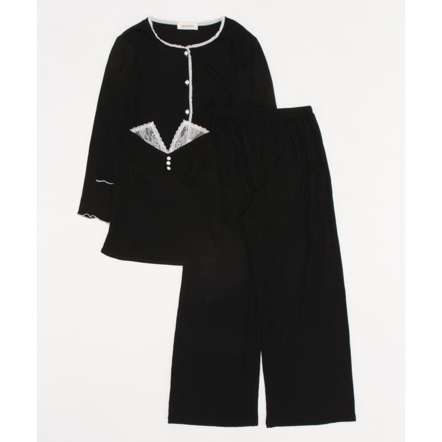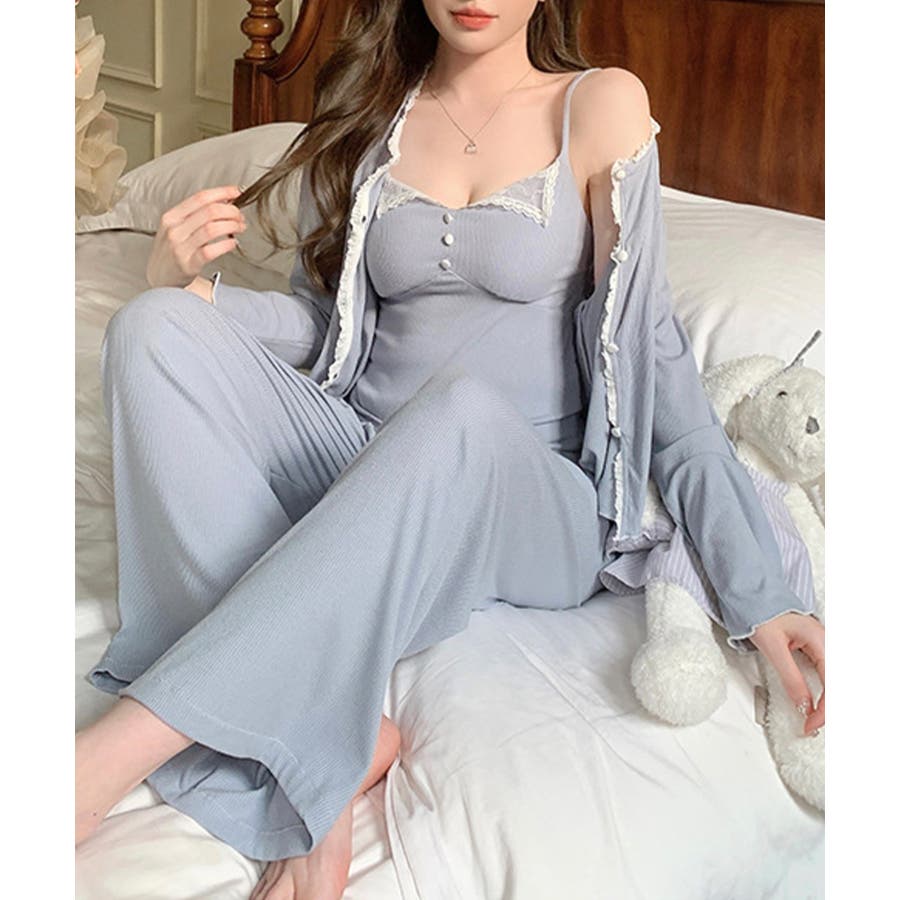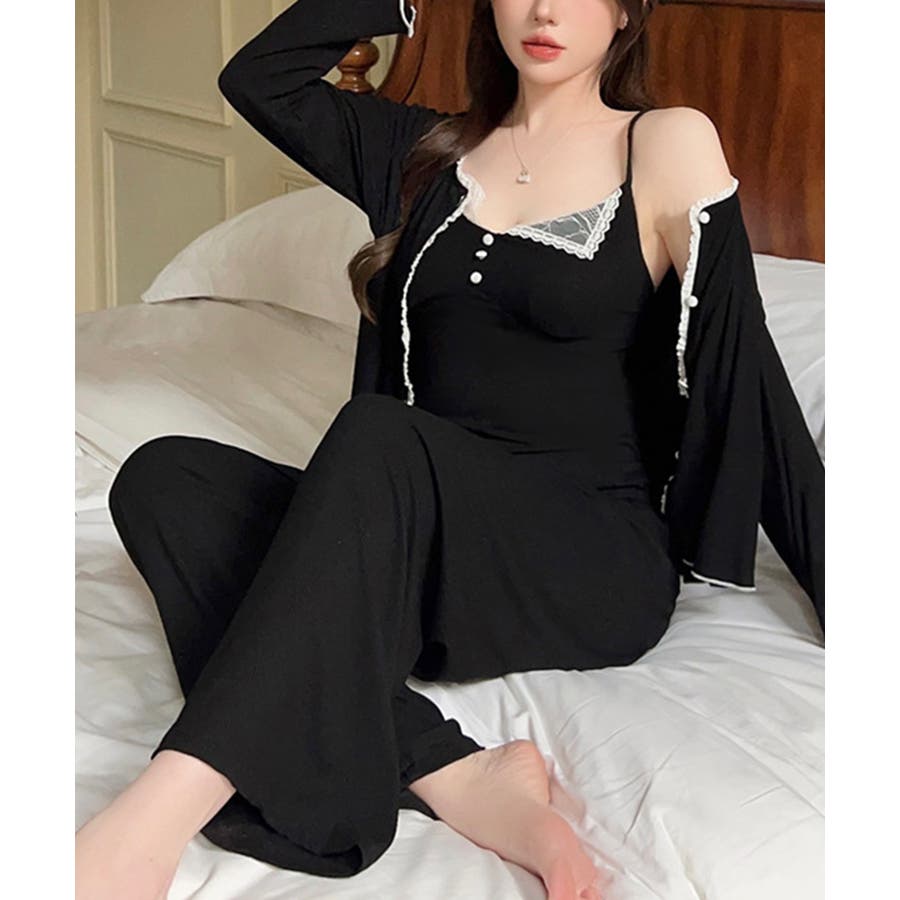 3点セット レースルームウェア ブラ付きキャミソール&ロングパンツ&長袖シャツ