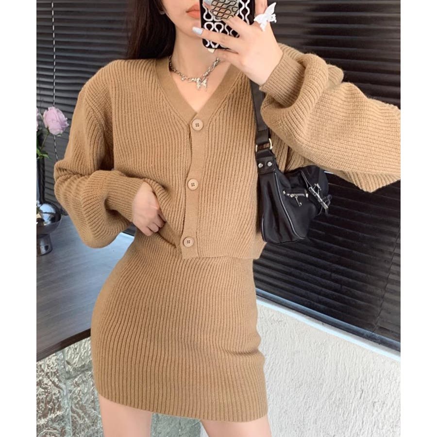 Vネック ニット セットアップ