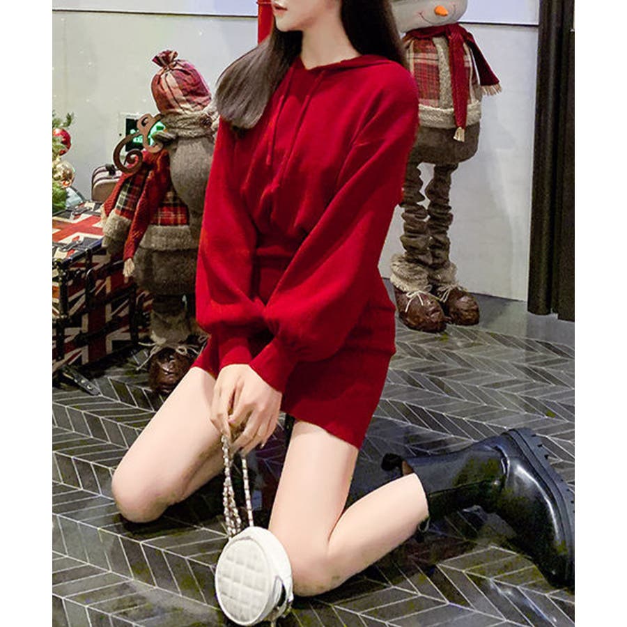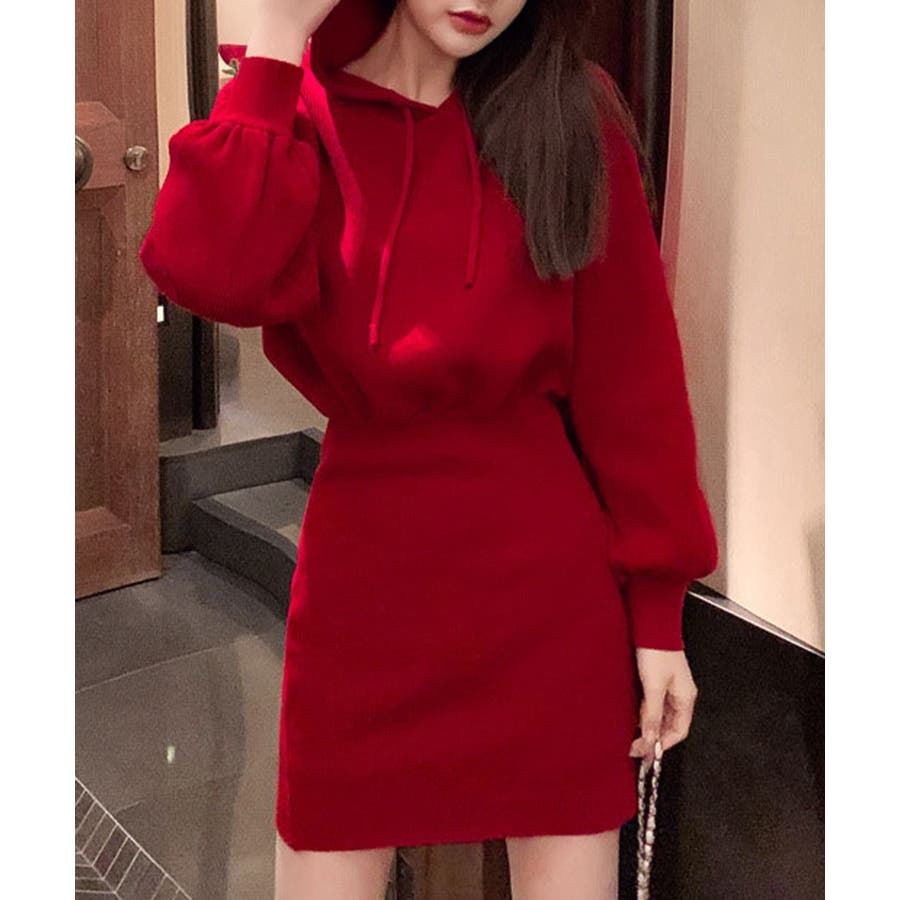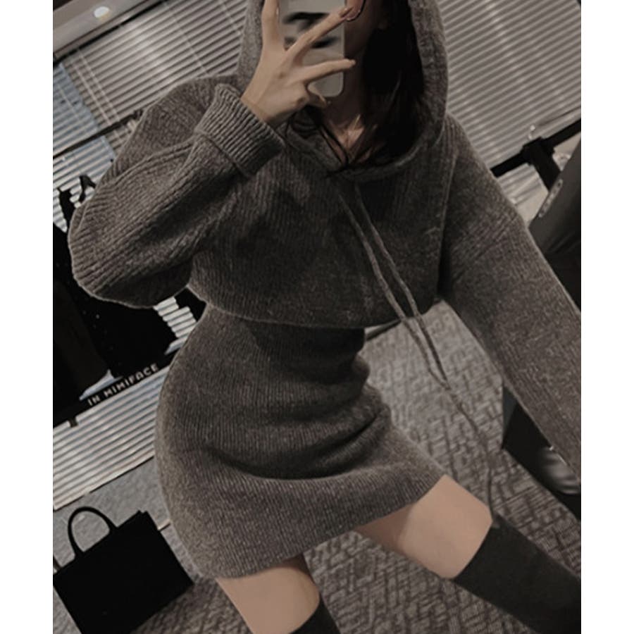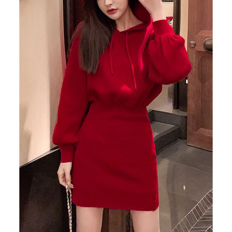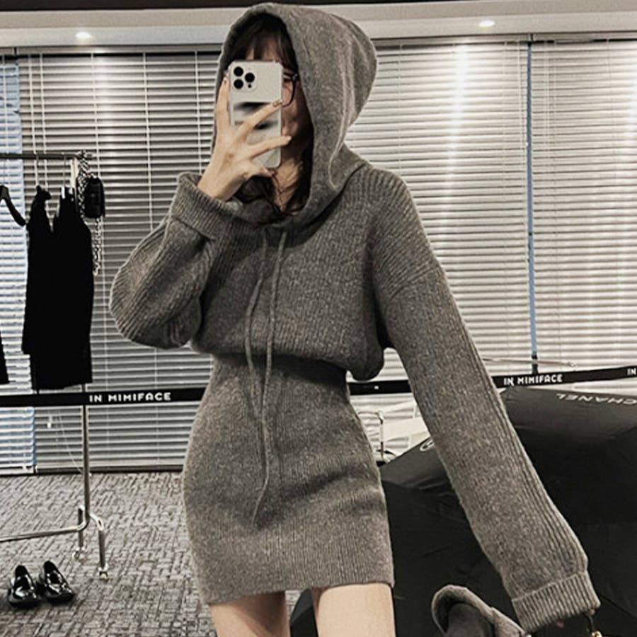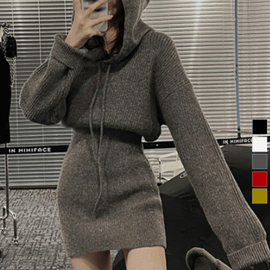 フード付きニットワンピース ミニワンピース 韓国ファッション