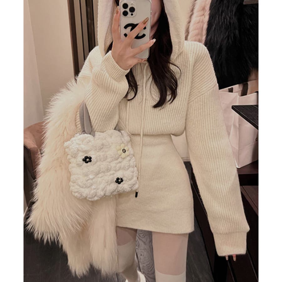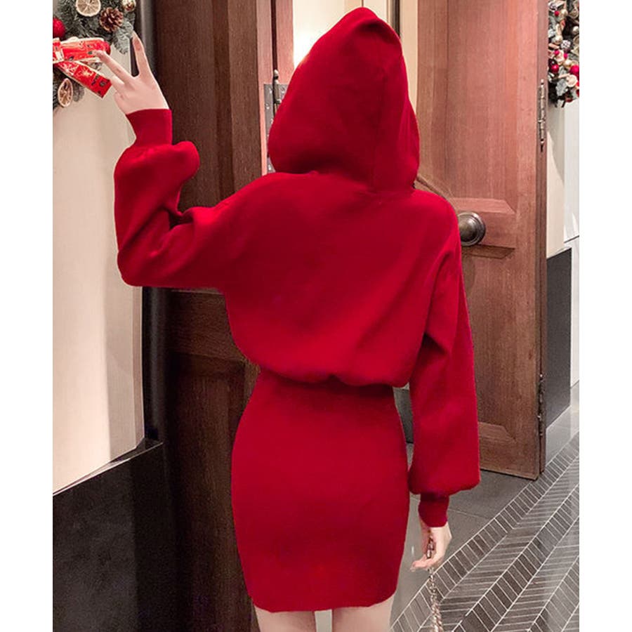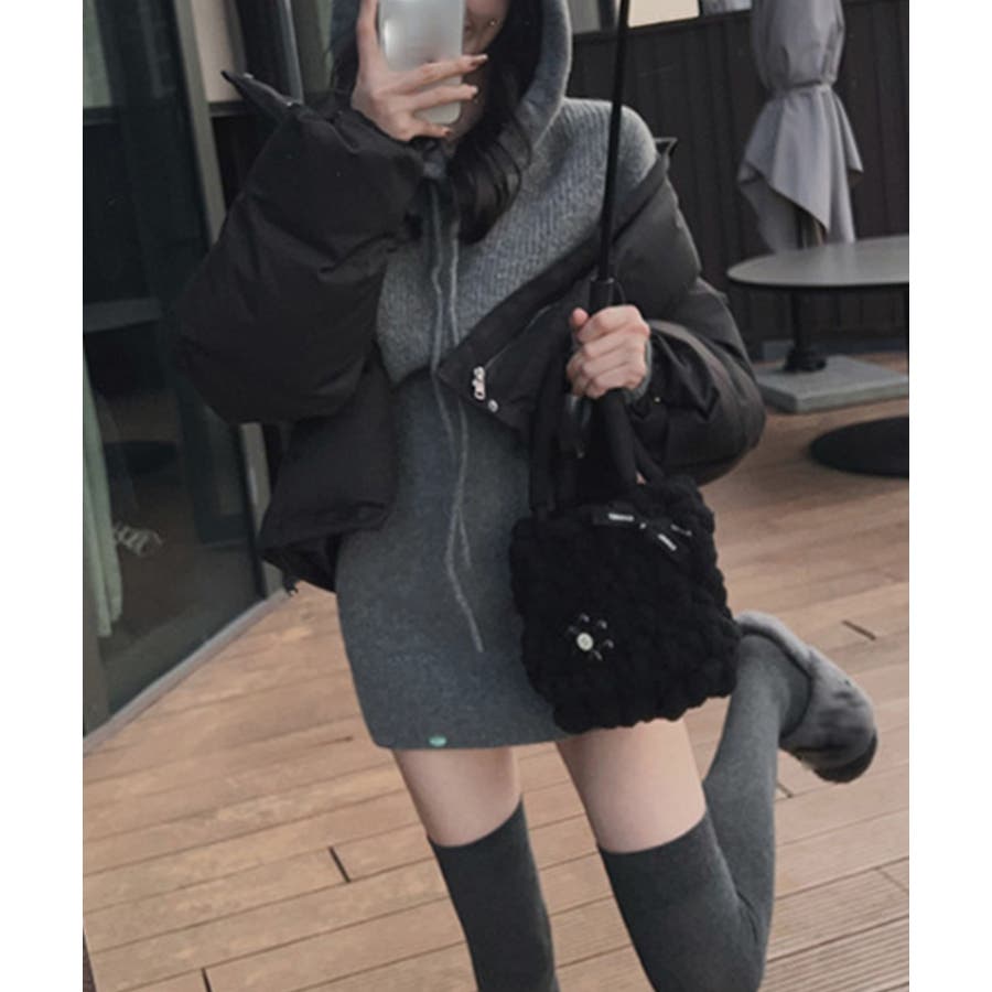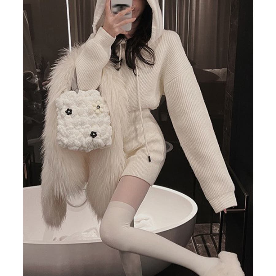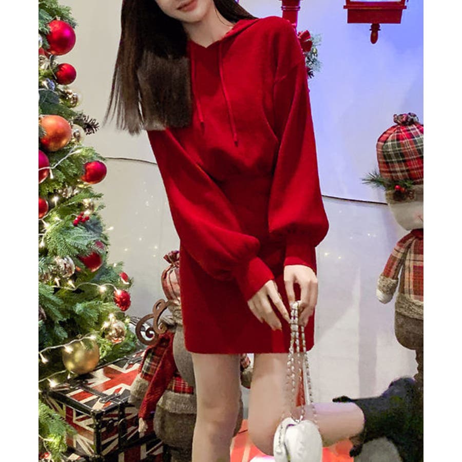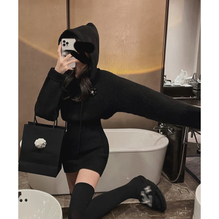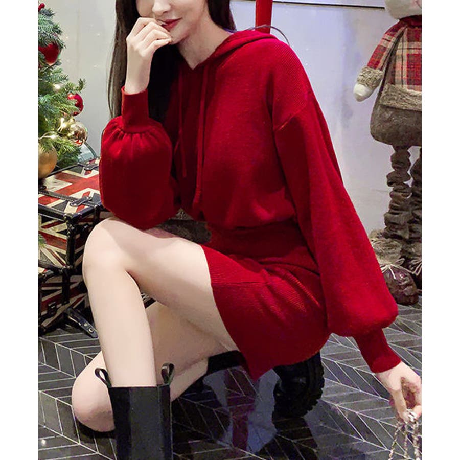 フード付きニットワンピース ミニワンピース 韓国ファッション