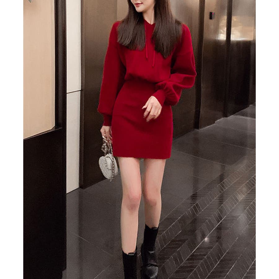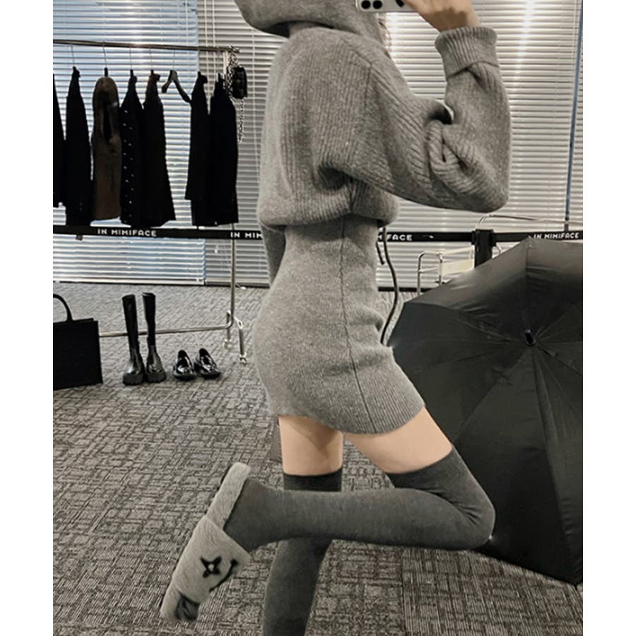 韓国ファッション ニット ハイウエスト セクシー スカート ショート丈ジャケット 長袖 秋服 冬服 春夏秋冬 ブーツ ロングワンピース 結婚式 二次会