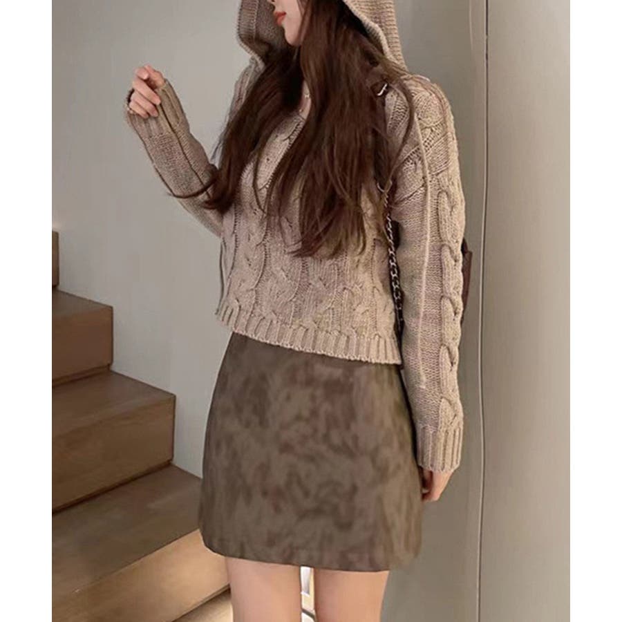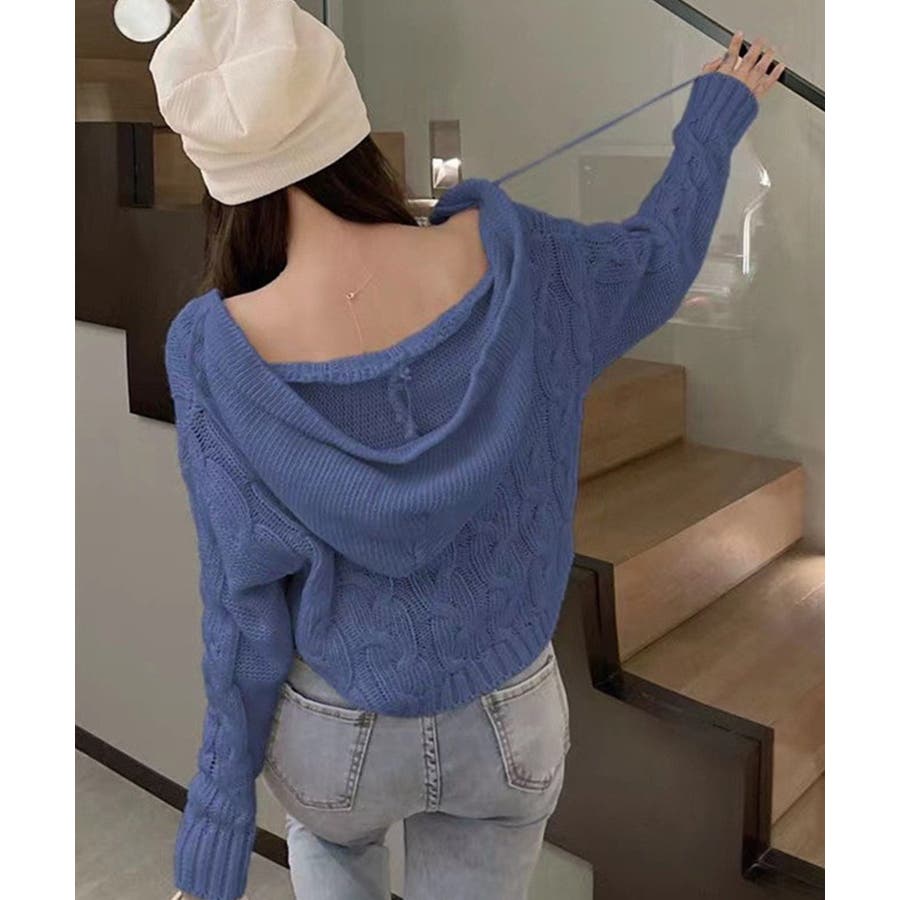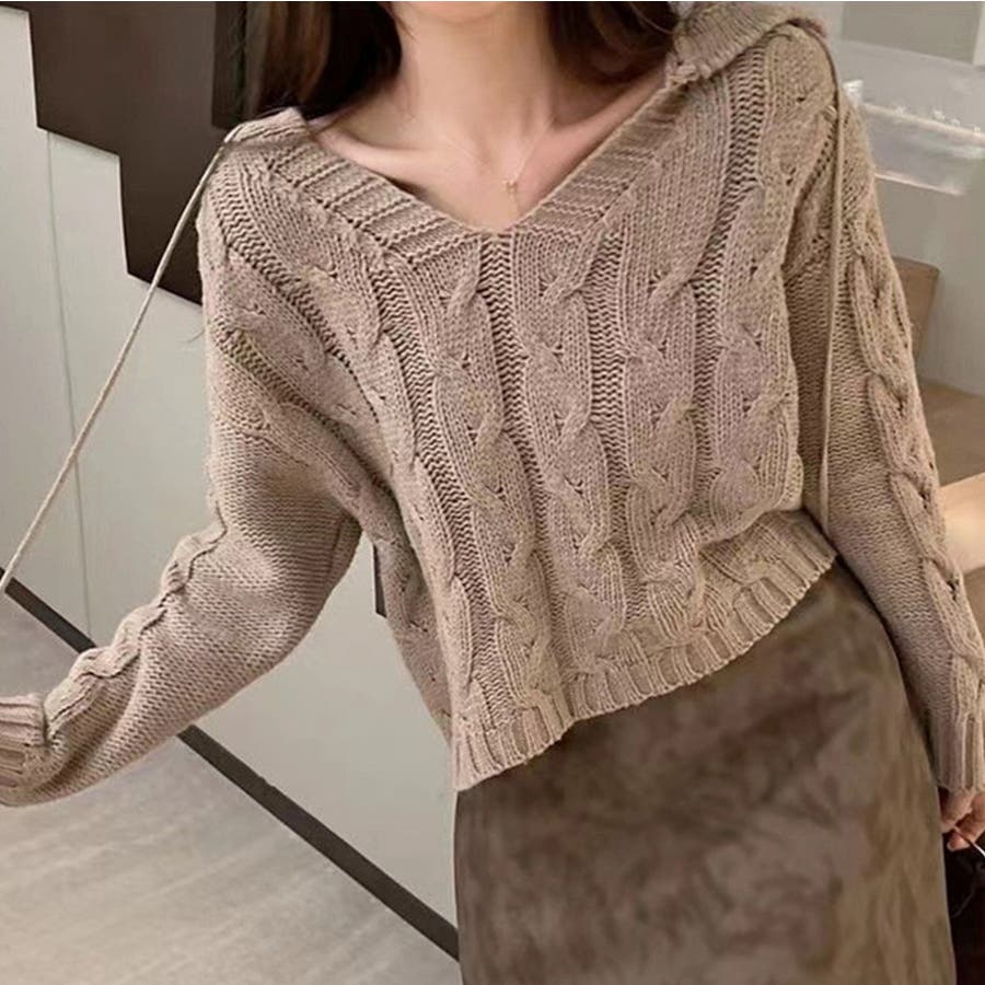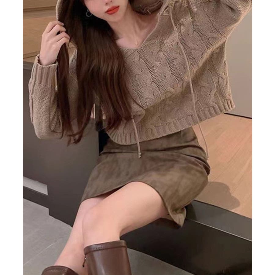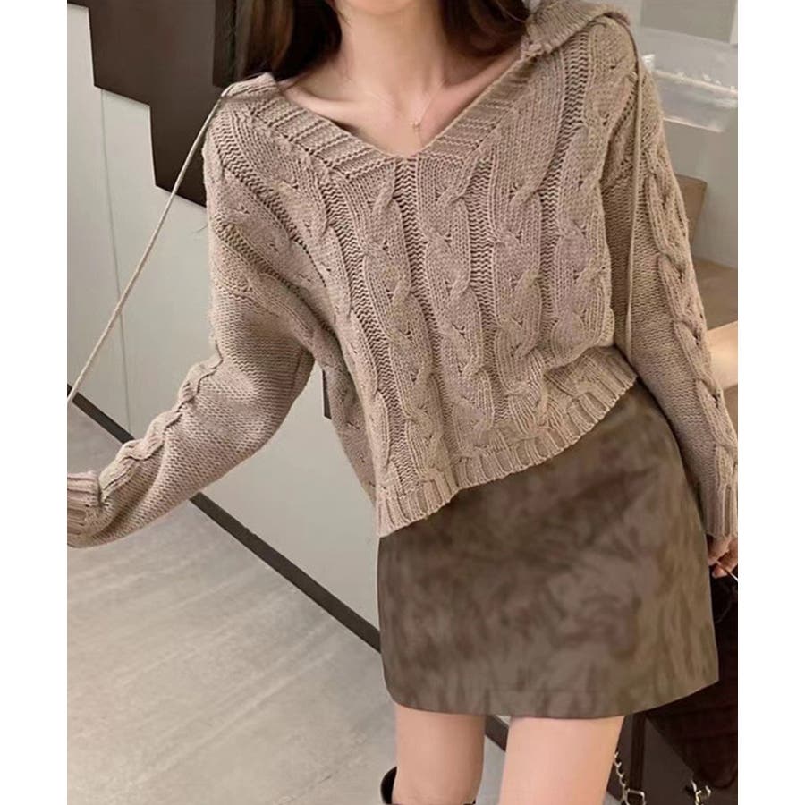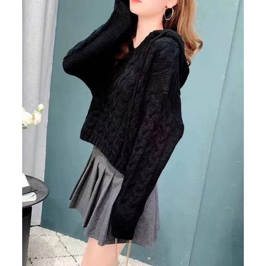 ニットパーカー フード付きニットトップス 韓国ファッション