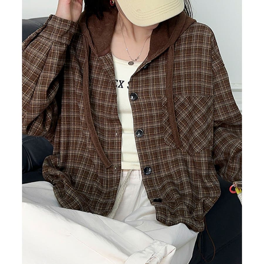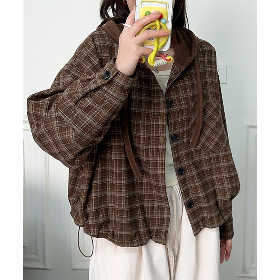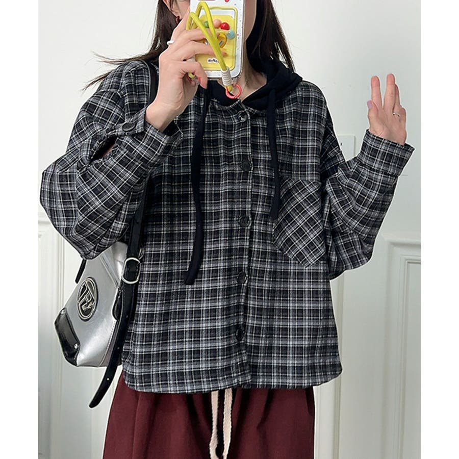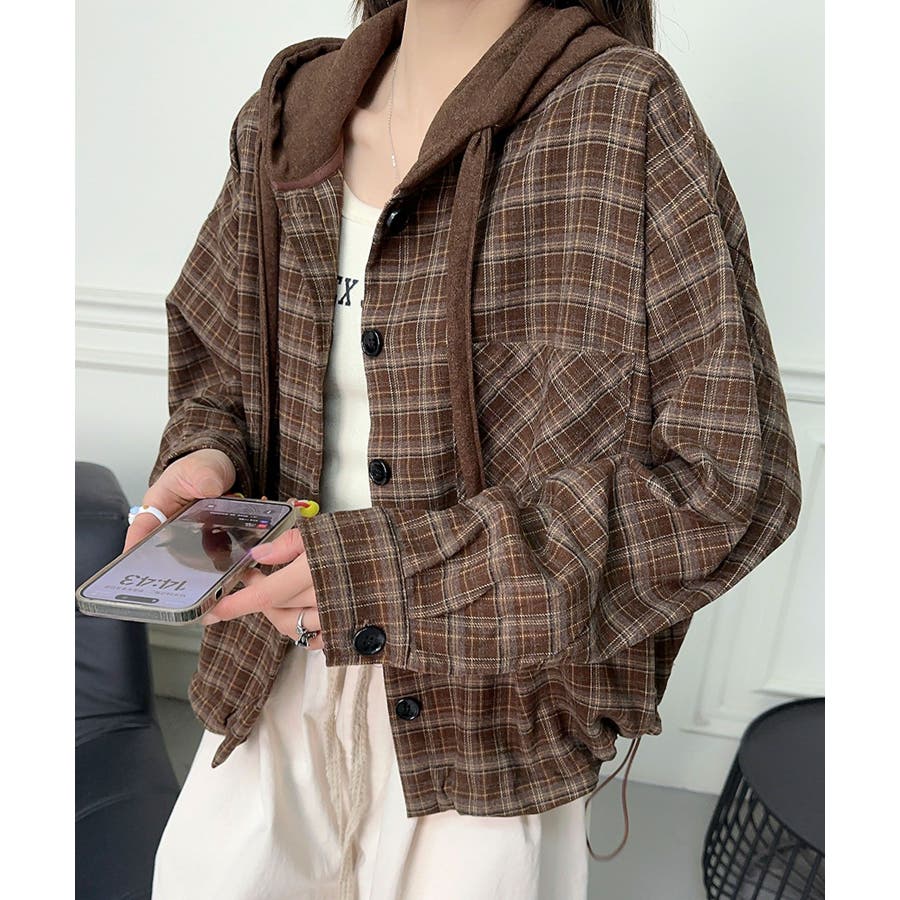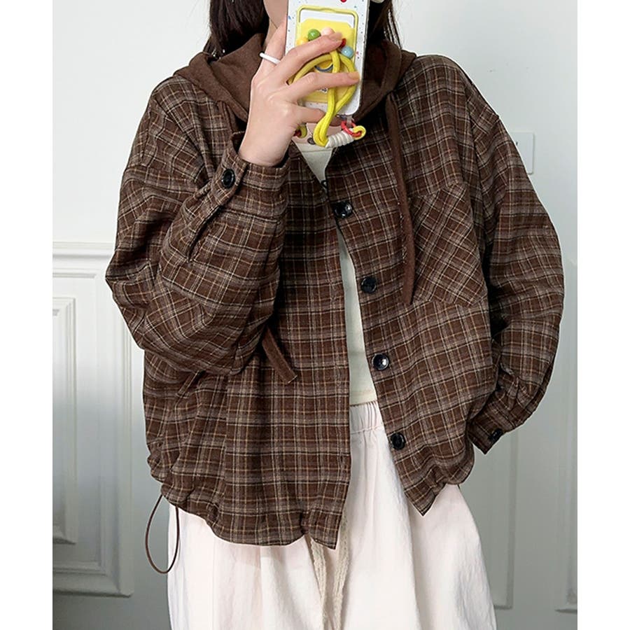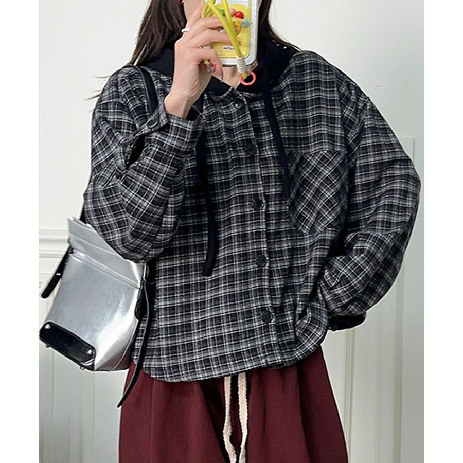 フード付きチェック柄シャツフ♪フロントのジッパーと調整可能なドローストリング付きです! シンプルなTシャツやトレーナーと合わせて、カジュアルでありながらもおしゃれなコーディネートに。・ ジーンズやスウェットパンツと合わせて、さらにリラックス感のあるスタイルに。