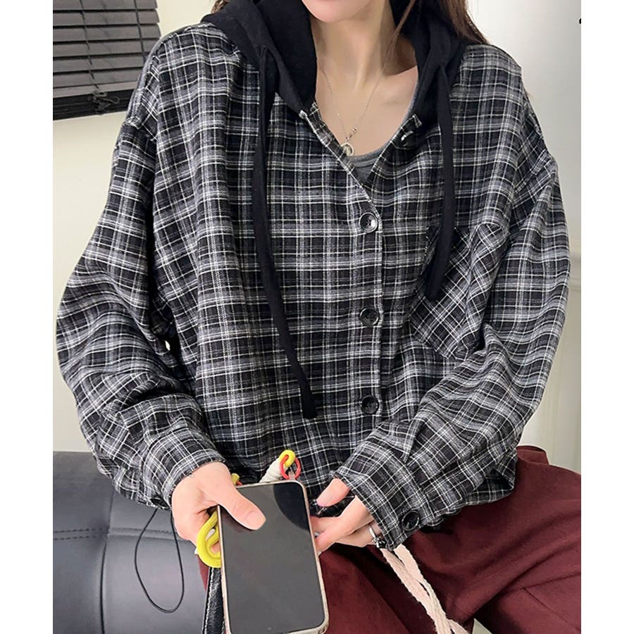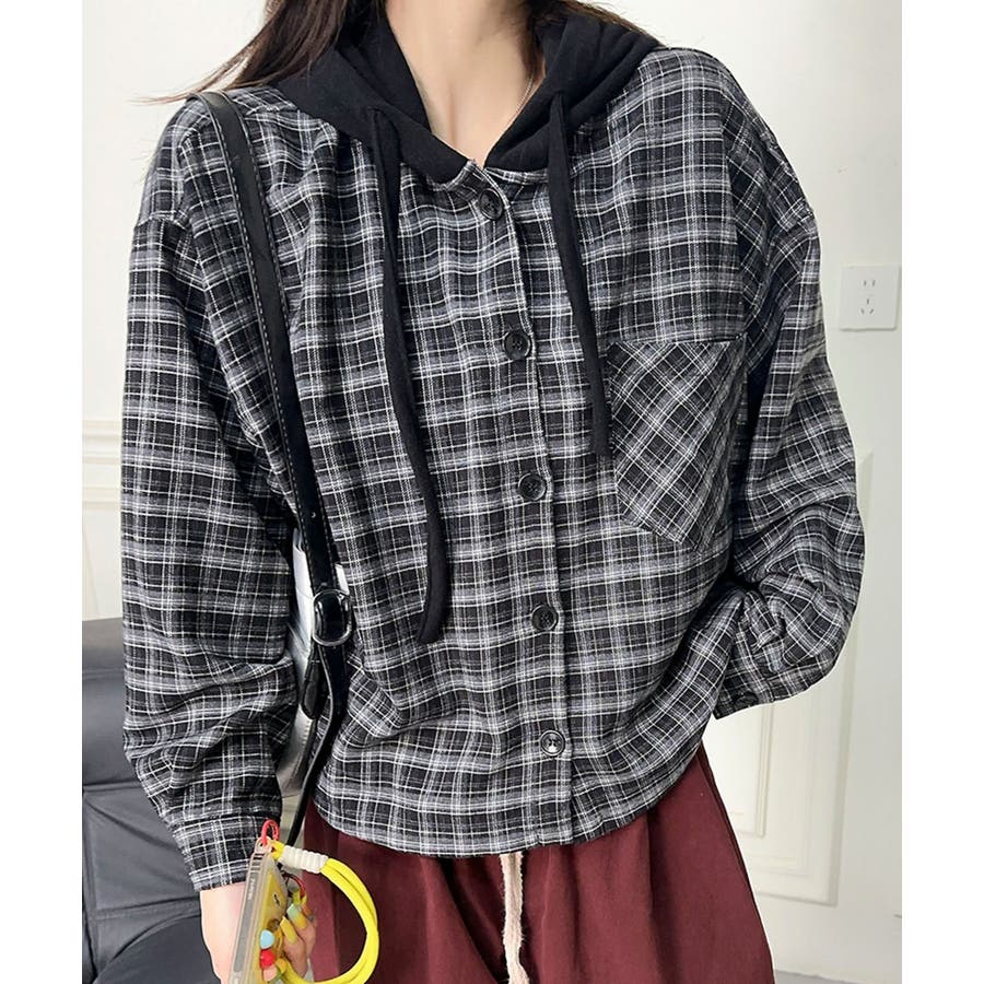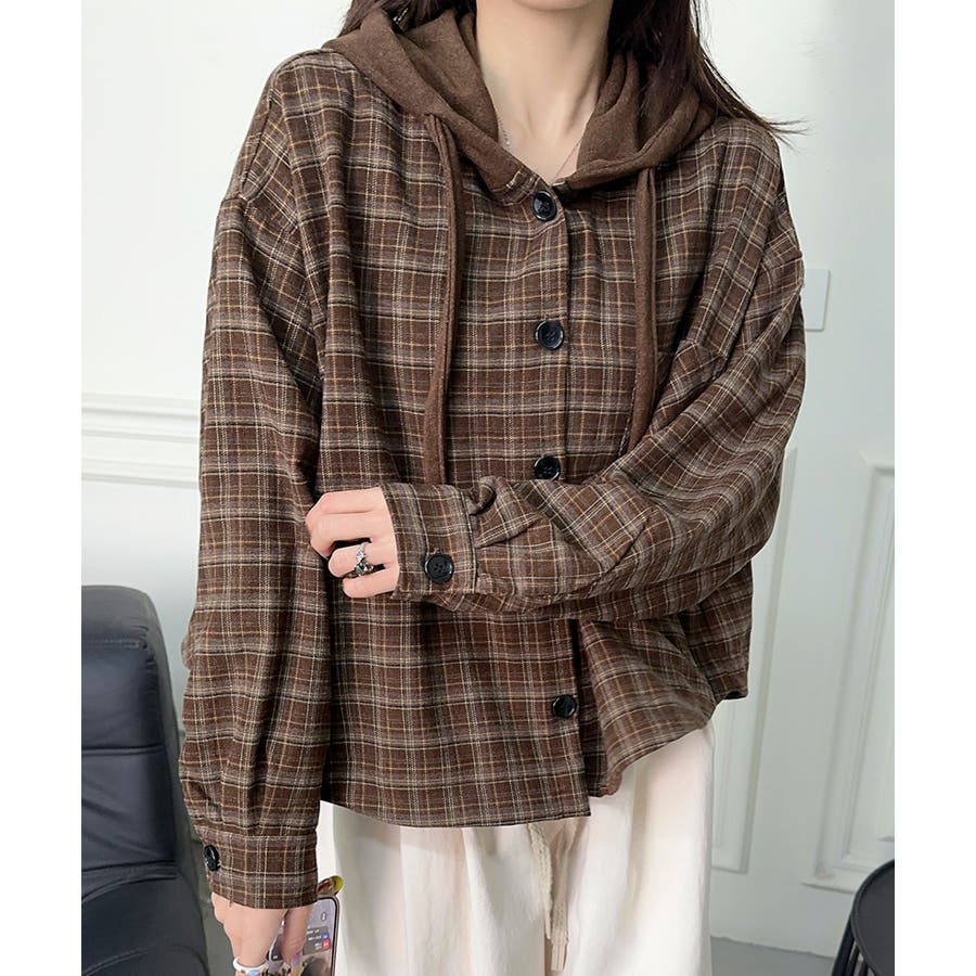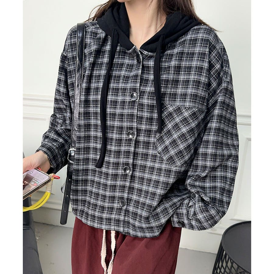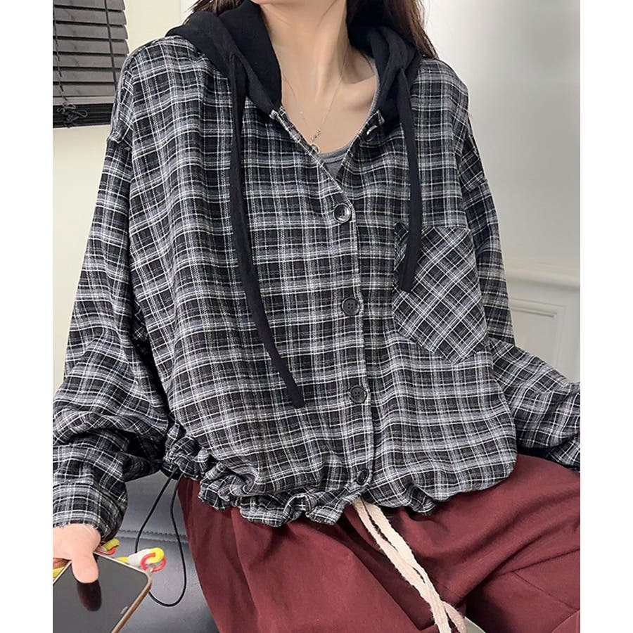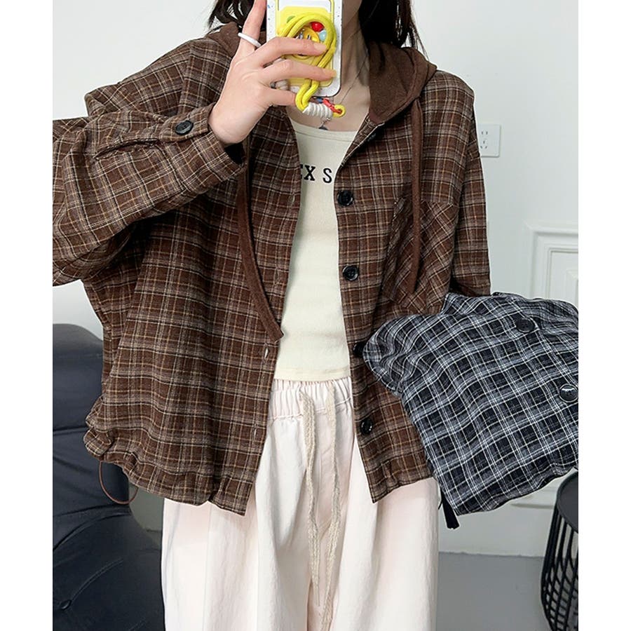 フード付きチェック柄シャツフ♪フロントのジッパーと調整可能なドローストリング付きです! シンプルなTシャツやトレーナーと合わせて、カジュアルでありながらもおしゃれなコーディネートに。・ ジーンズやスウェットパンツと合わせて、さらにリラックス感のあるスタイルに。