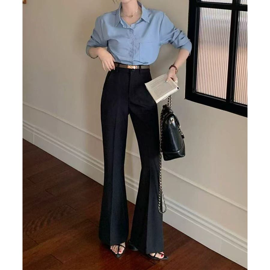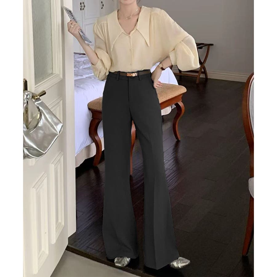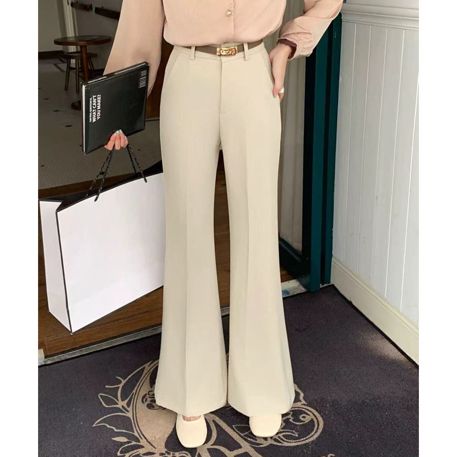 腰まわりはすっきりと、裾にかけて自然に広がるシルエットで、スタイルアップ効果が期待できる一本です。