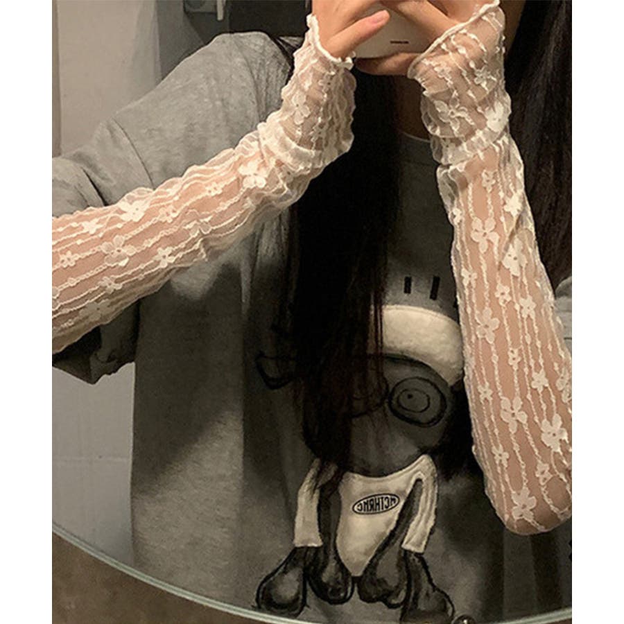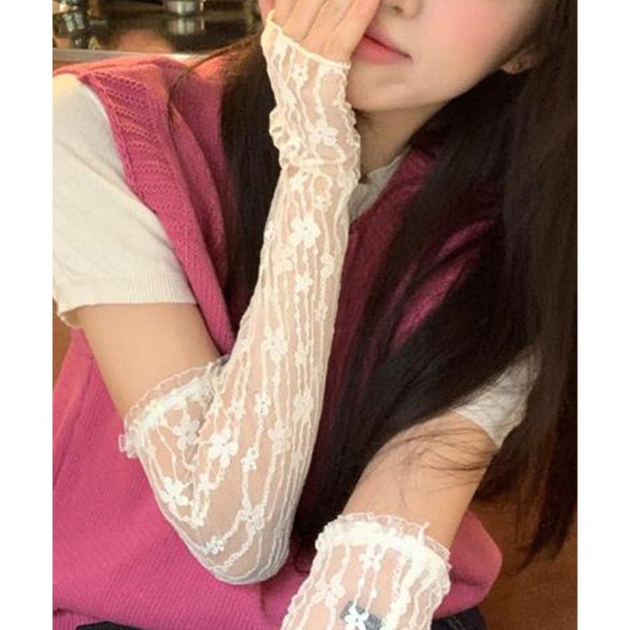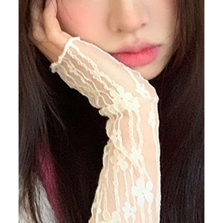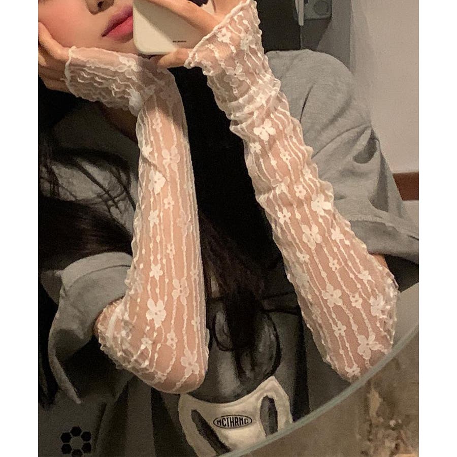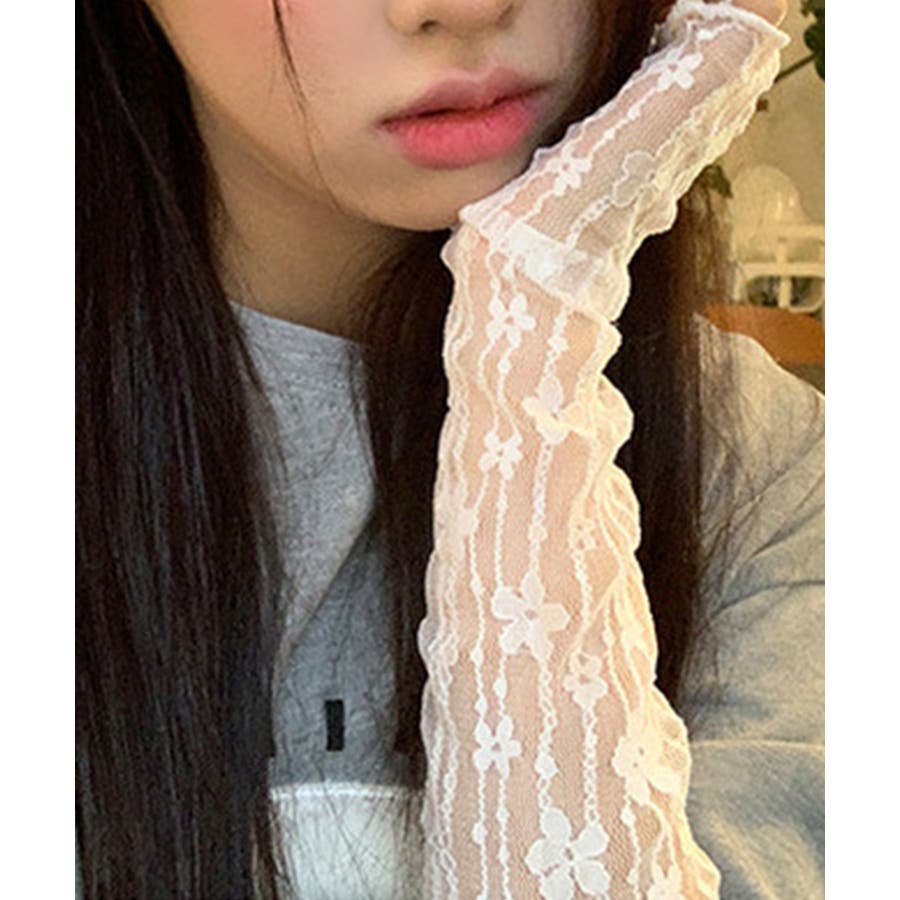 紫外線対策にぴったりのレースのスリーブです。レースの透け感が可愛く、Tシャツや半袖シャツなどと合わせるとかわいいです!アーム側にはゴムが付いているので二の腕あたりで止まります。おしゃれなスリーブでコーディネートの幅が広がりそう!