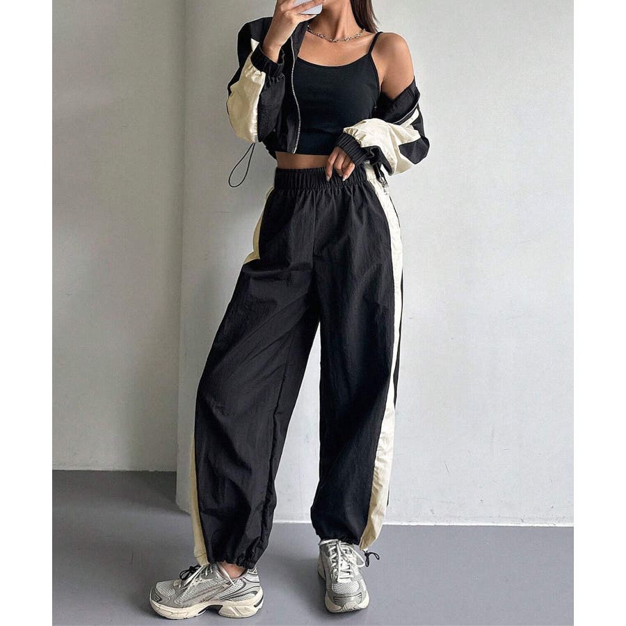 M:身幅58 肩幅53 着丈46.5 そで丈55 ウエスト67 ヒップ103 パンツ丈100 股上30.5 股下70 もも周り65 すそ周り50