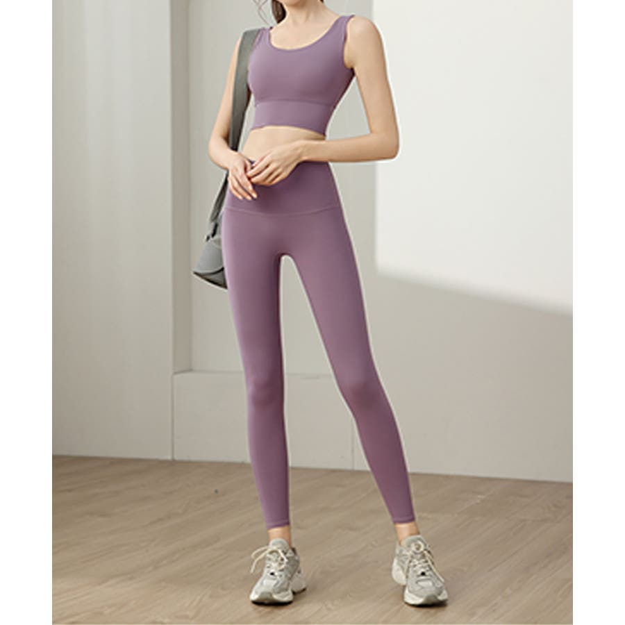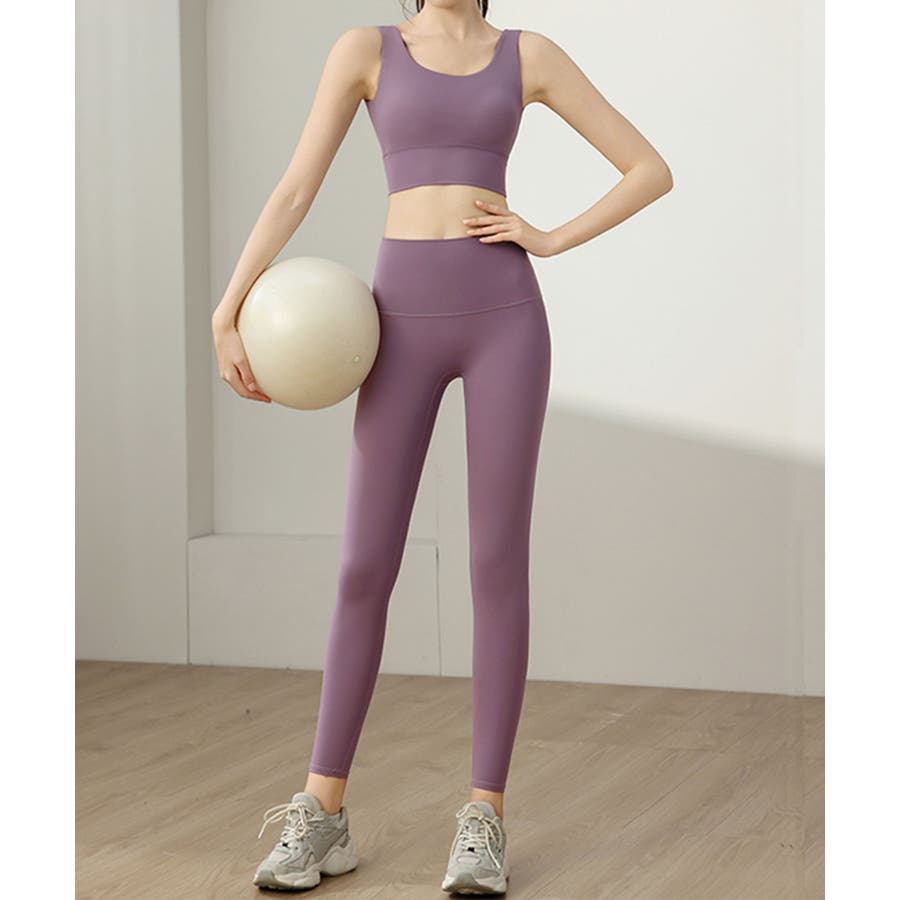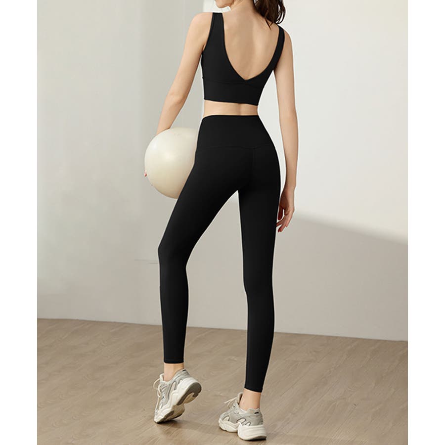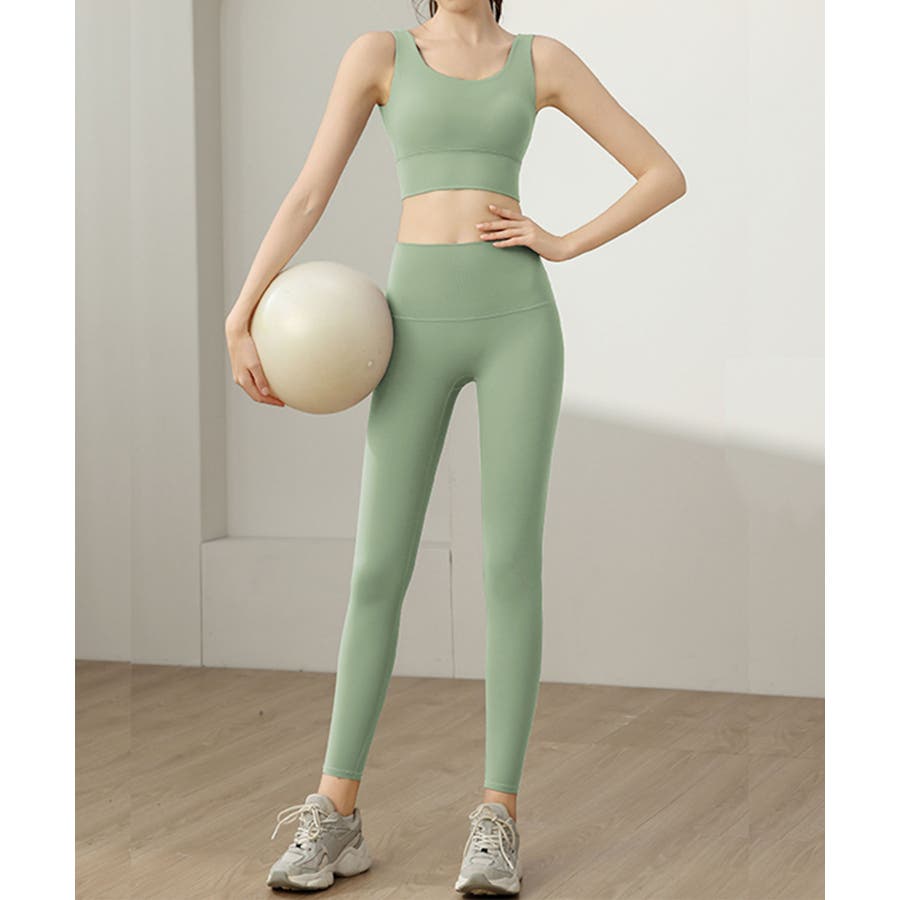 ヨガウェアタンクトップ+ハイウエストレギンス 上下セットアップ