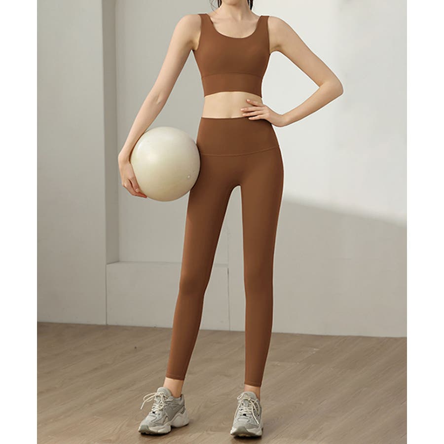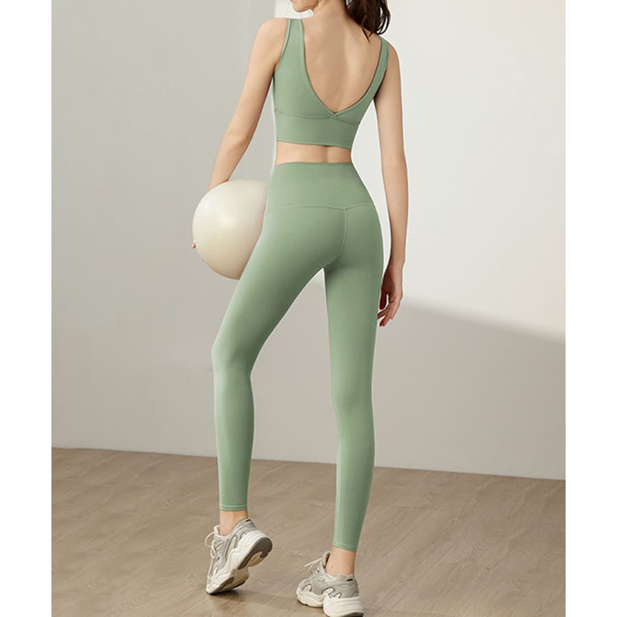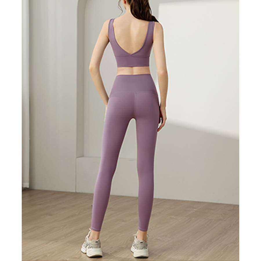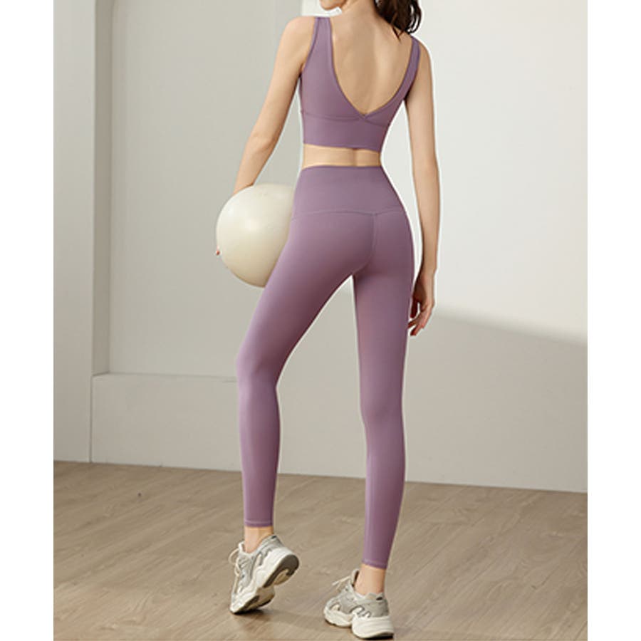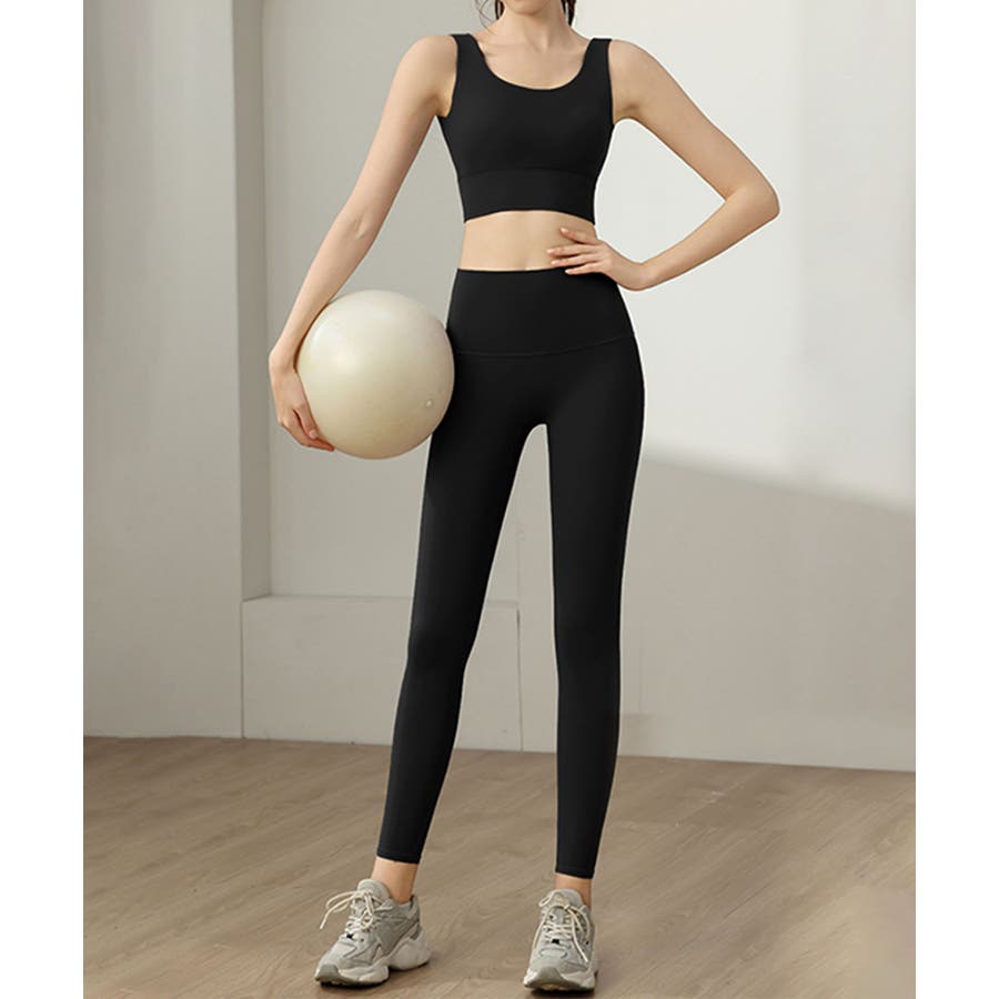 ヨガウェアタンクトップ+ハイウエストレギンス 上下セットアップ