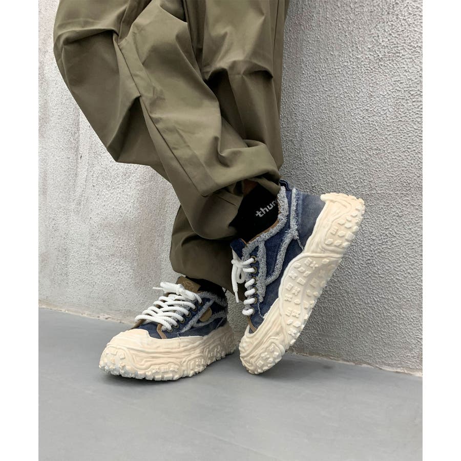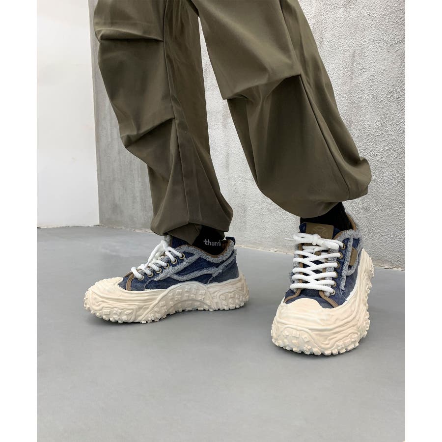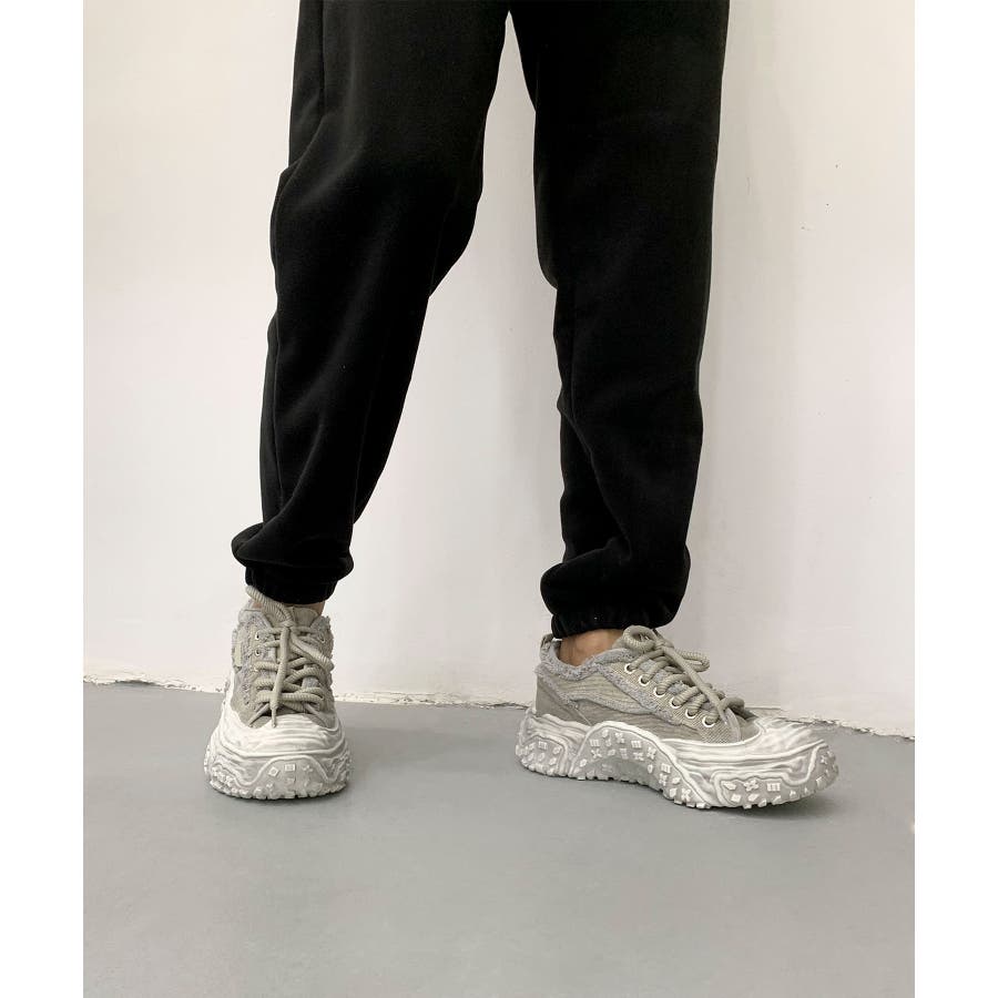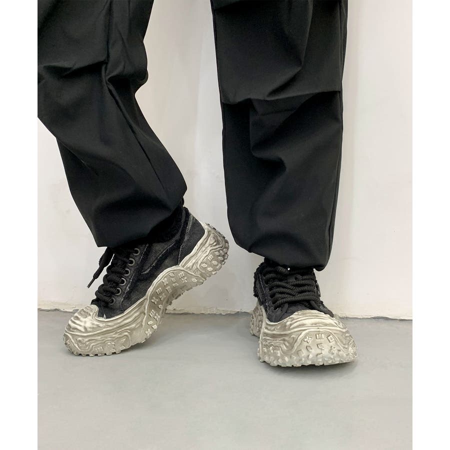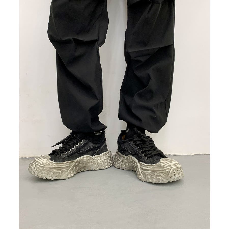 大胆なダメージ加工とボリュームのあるソールで、コーディネートの主役になる一足です。