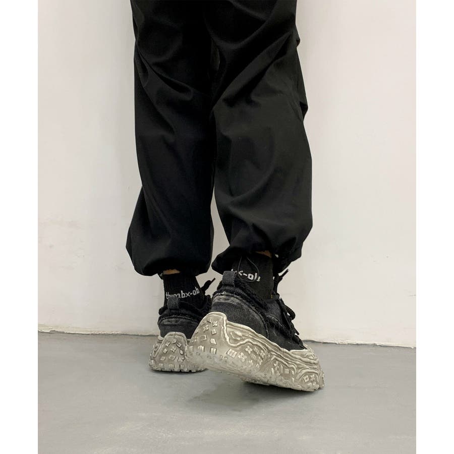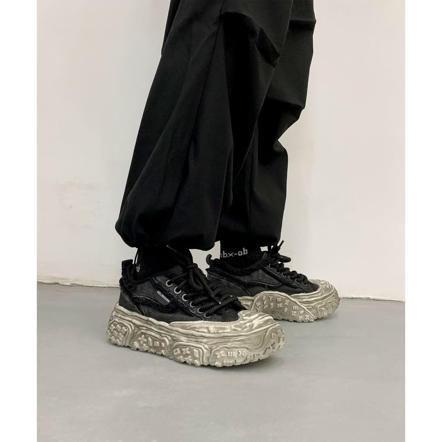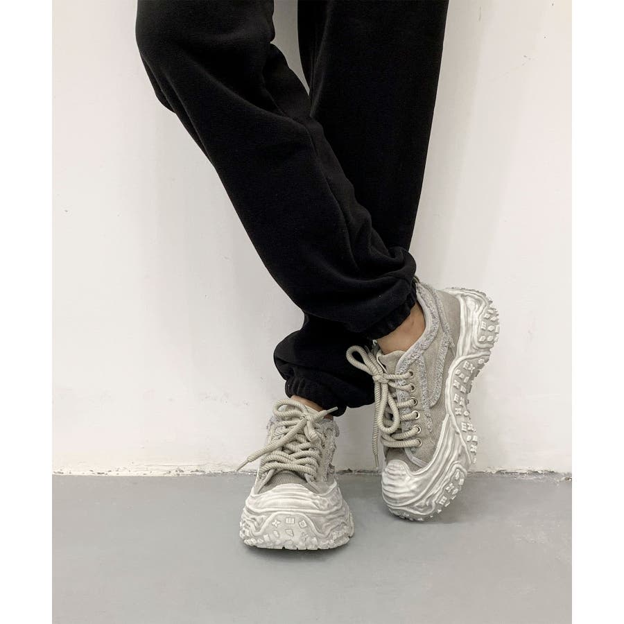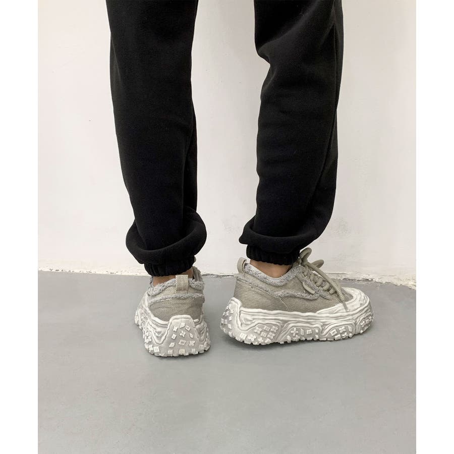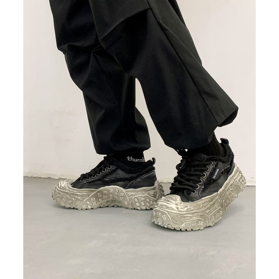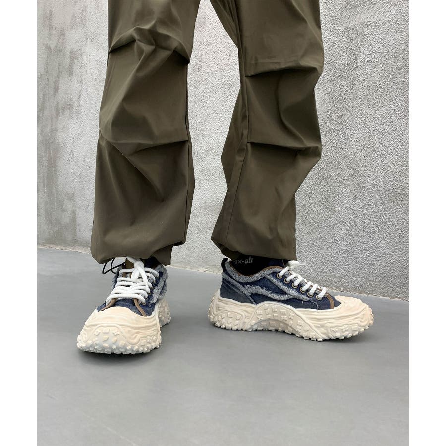 大胆なダメージ加工とボリュームのあるソールで、コーディネートの主役になる一足です。