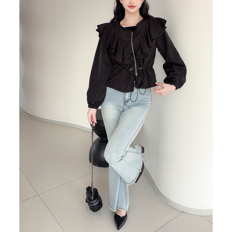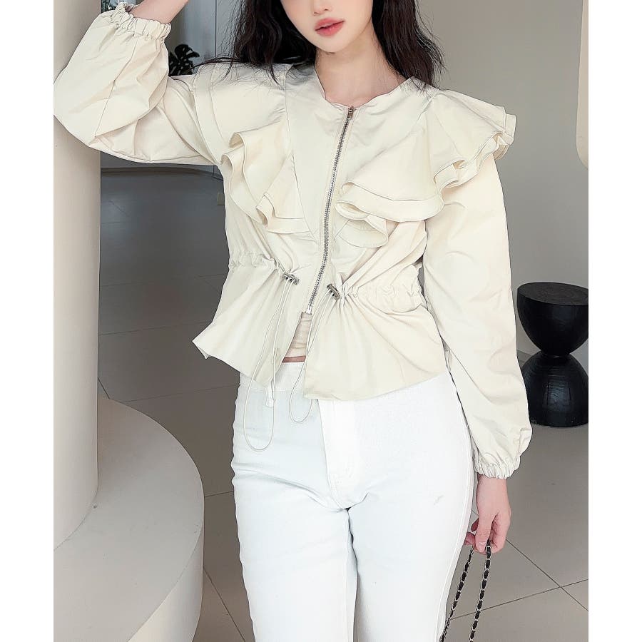 【Jasmine】ダブルラッフルショートブルゾン